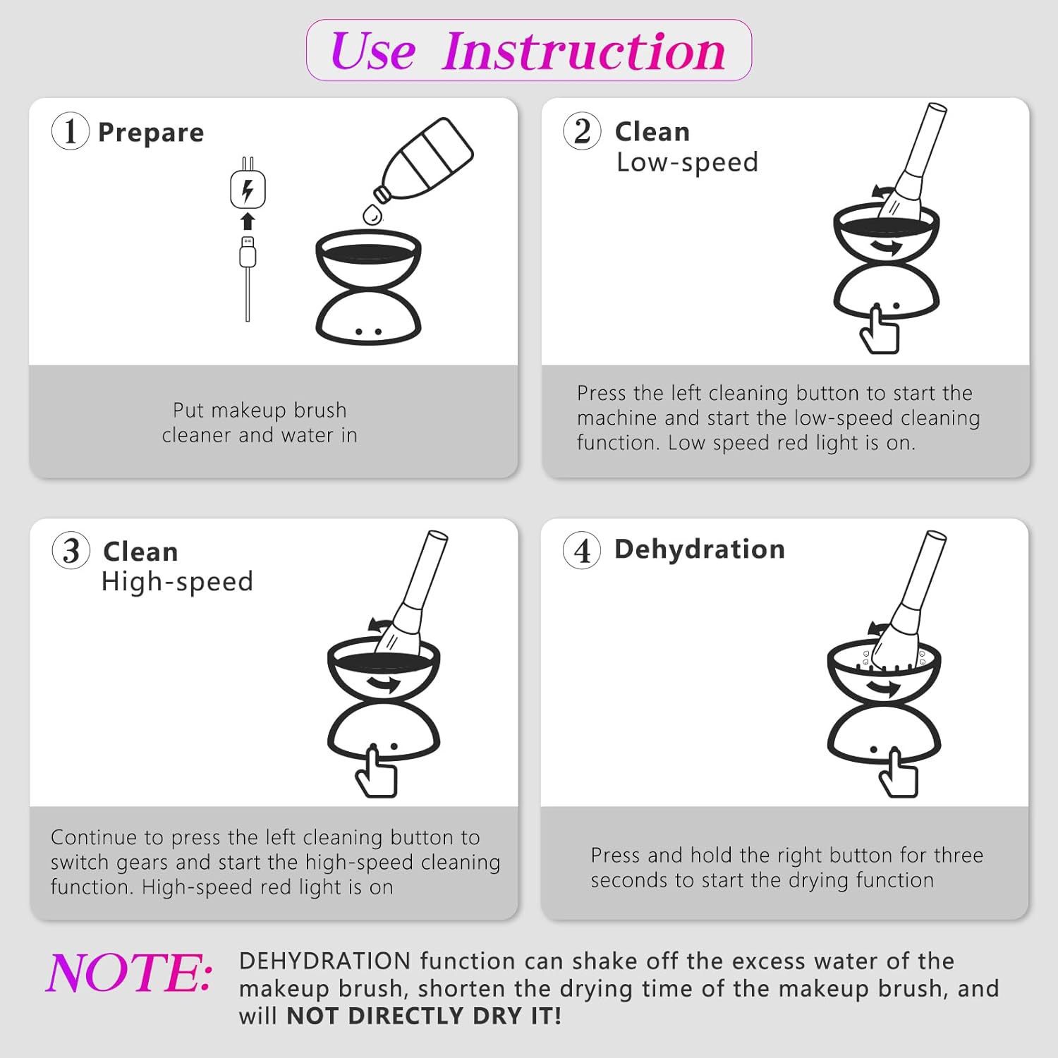 • Fast Cleaning & Drying: Cleans and dries makeup brushes in just 30 seconds.