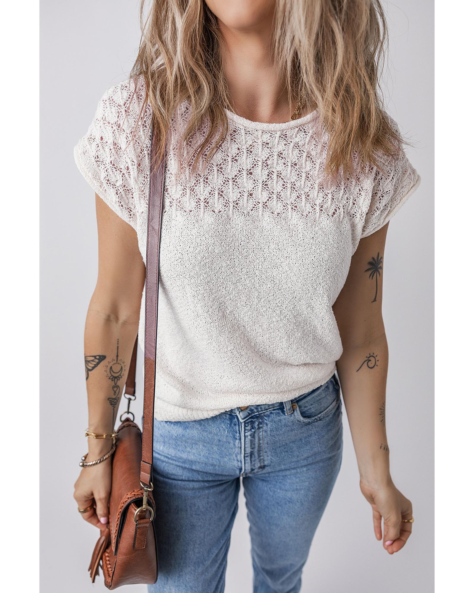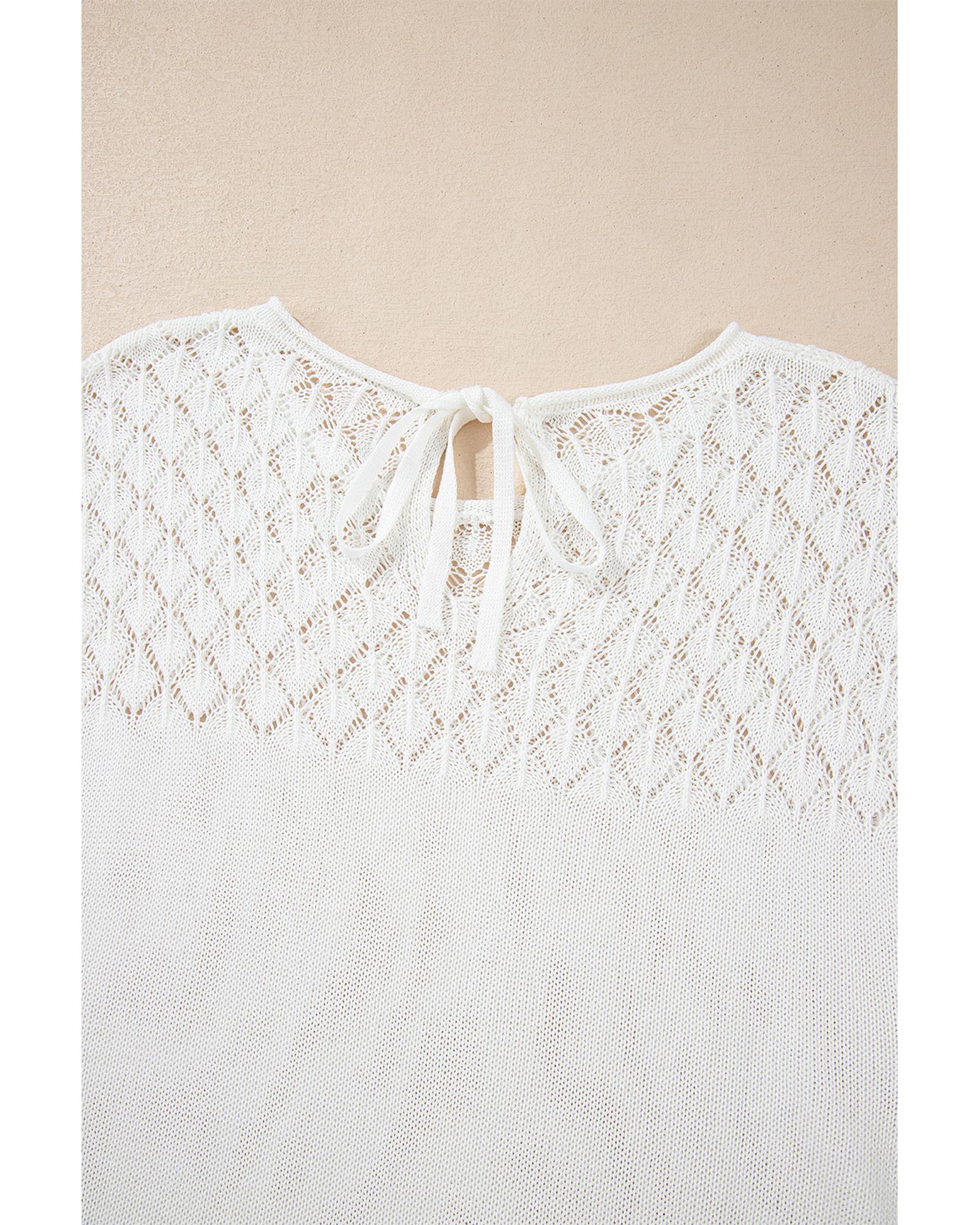 - White eyelet knit short sleeve sweater