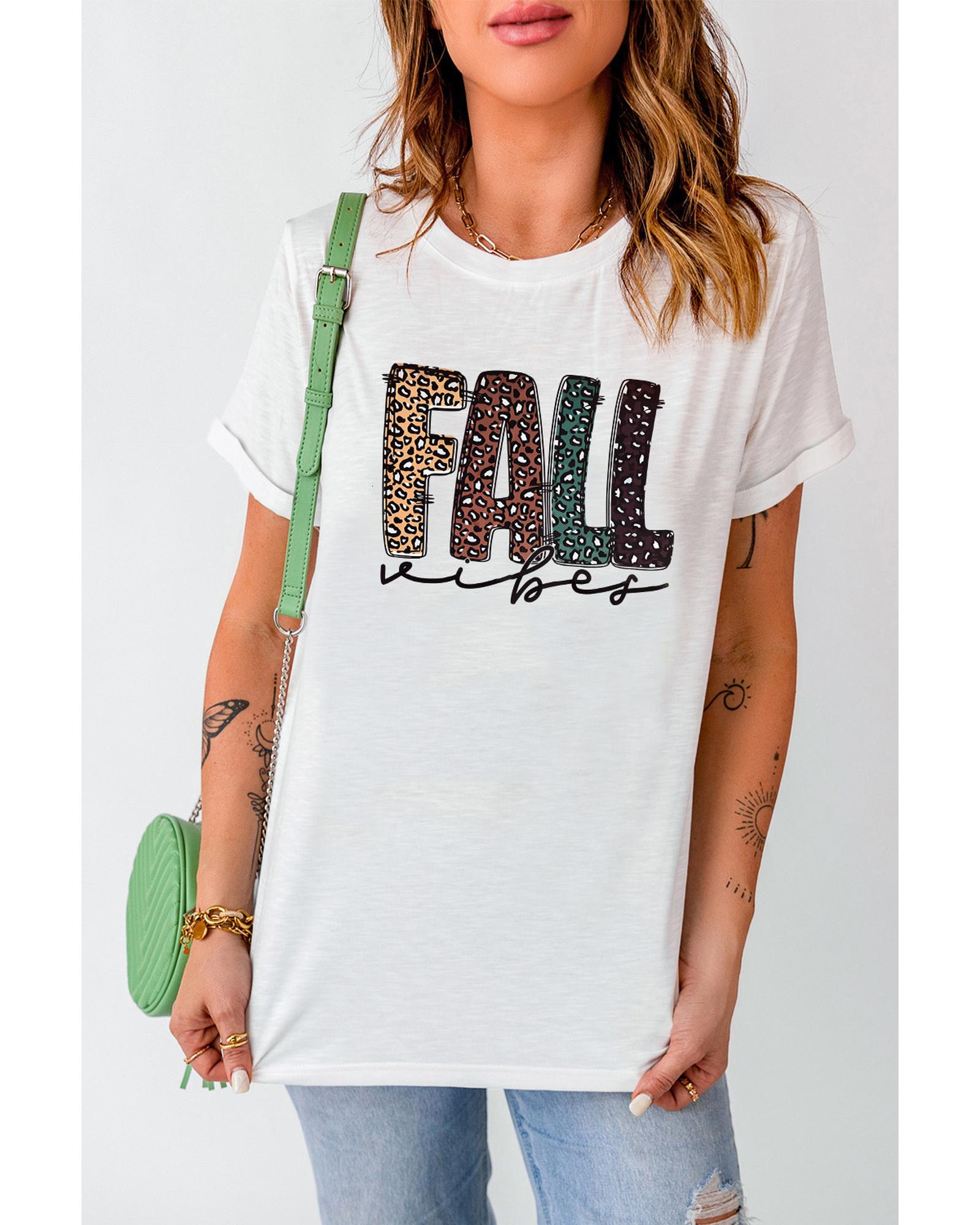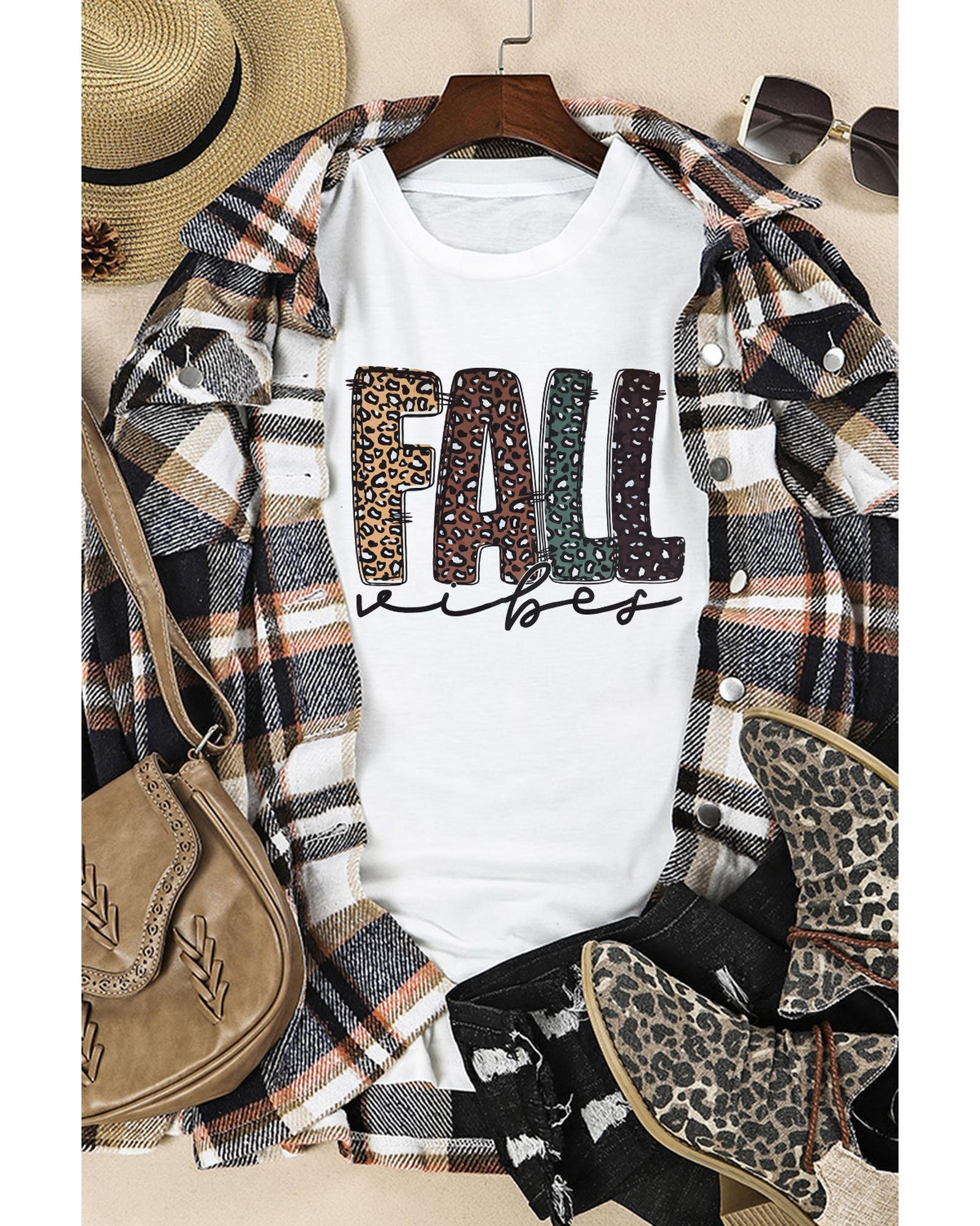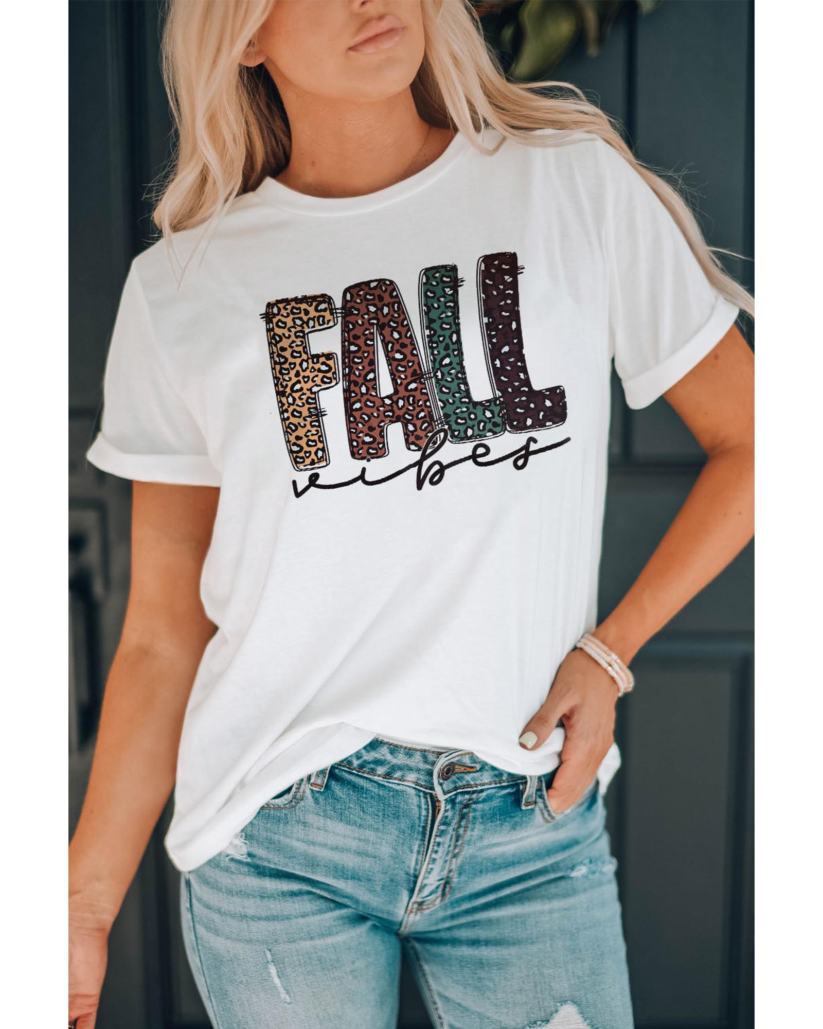 White FALL Vibe Leopard Print Crew Neck T Shirt – M