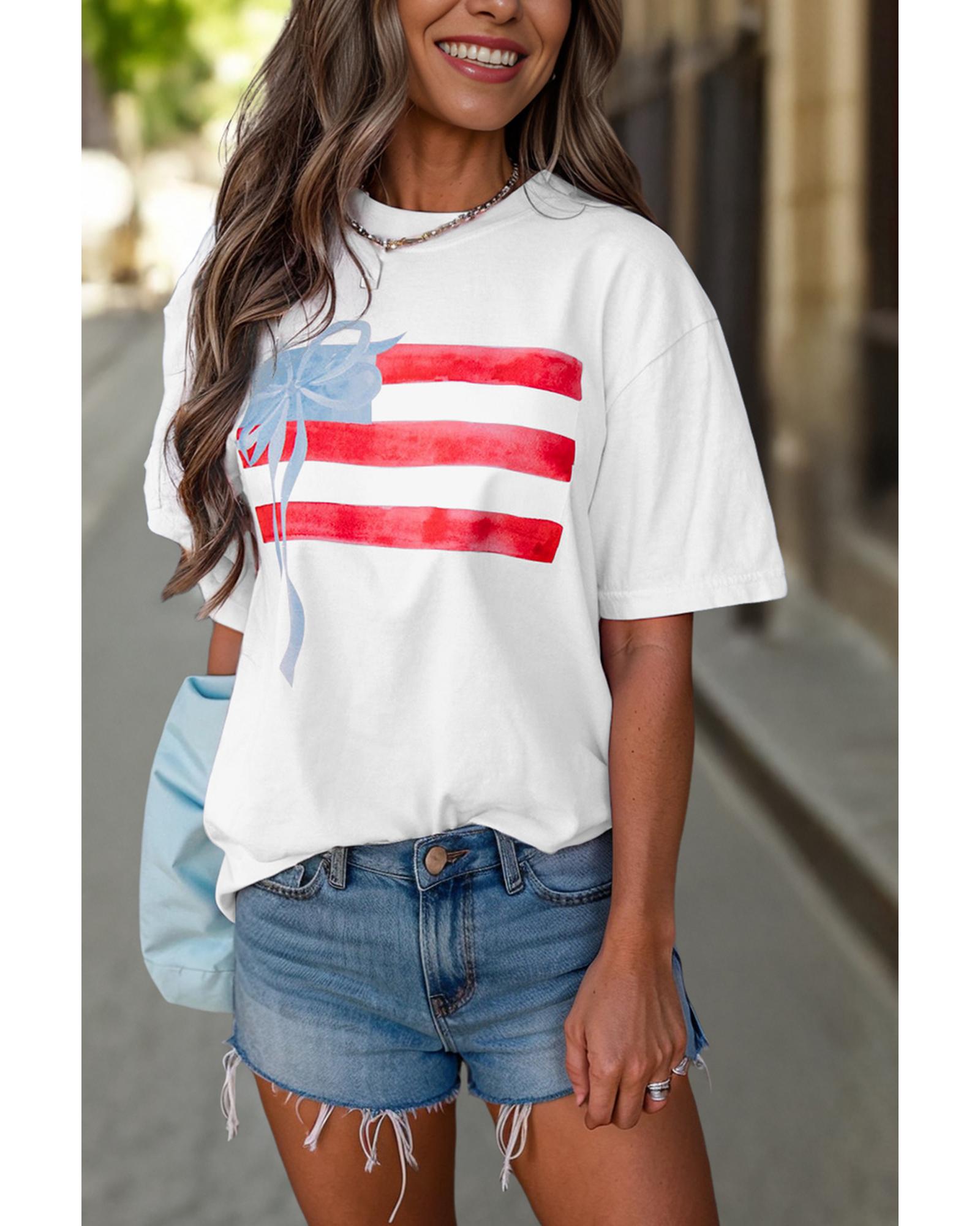 - White Flag Bow Graphic Crewneck Tee