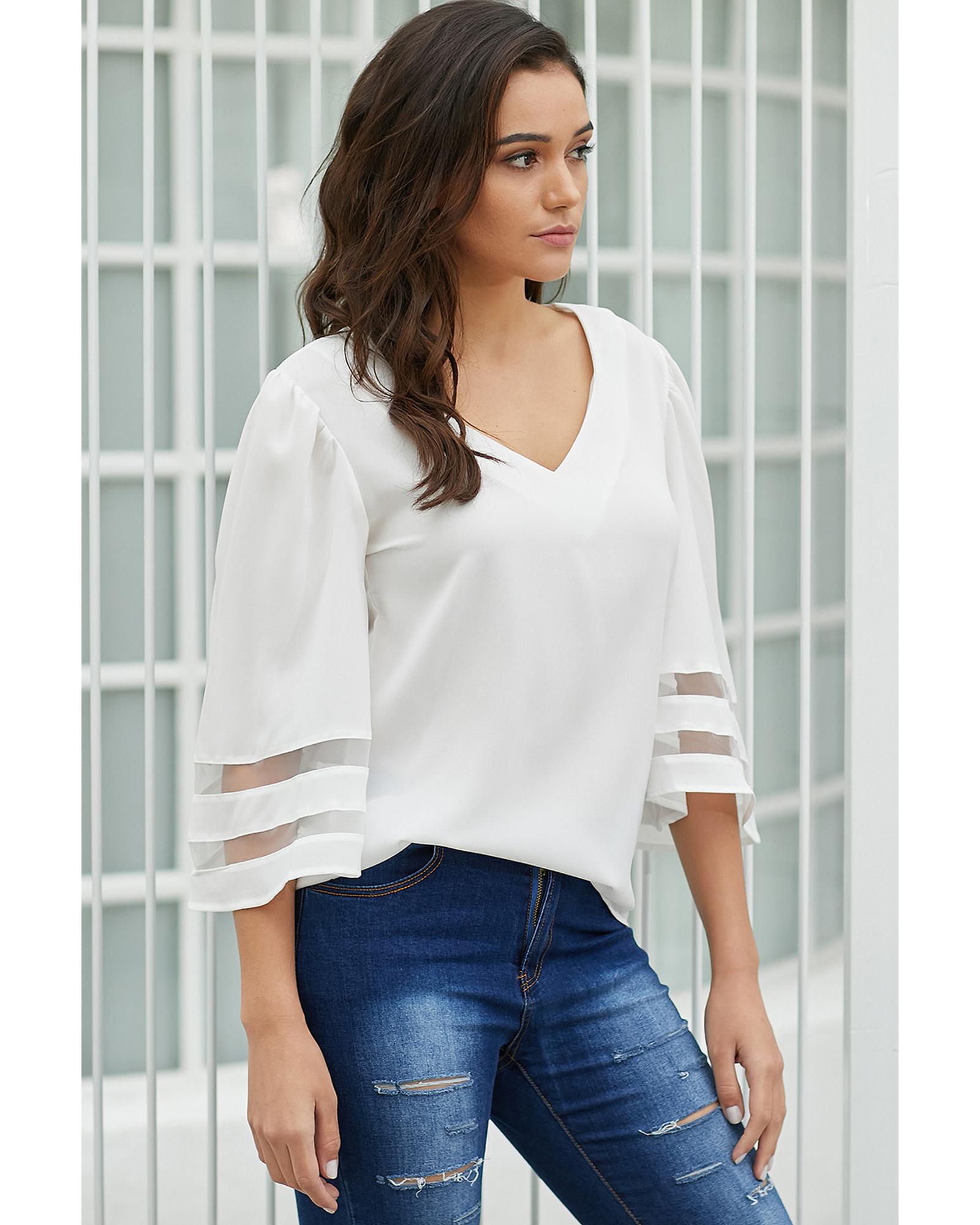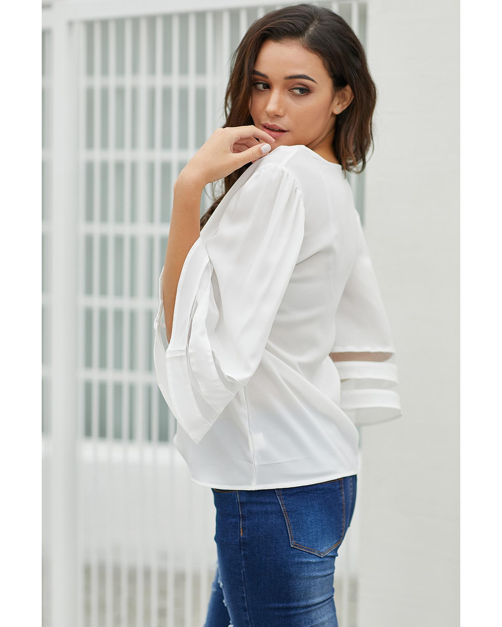 - Luxurious Flare Sleeve V Neck Loose Blouse
