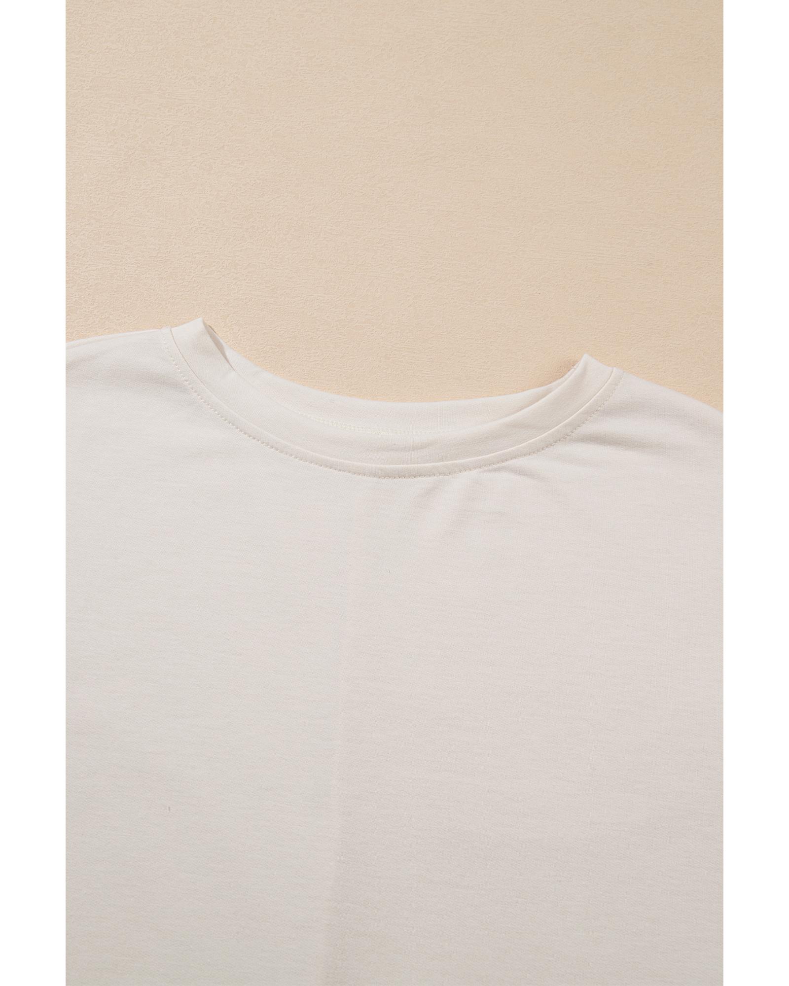 - White Floral Crochet Splicing Sleeve T