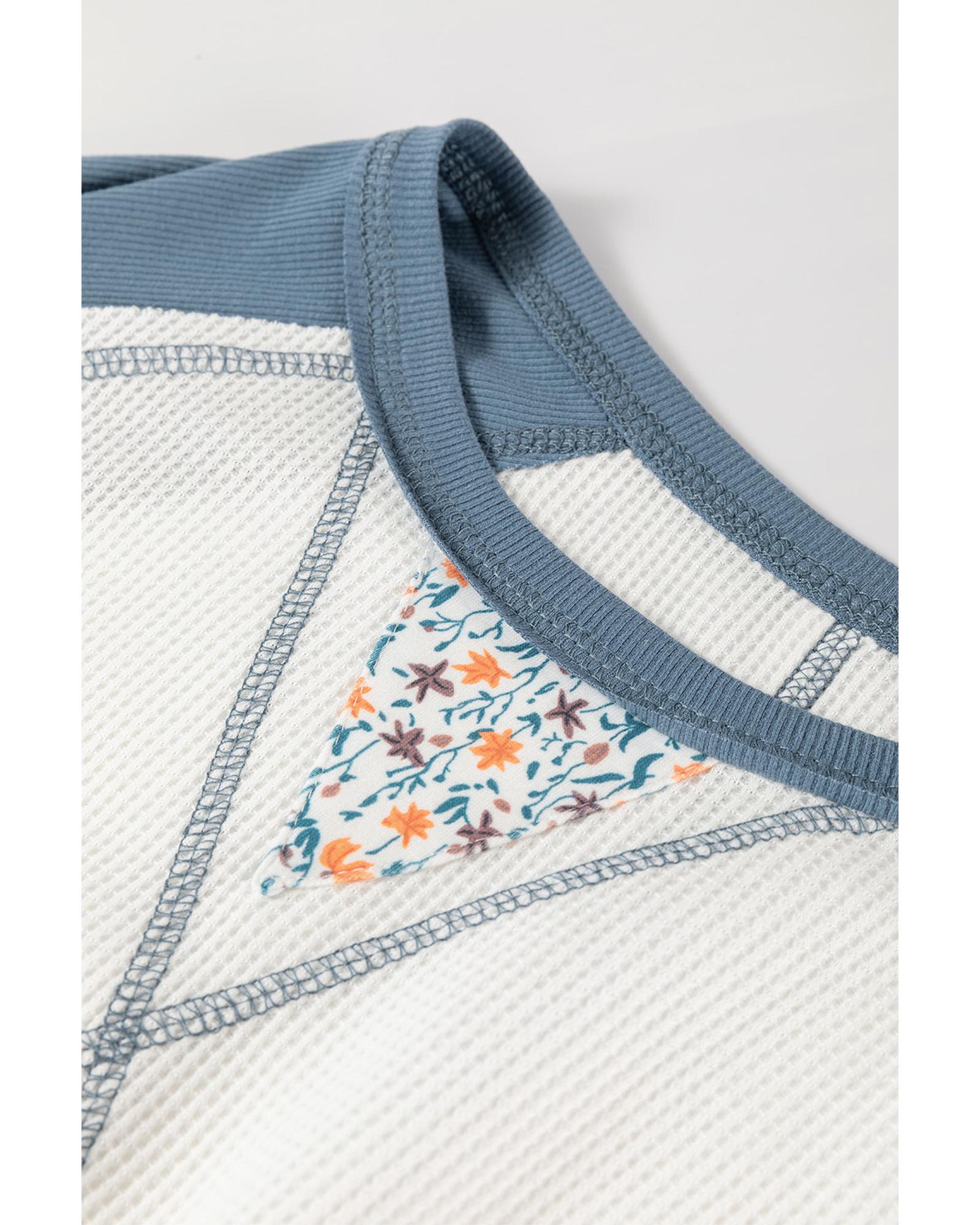 White Floral Patchwork Waffle Knit Raglan Top – XL