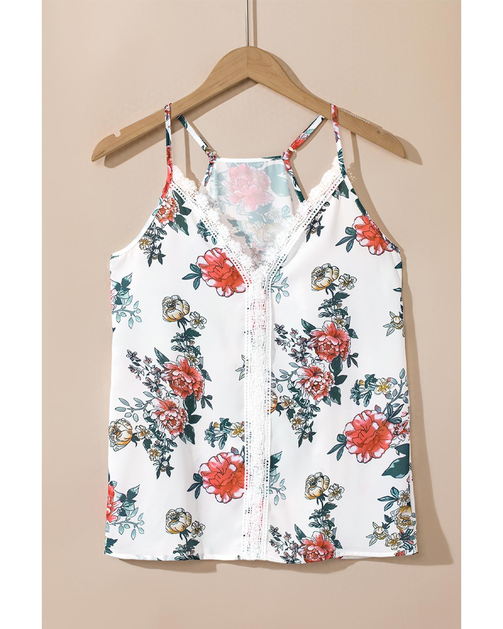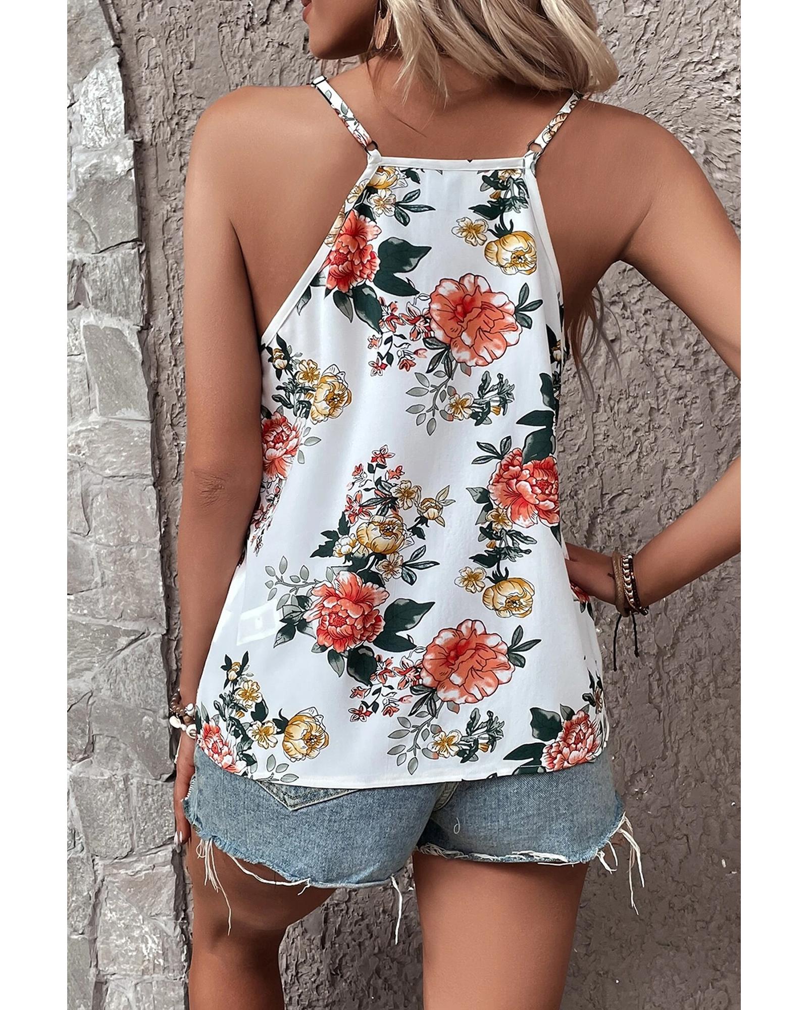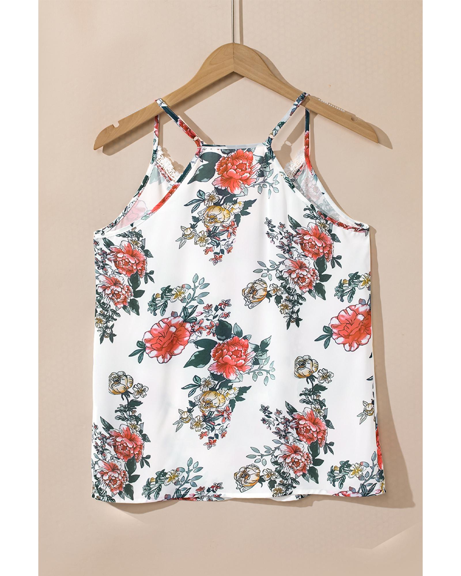 - White floral print tank top