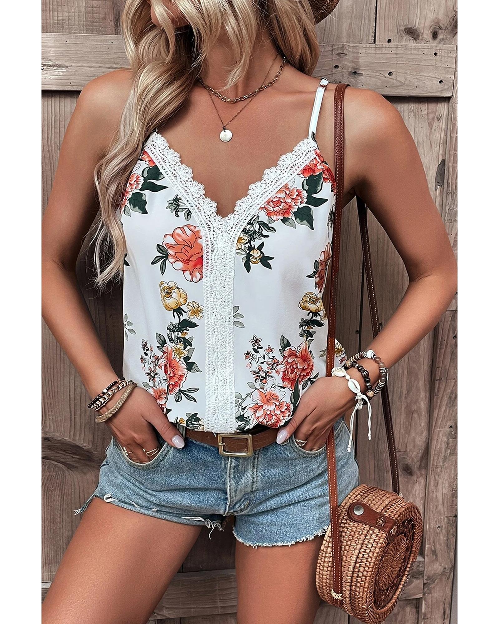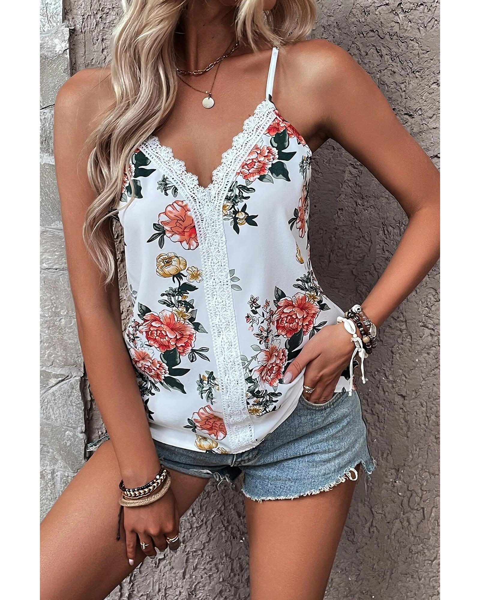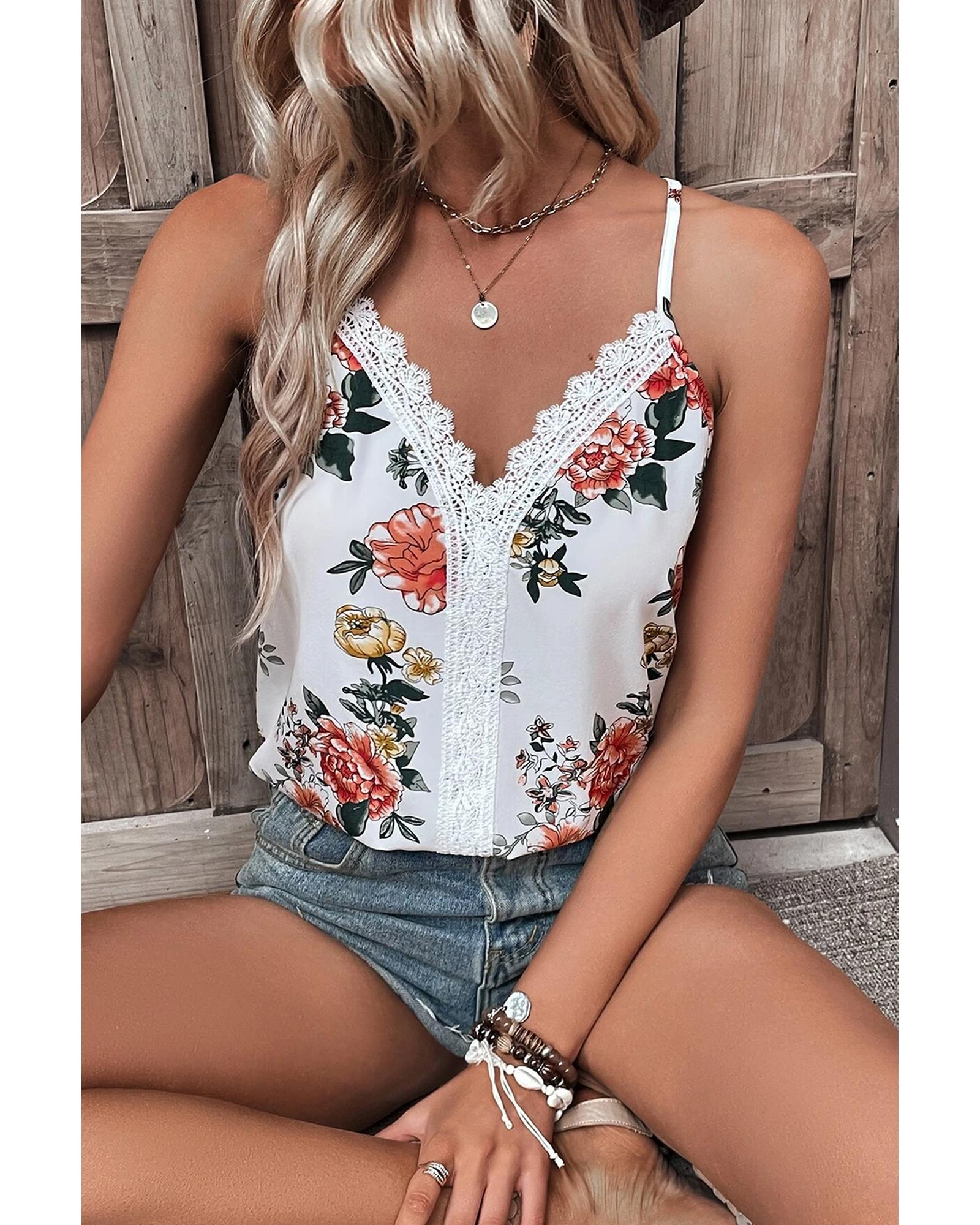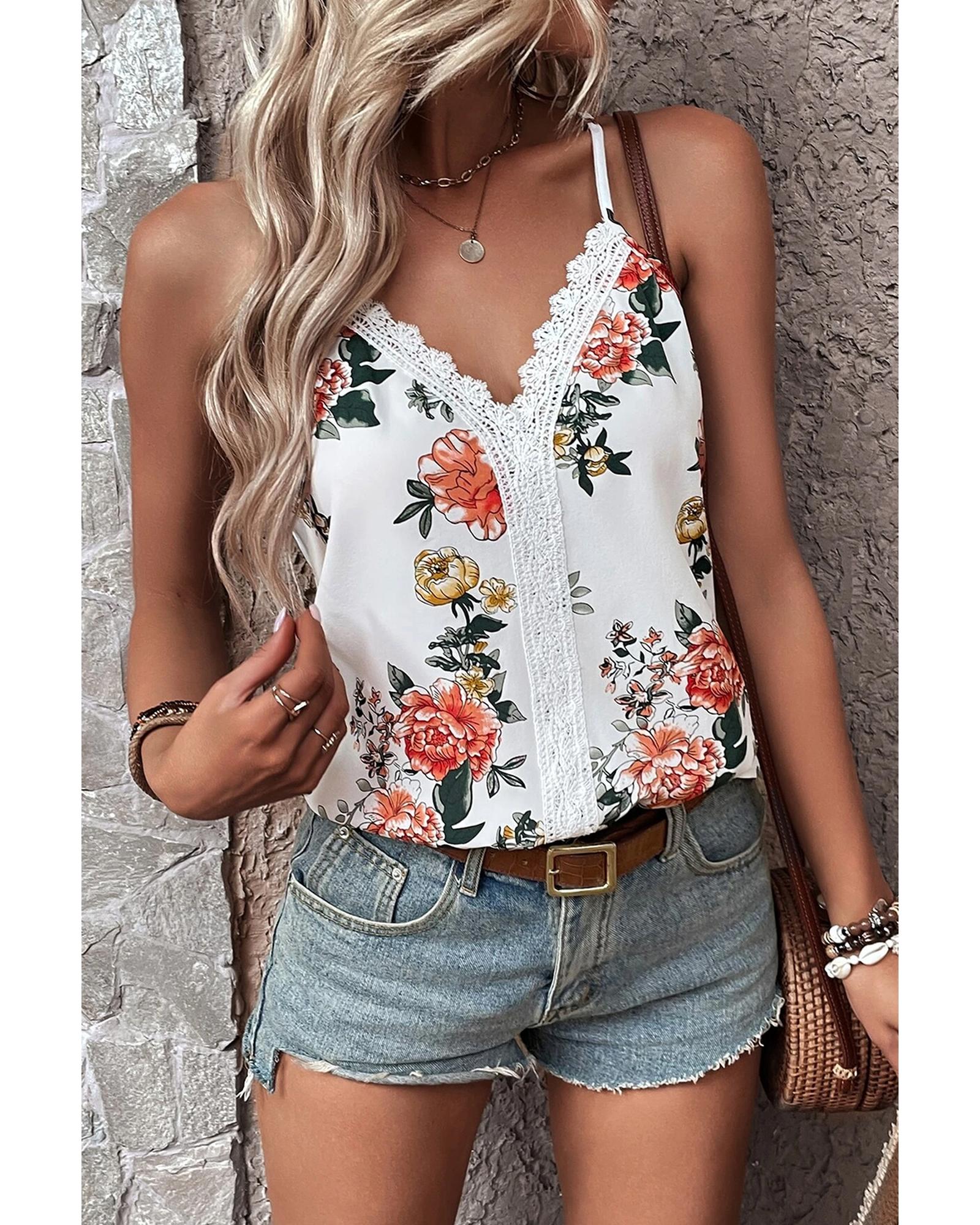 - White floral print tank top