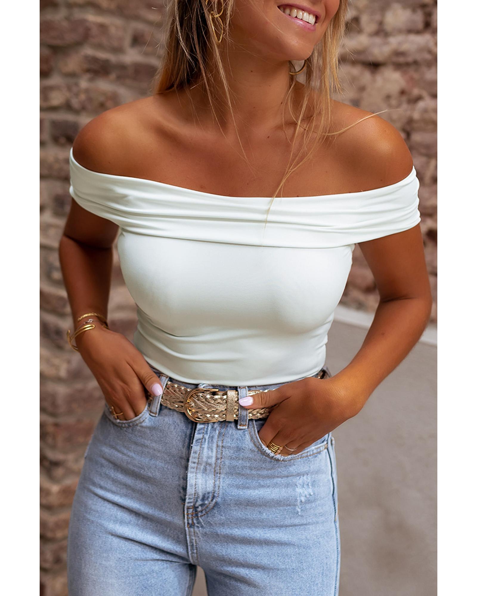 White Folded Off Shoulder Slim Top – M
