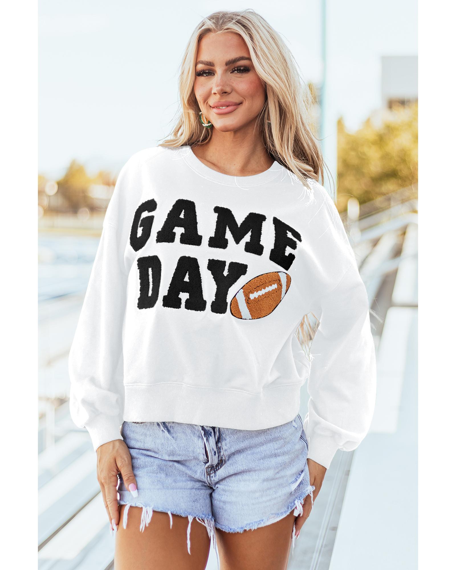 White GAME DAY Graphic Varsity Pullover Sweatshirt – S