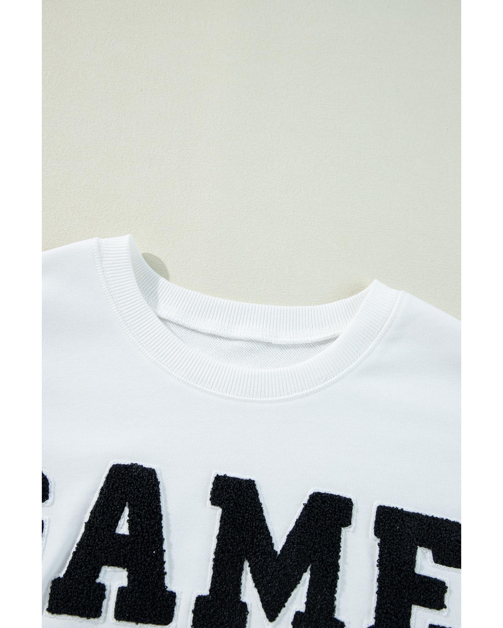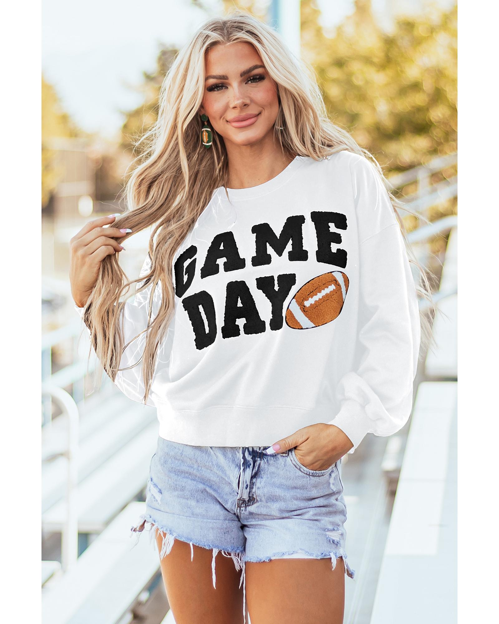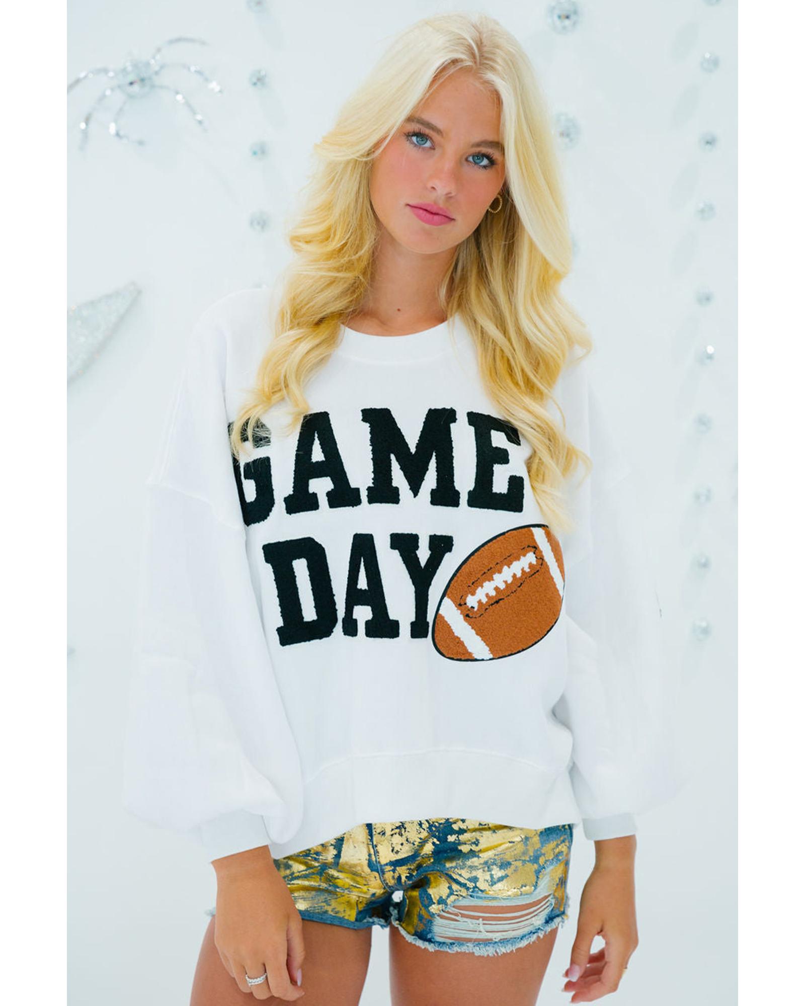 White GAME DAY Graphic Varsity Pullover Sweatshirt – XL