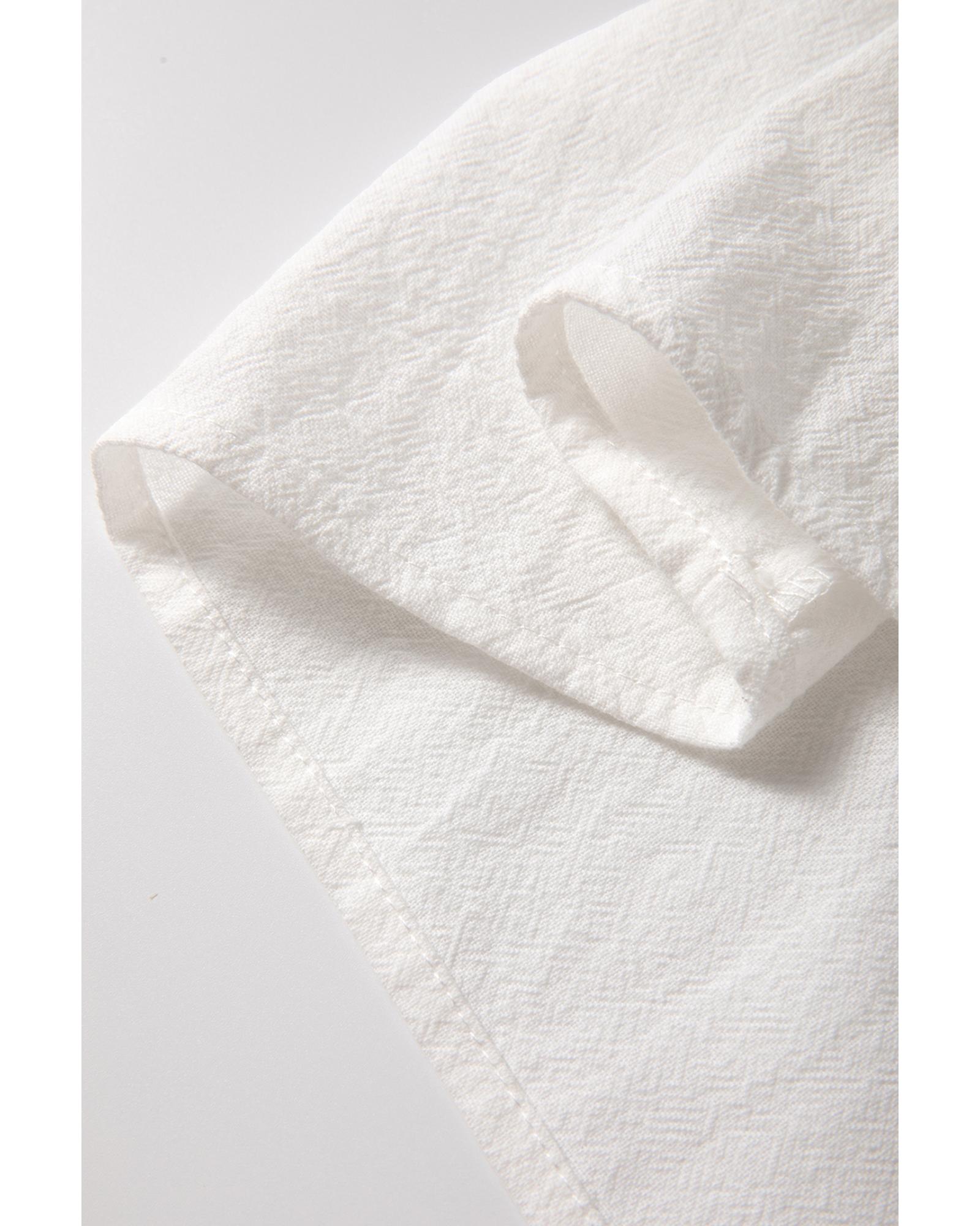 White Geometric Embroidered Long Sleeve Buttoned Blouse – L