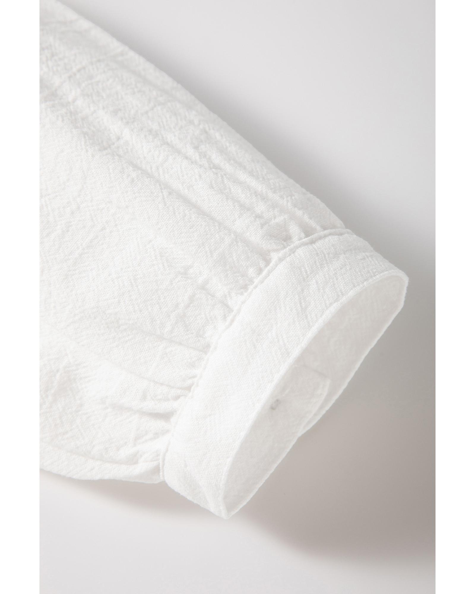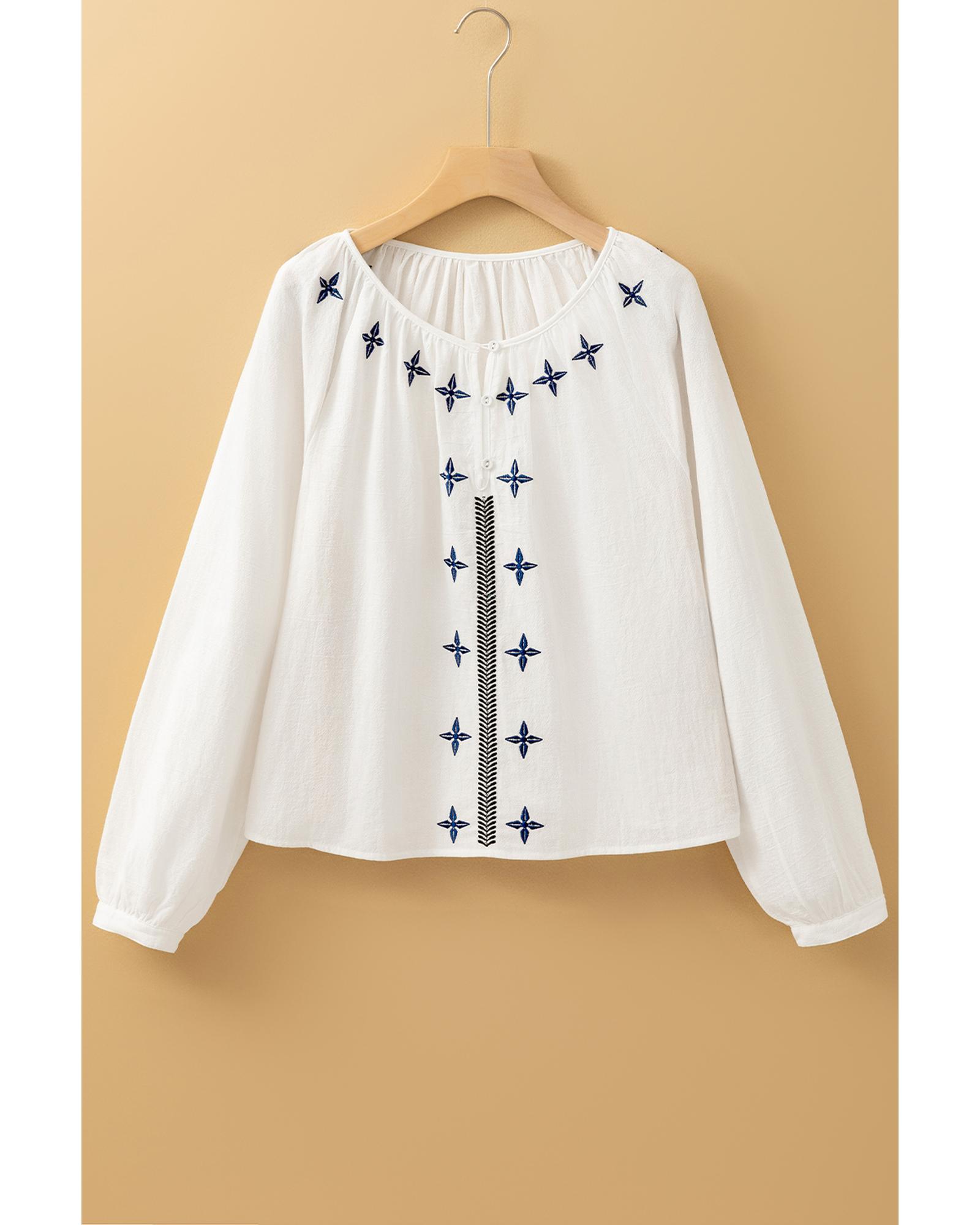 White Geometric Embroidered Long Sleeve Buttoned Blouse – S