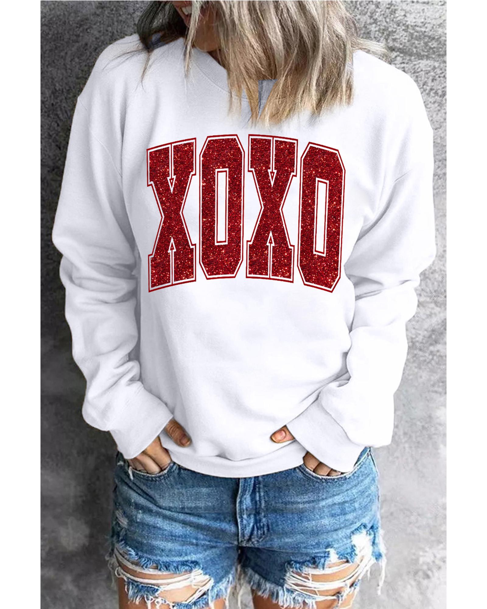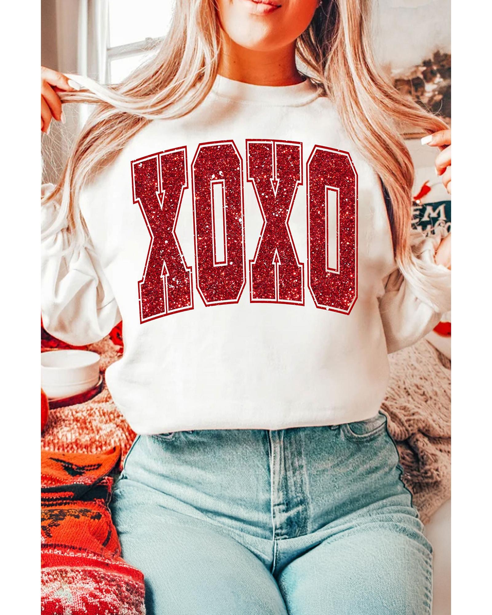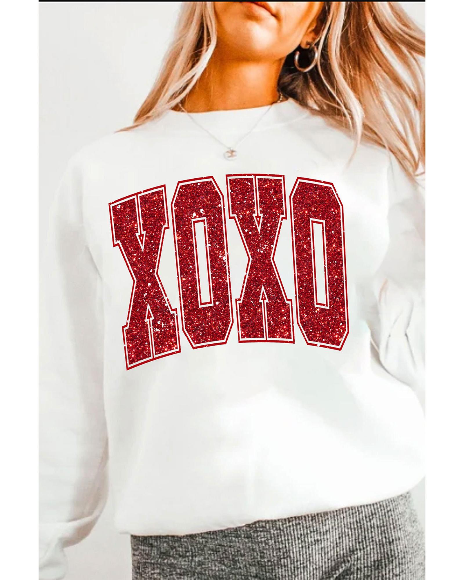 White Glitter XOXO Graphic Crewneck Valentines Pullover Sweatshirt – M