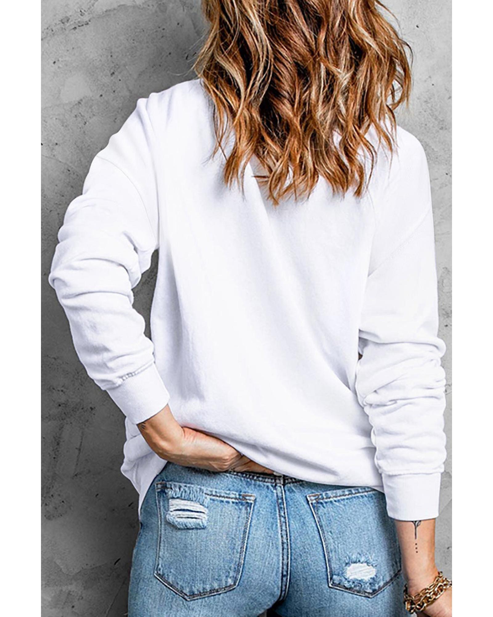 White Glitter XOXO Graphic Crewneck Valentines Pullover Sweatshirt – XL