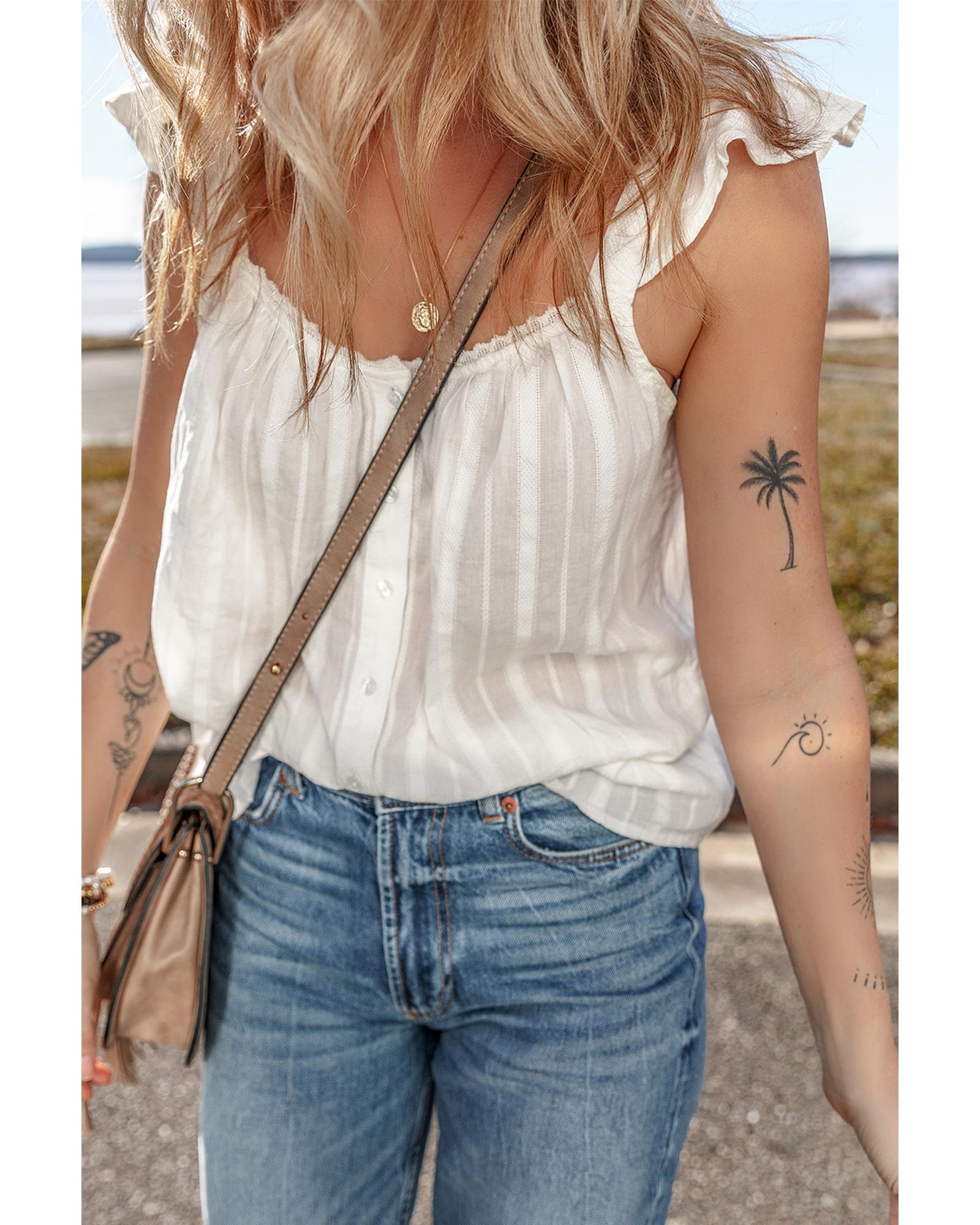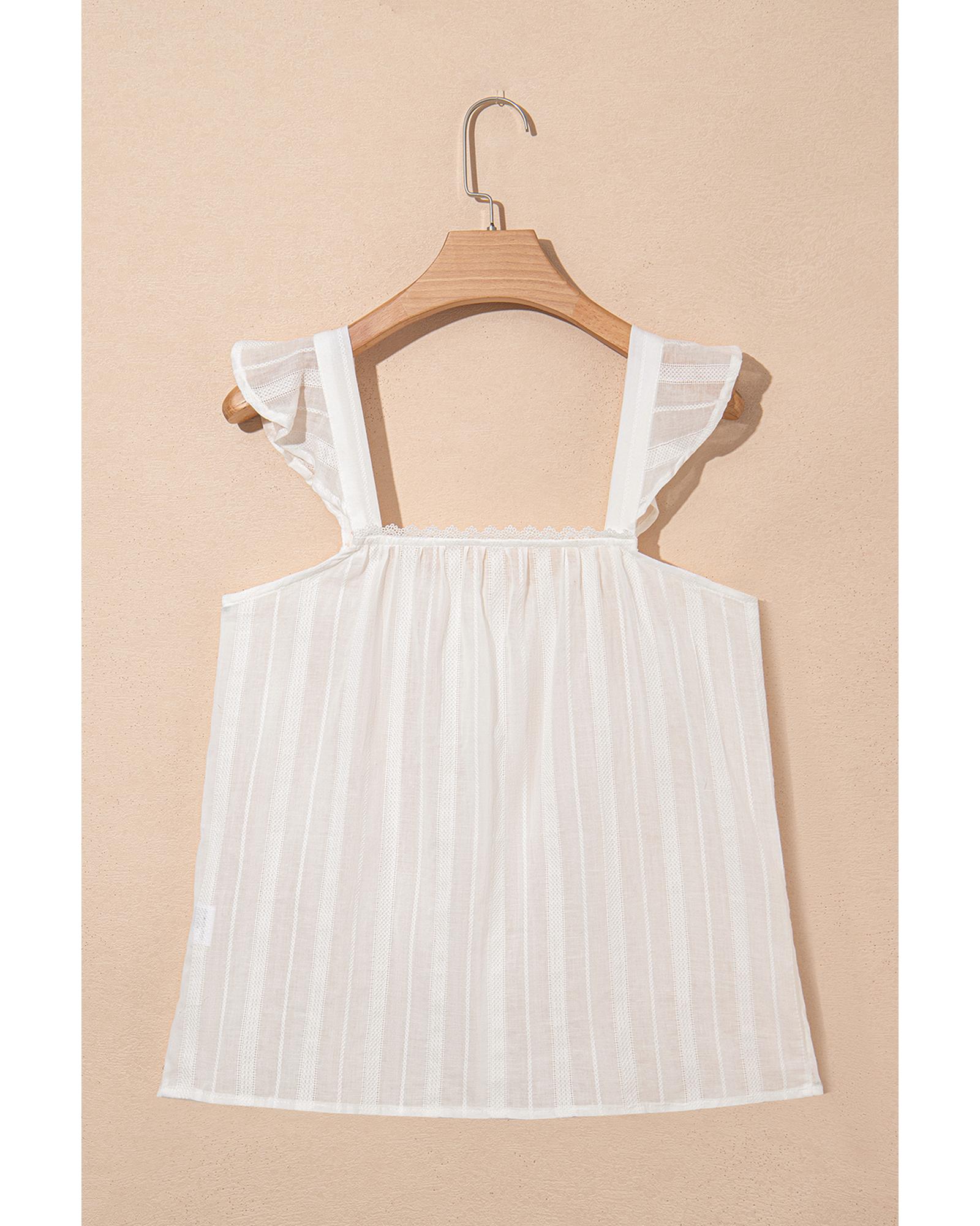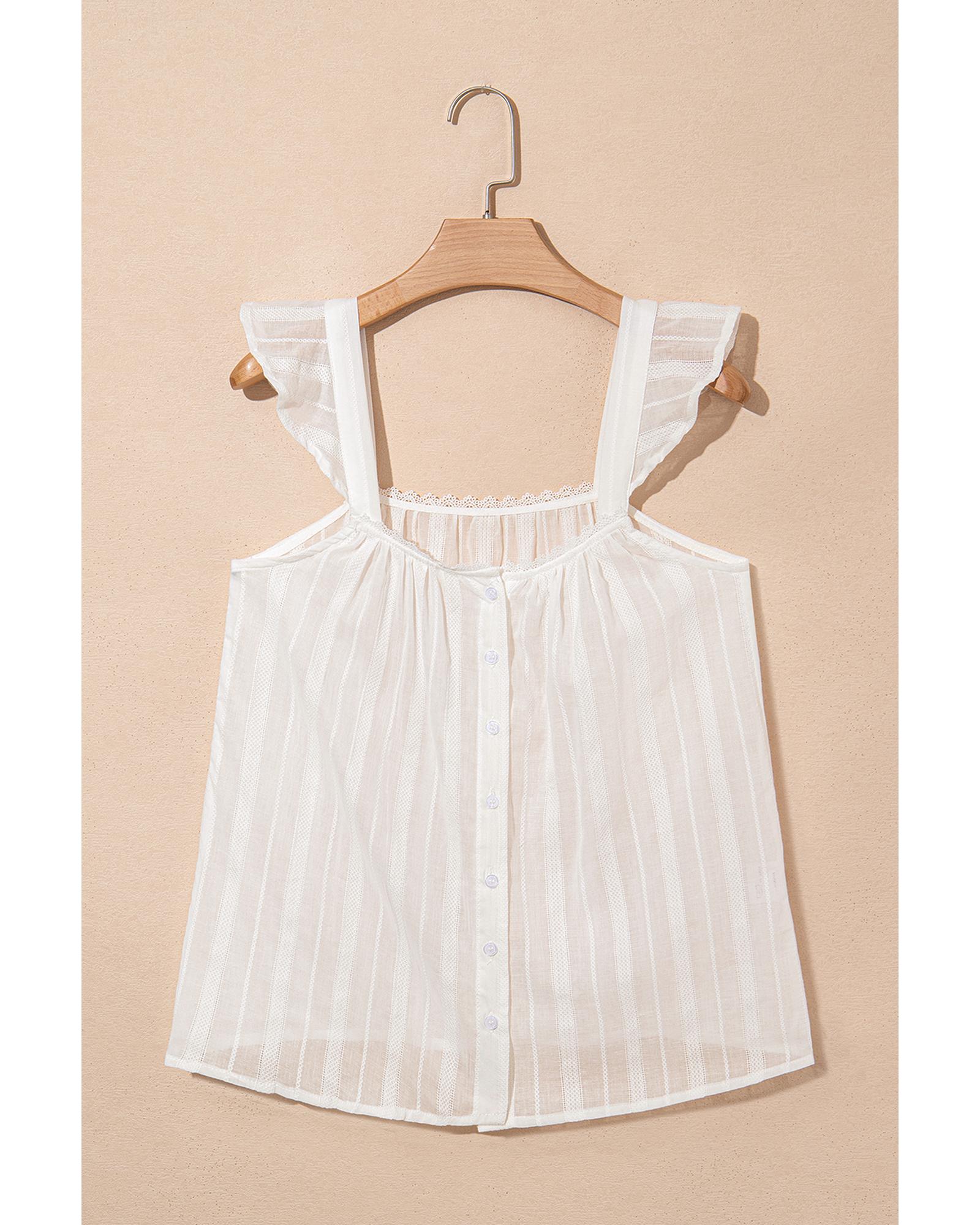 White Lace Crochet Ruffled Buttoned Loose Fit Tank Top – L