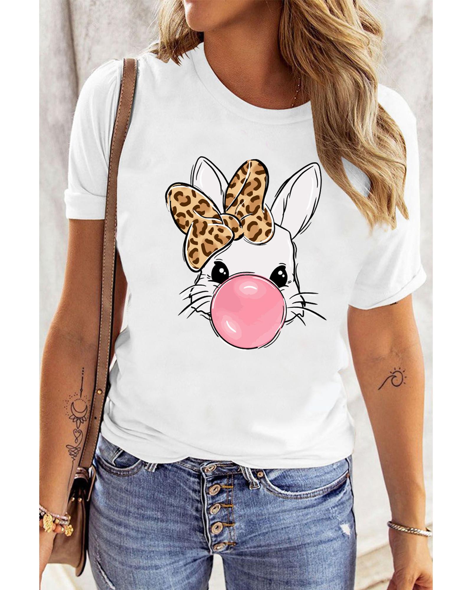 White Leopard Bow Bubble Rabbit Graphic Tee – 2XL