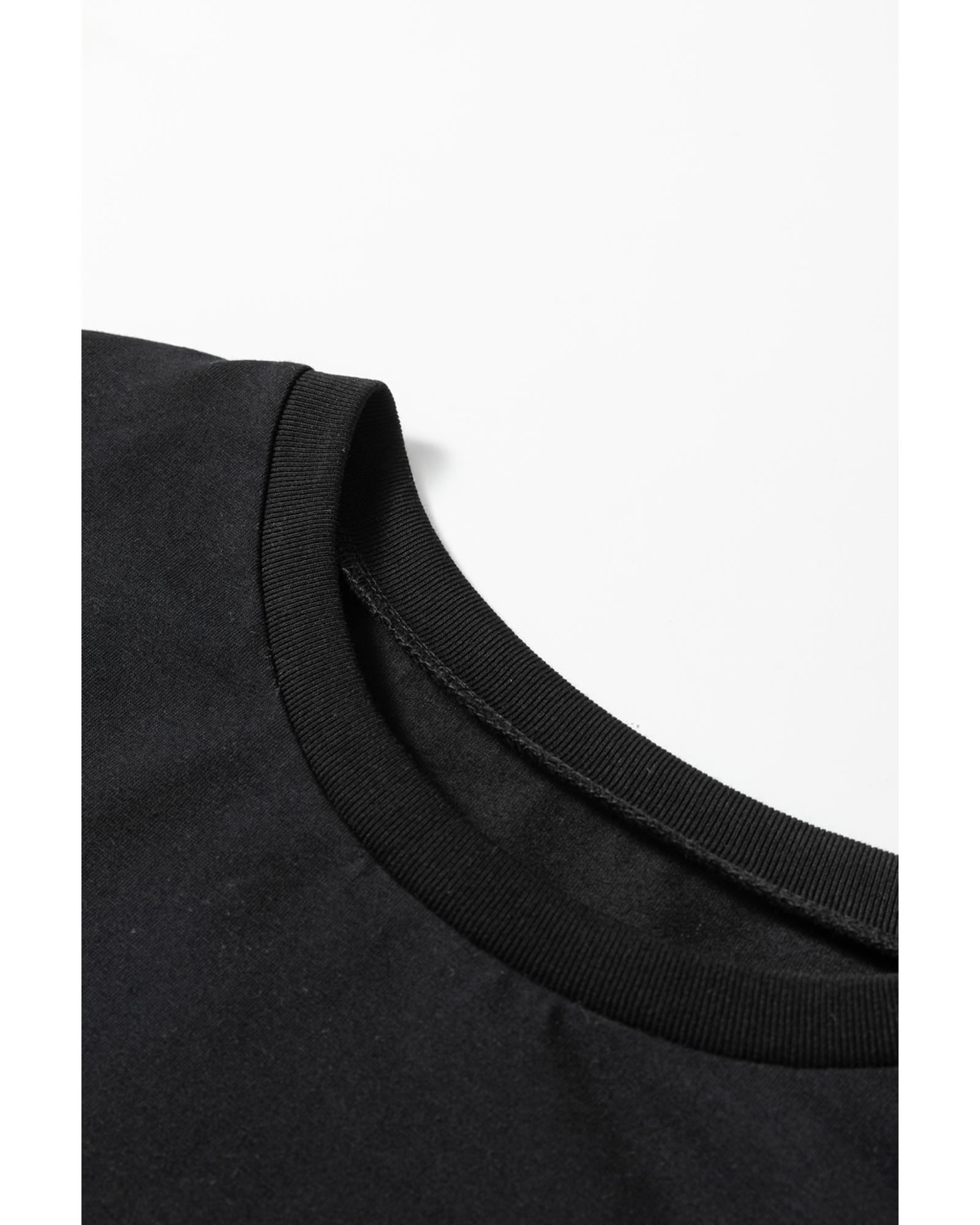 Black Sequin Triangle Patched Pattern Halloween T Shirt - S