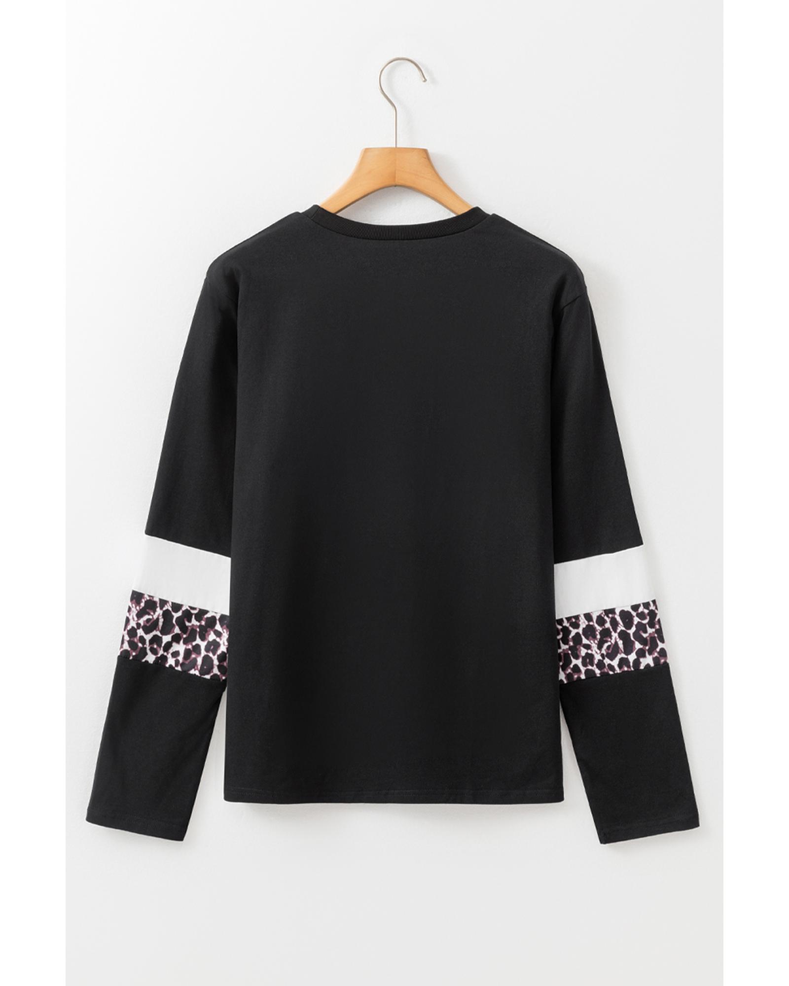 White Leopard Colorblock Patchwork Crew Neck Long Sleeve Tee – S