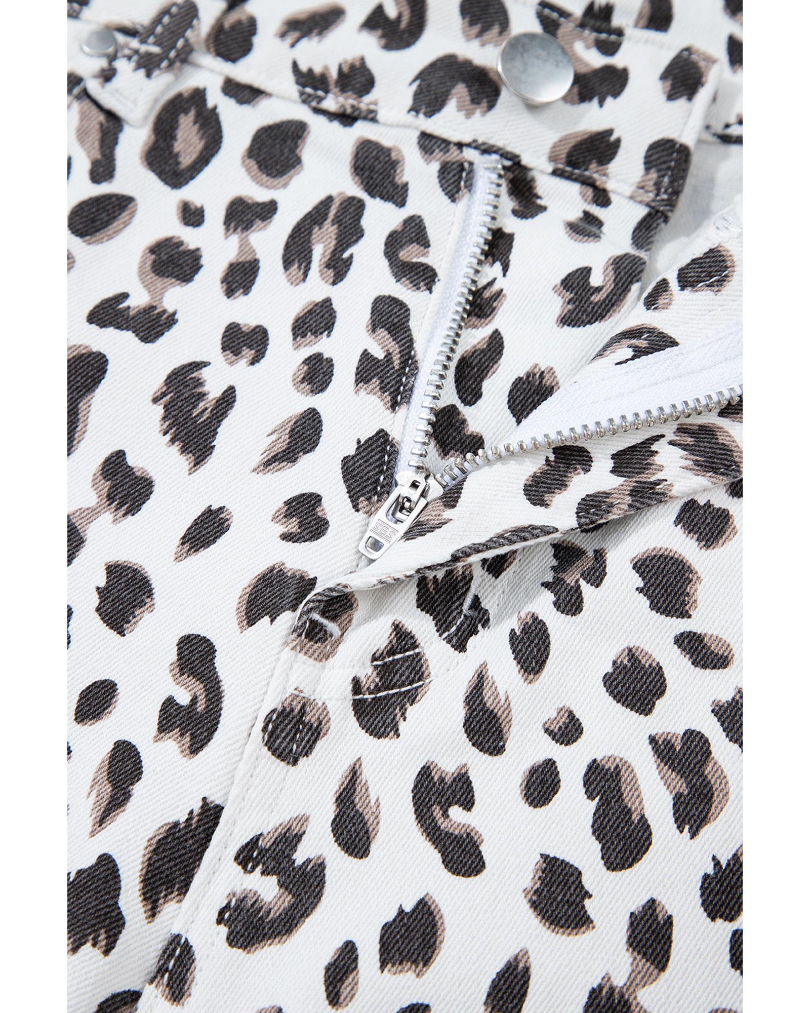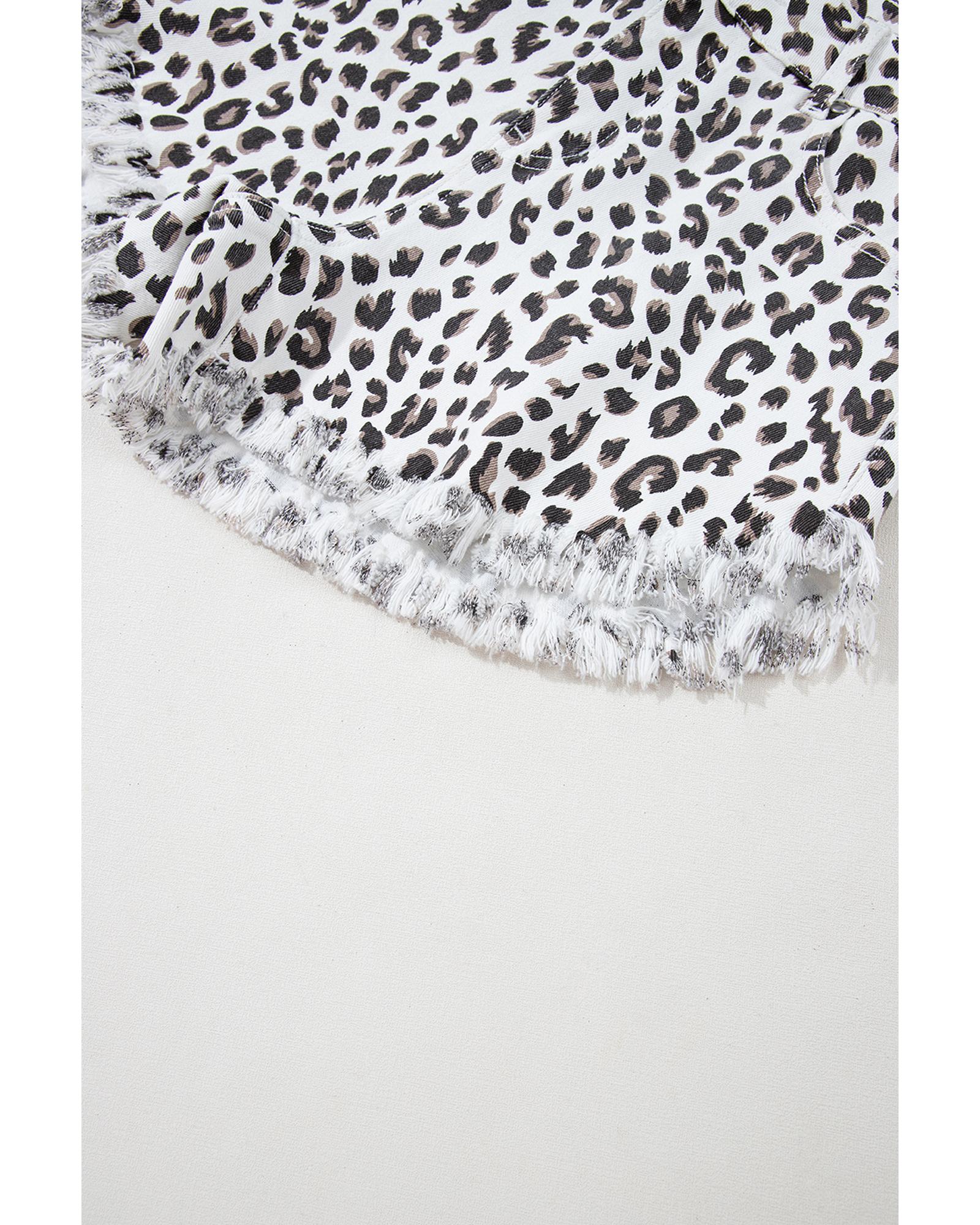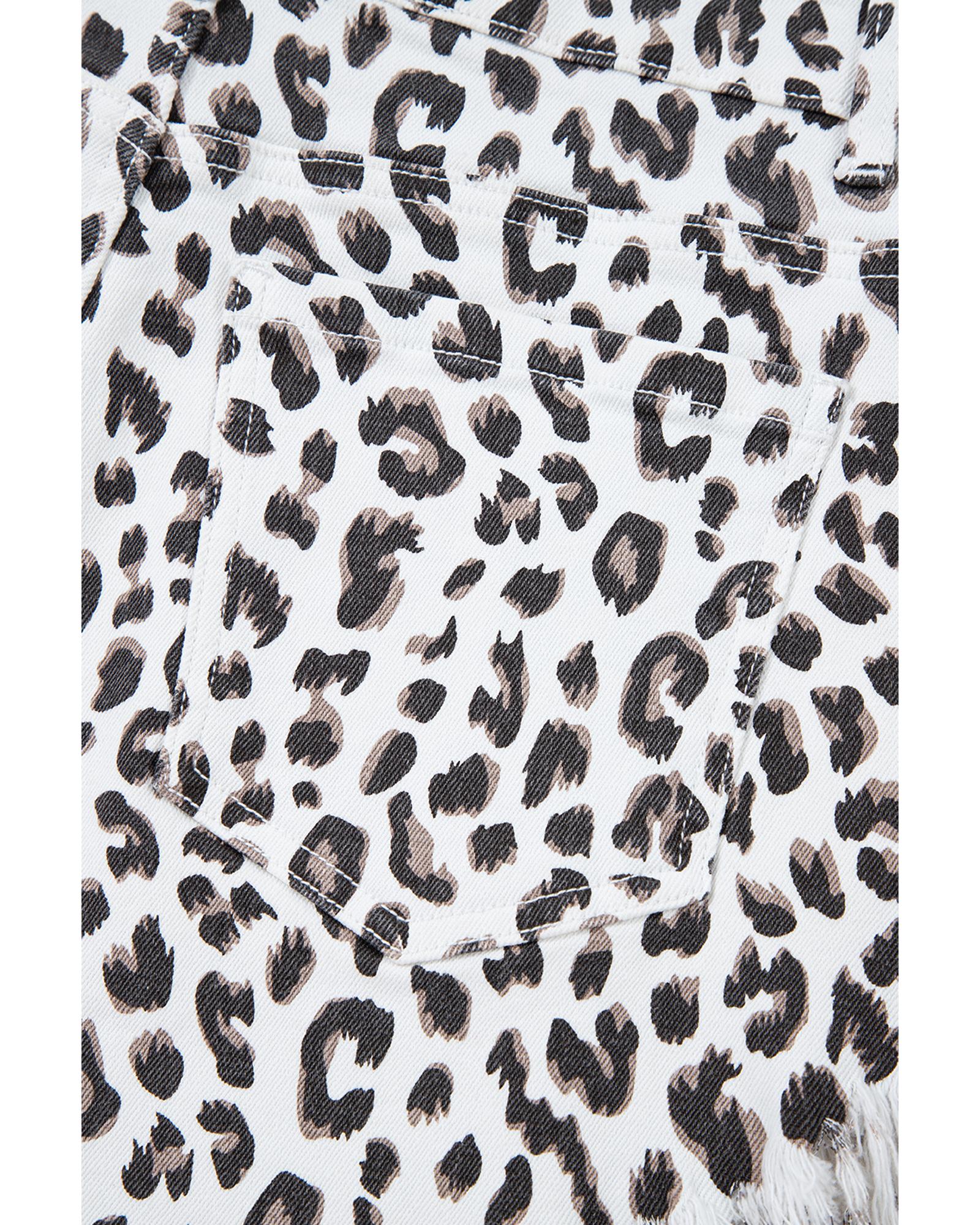 White Leopard Frayed Hem Denim Shorts – 8 US