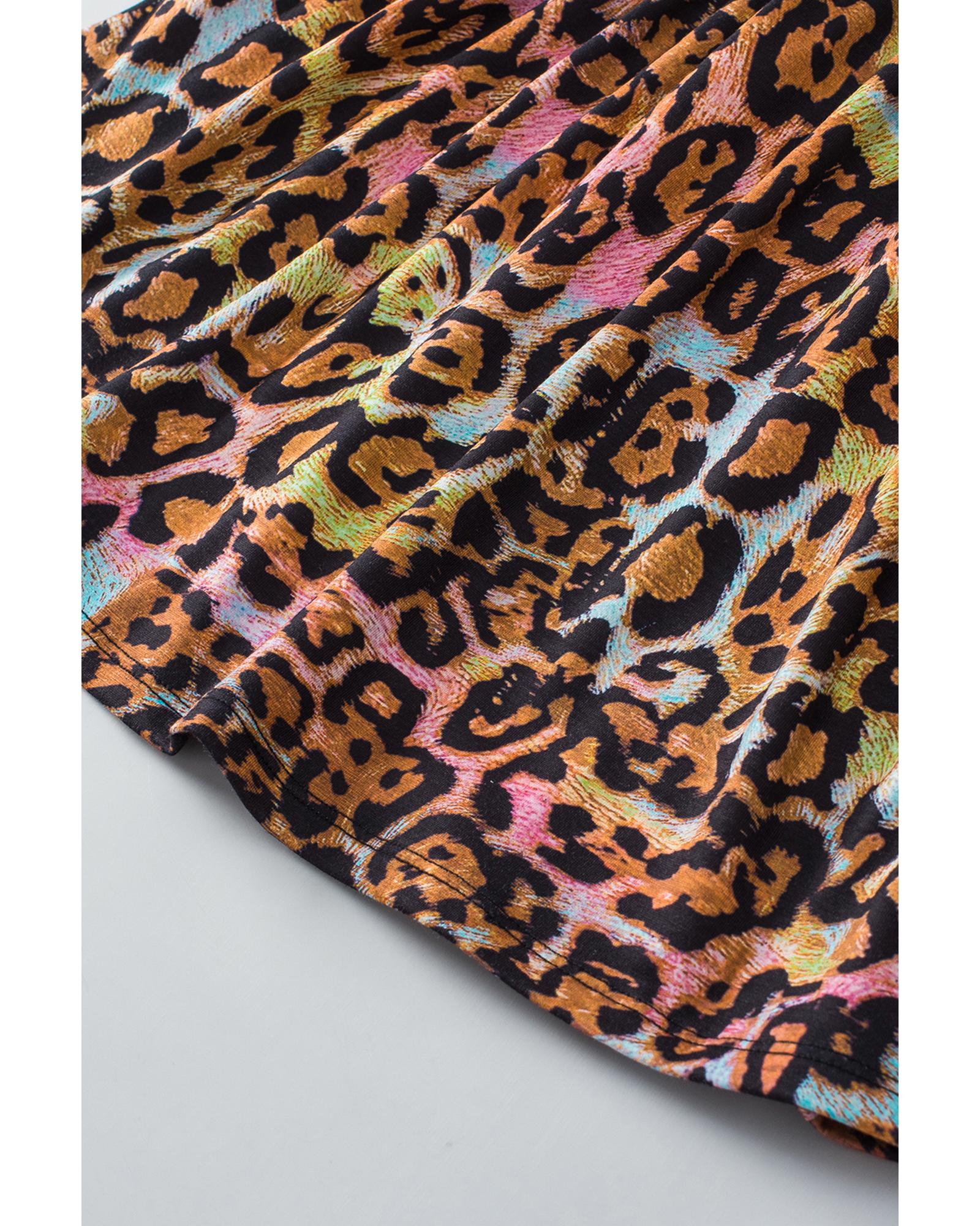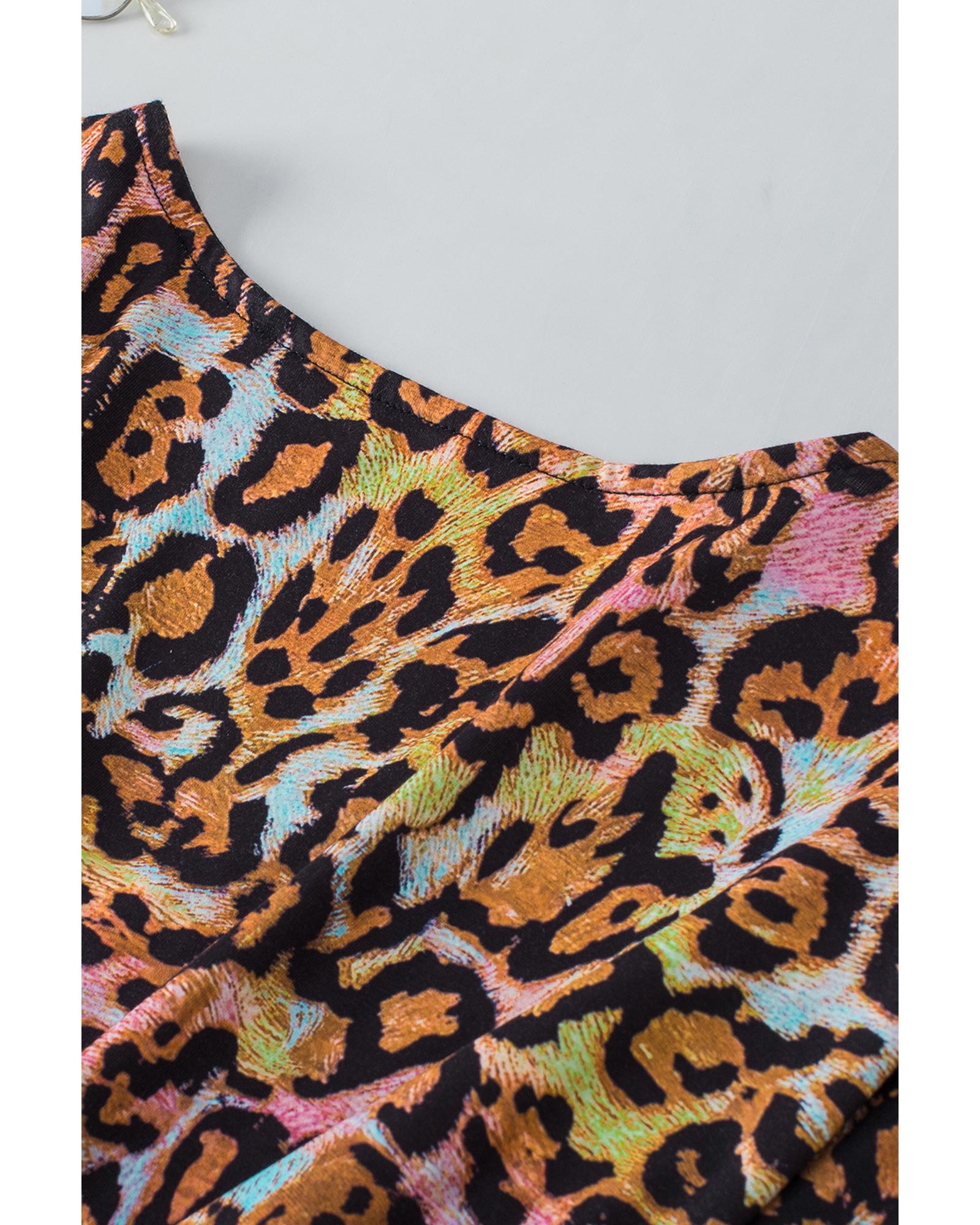 White Leopard Print Wide Sleeve Peplum Hem Blouse – M