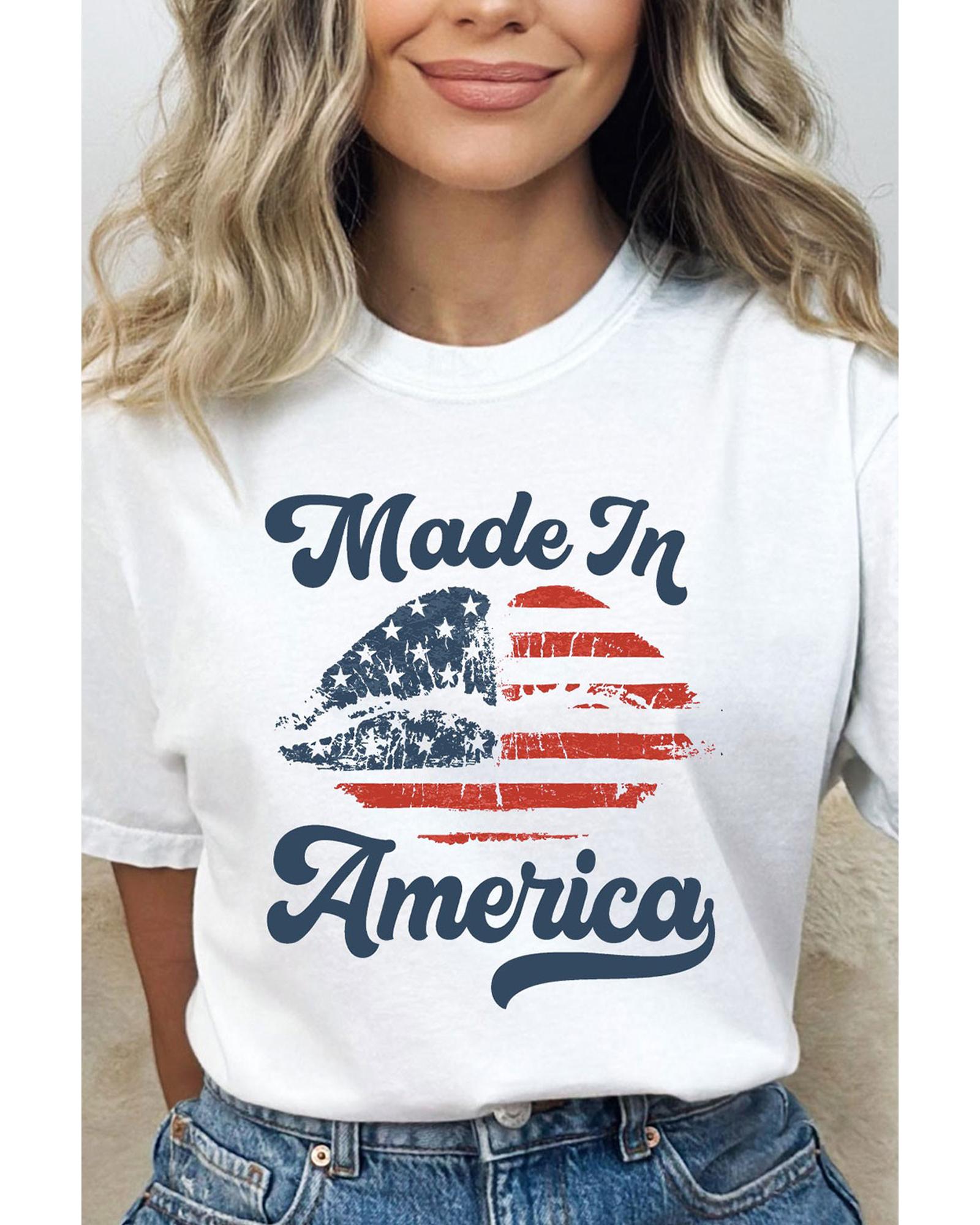White Made in America Lip Printed O Neck T Shirt – M