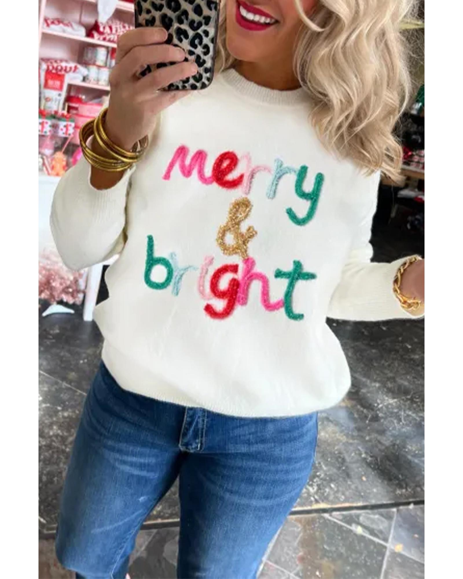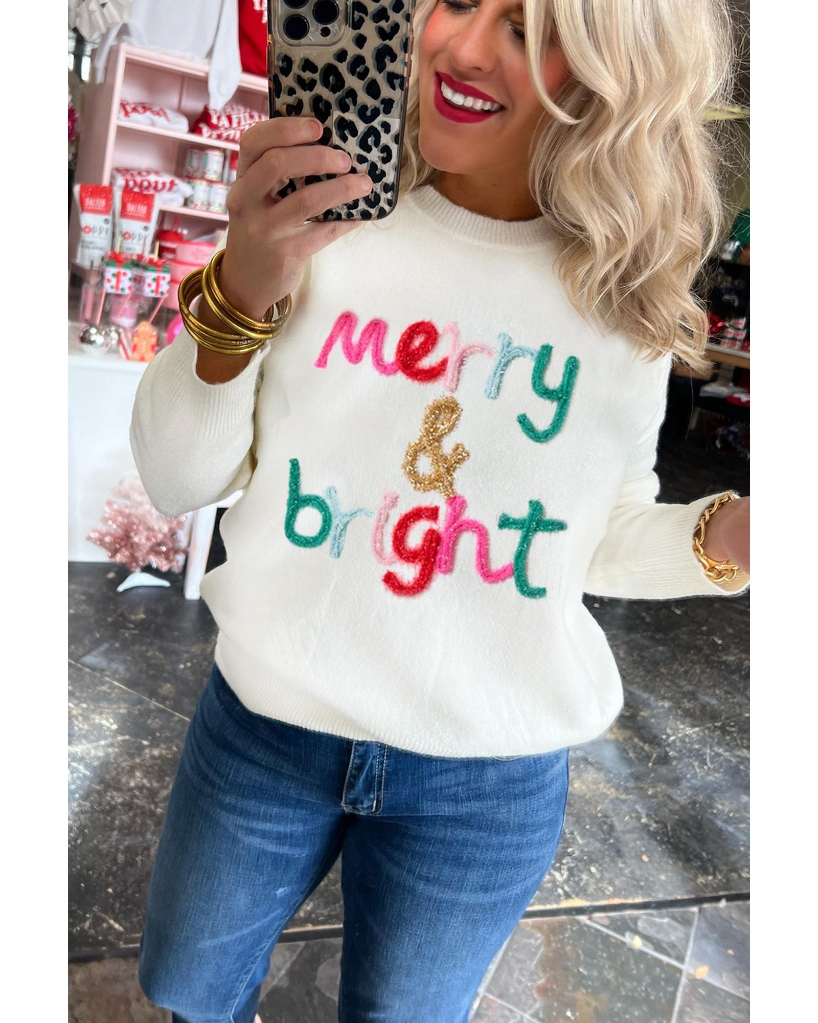 - White Merry & Bright Round Neck Casual Sweater