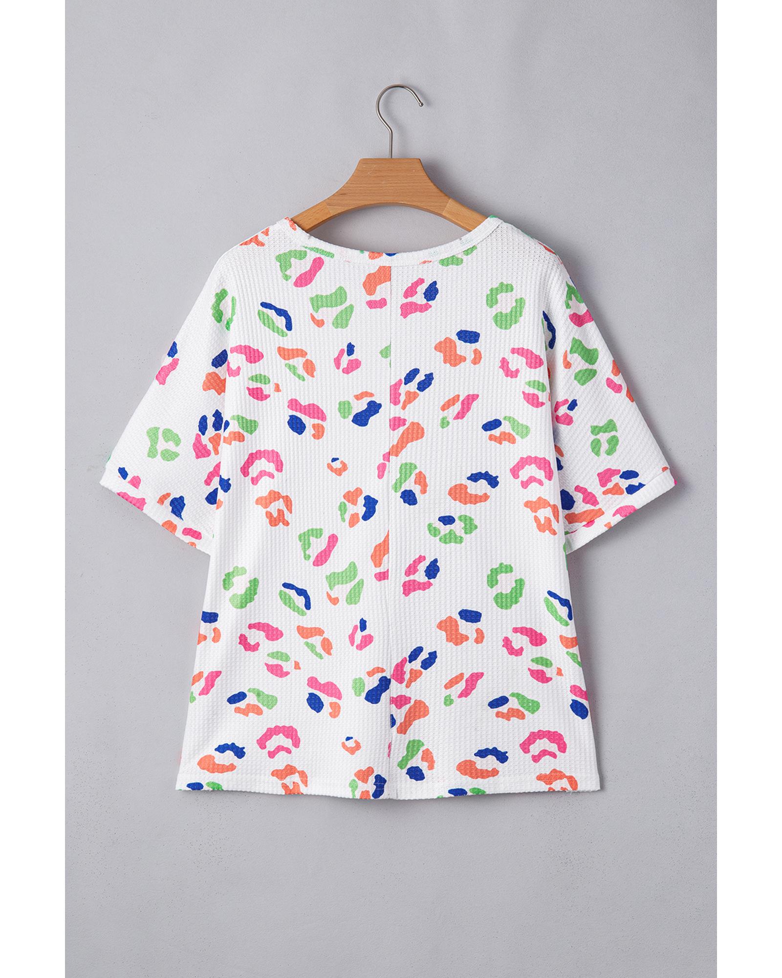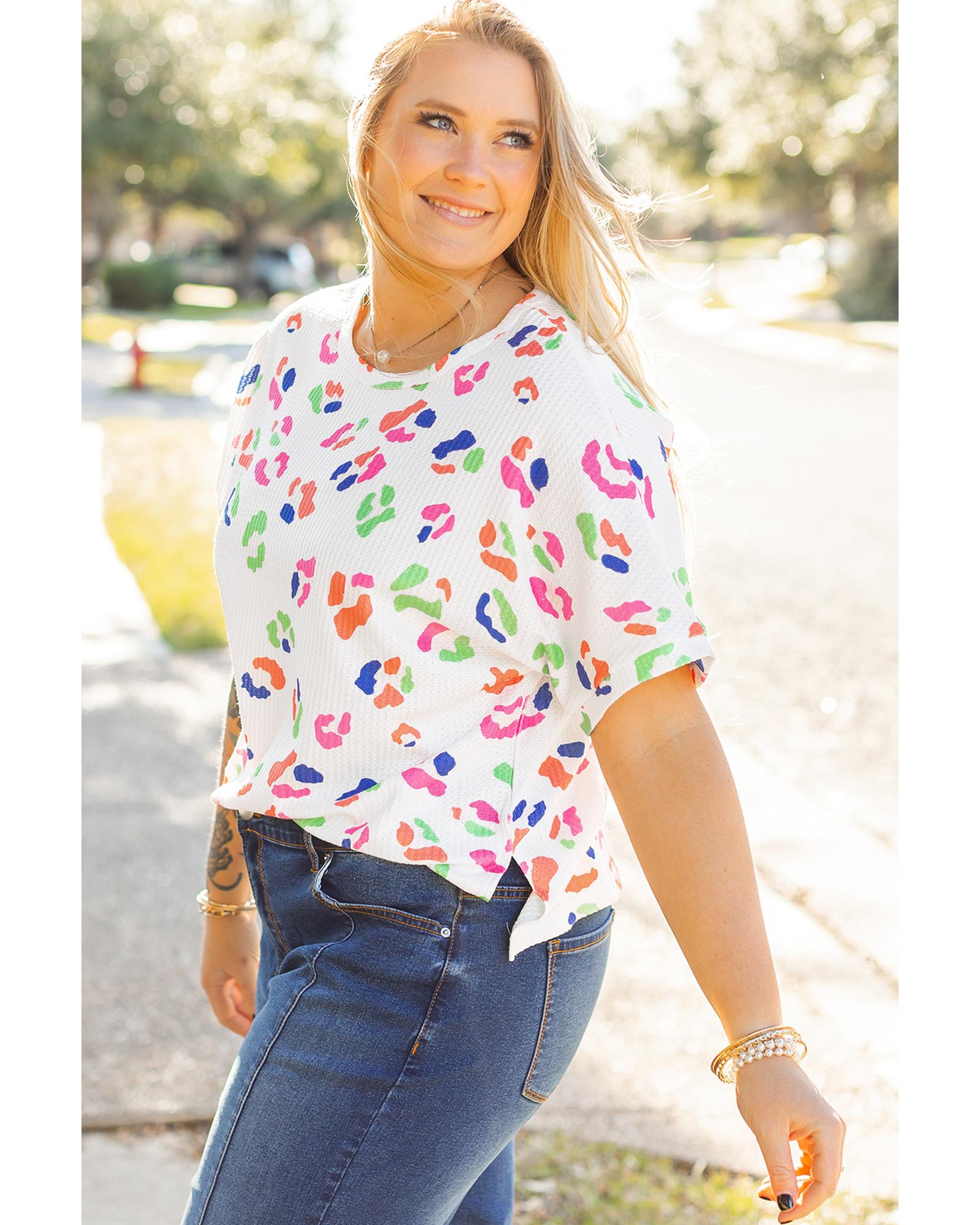 White Multicolor Leopard Print Textured Plus Size T Shirt – 1X
