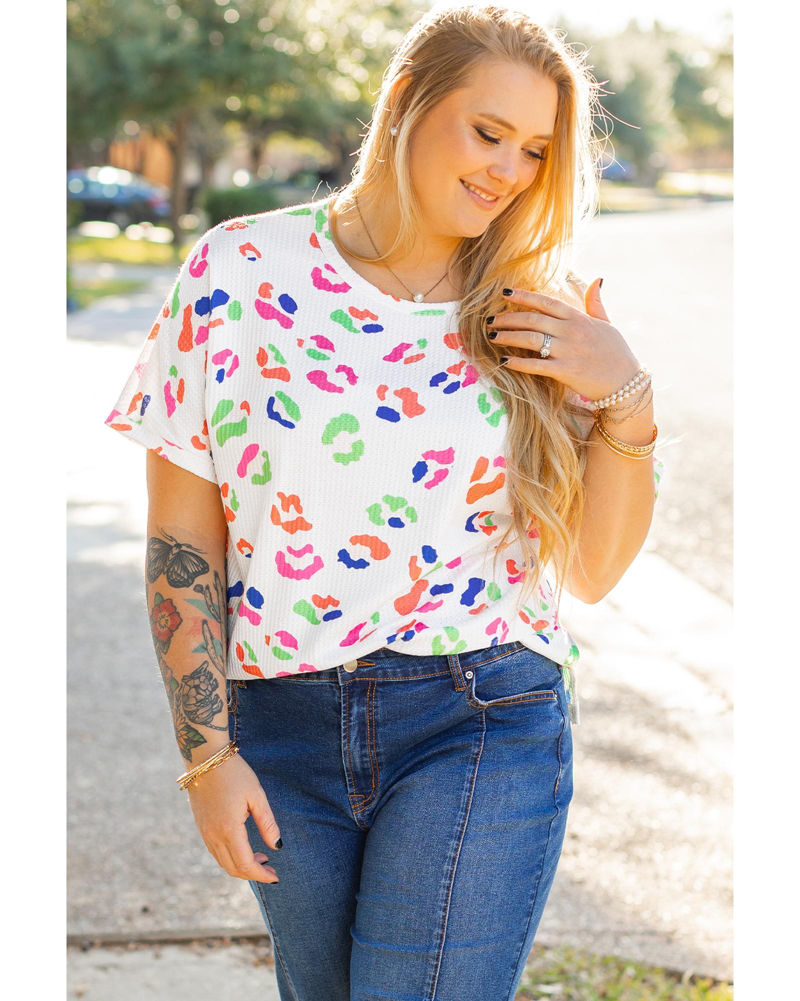 White Multicolor Leopard Print Textured Plus Size T Shirt – 3X