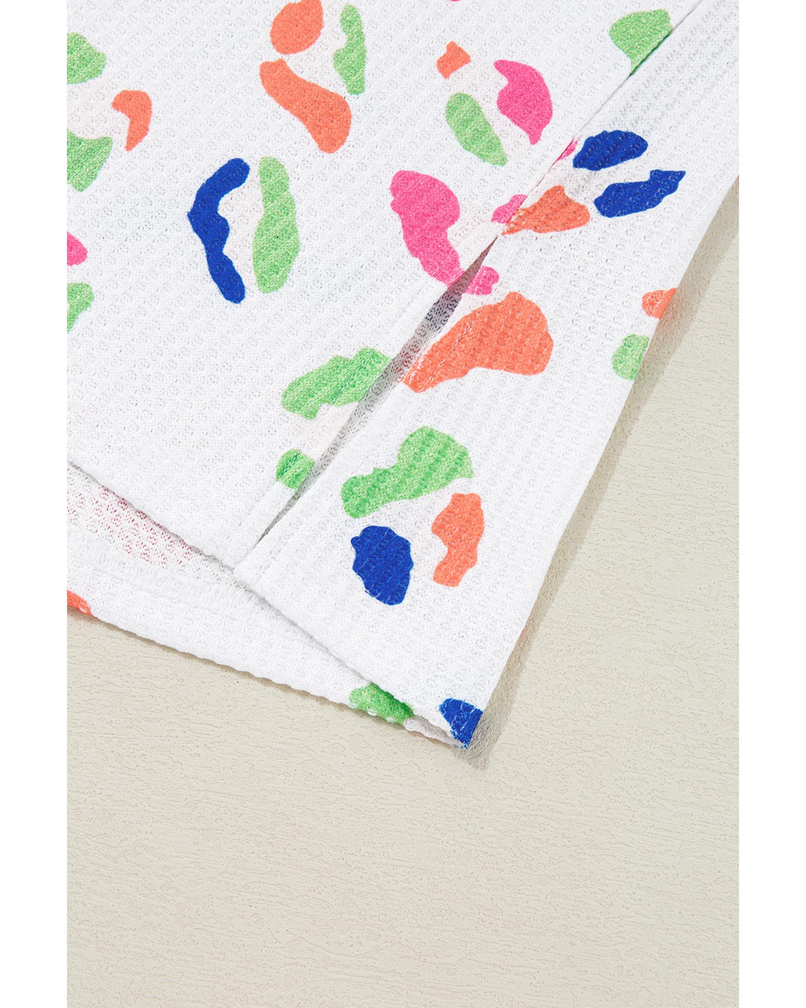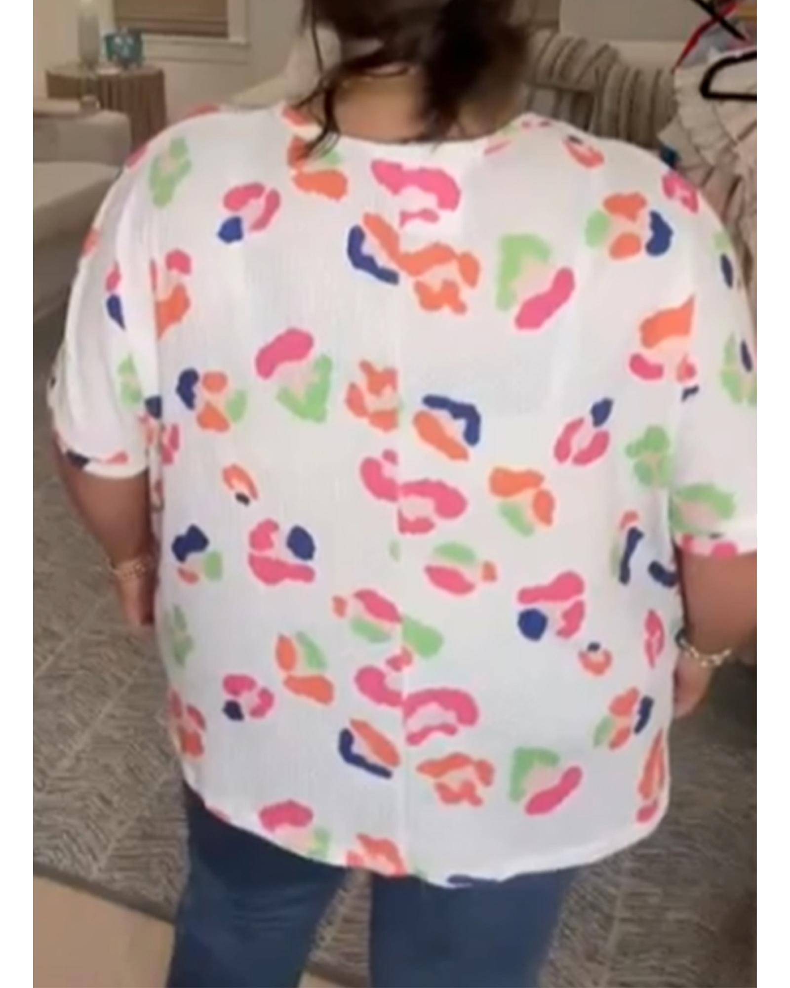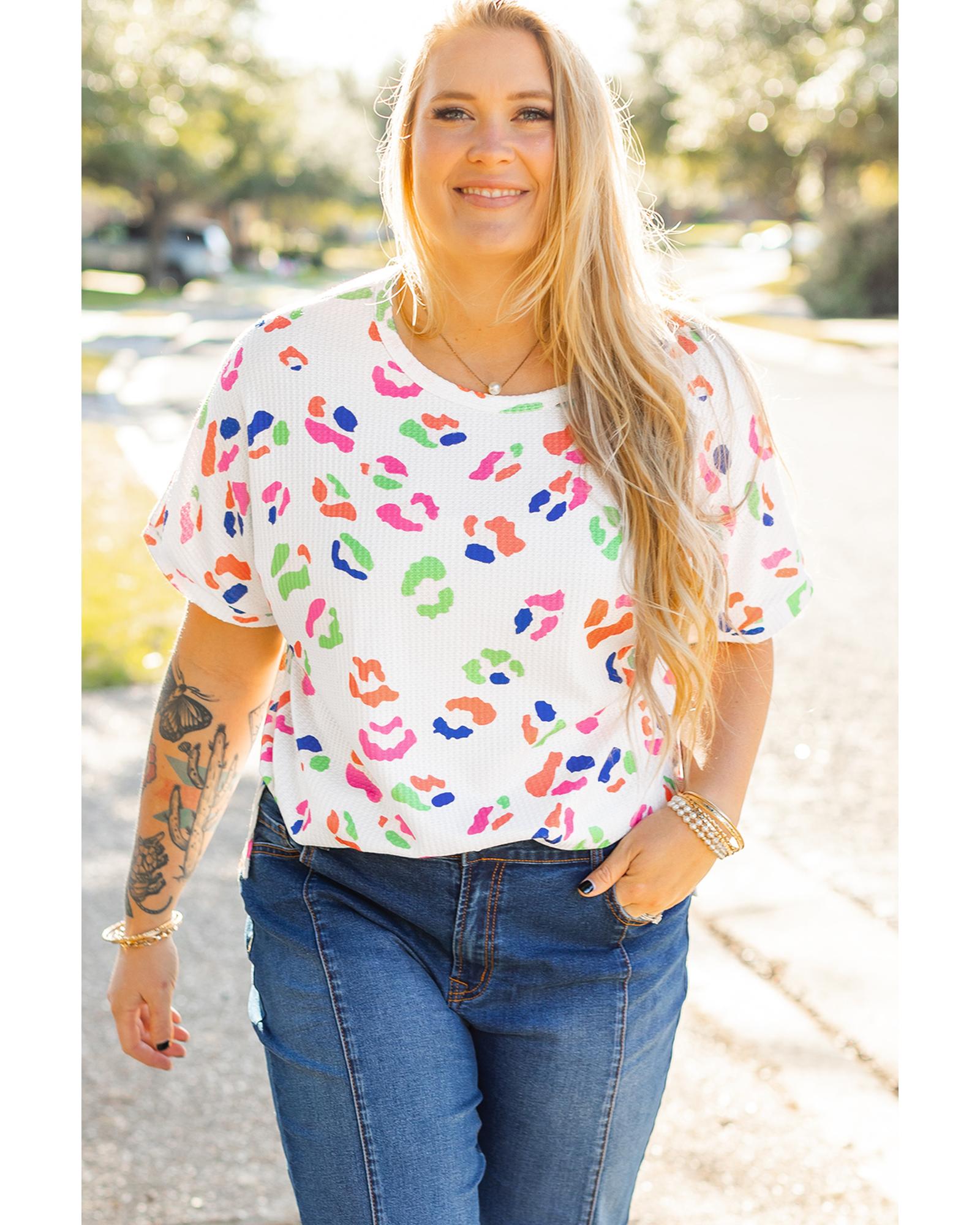 White Multicolor Leopard Print Textured Plus Size T Shirt – 4X