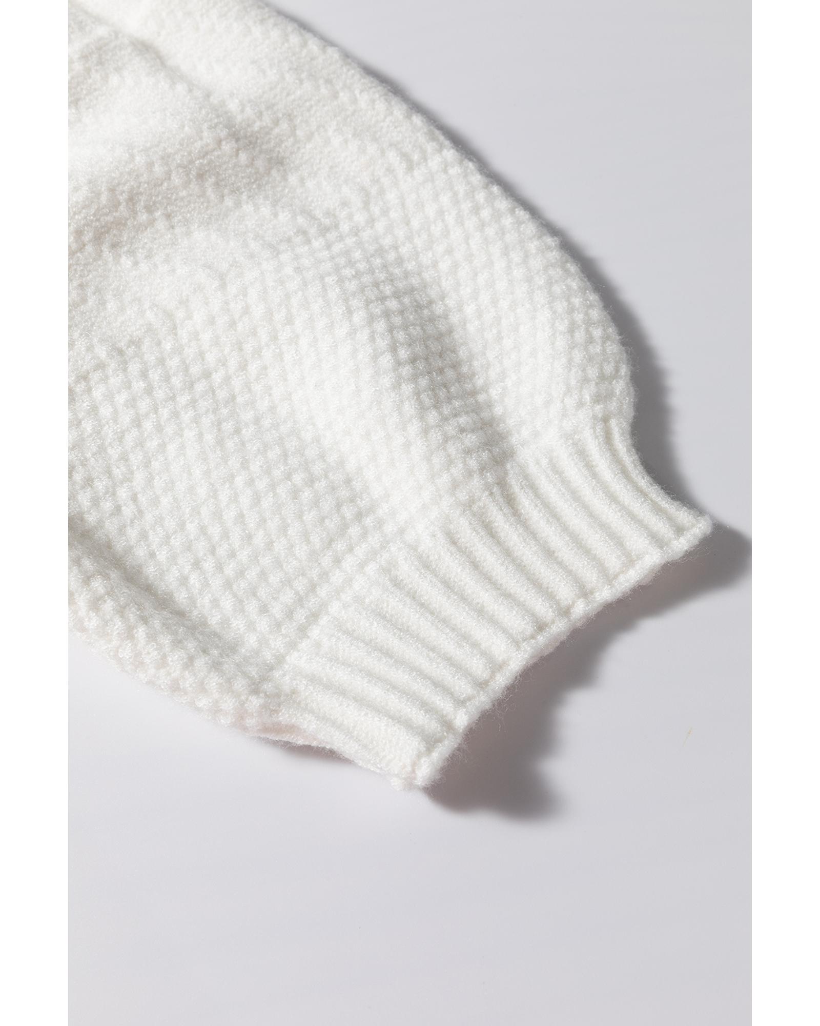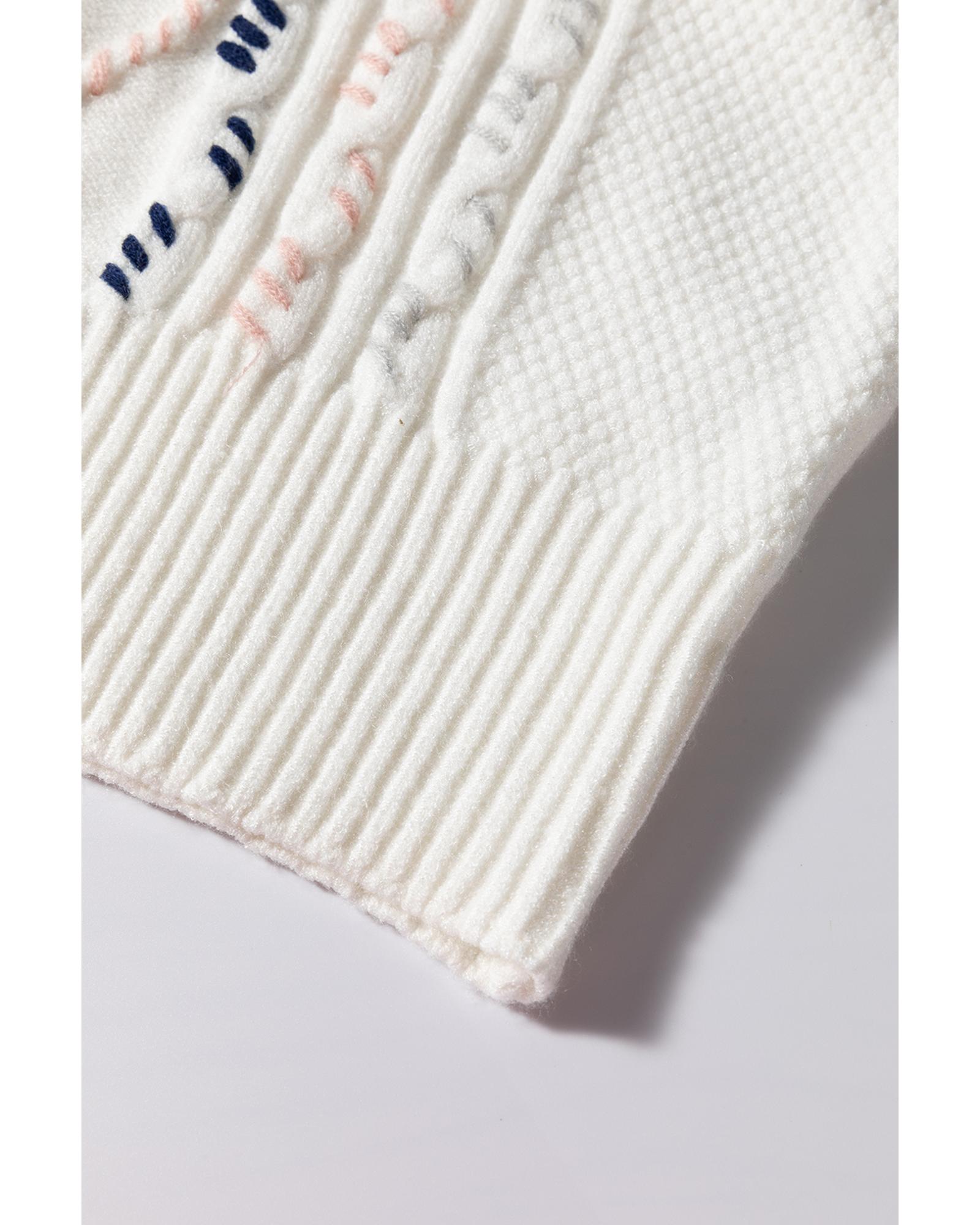 White Multicolor Stitch Detail Cable Knit Short Sleeve Sweater – XL