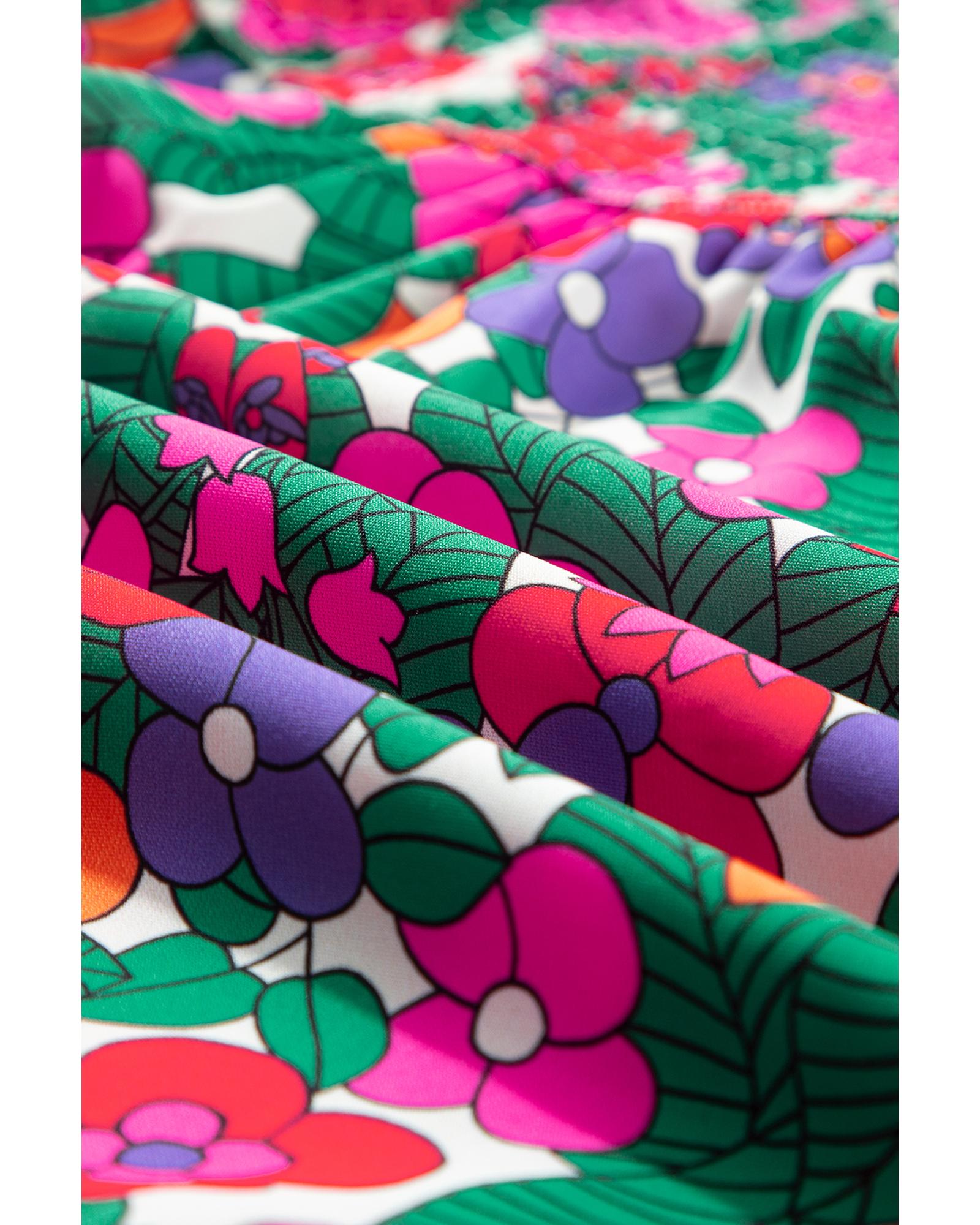 White Plus Size Floral Frilled Square Neck Shirred Long Sleeve Dress – 2X