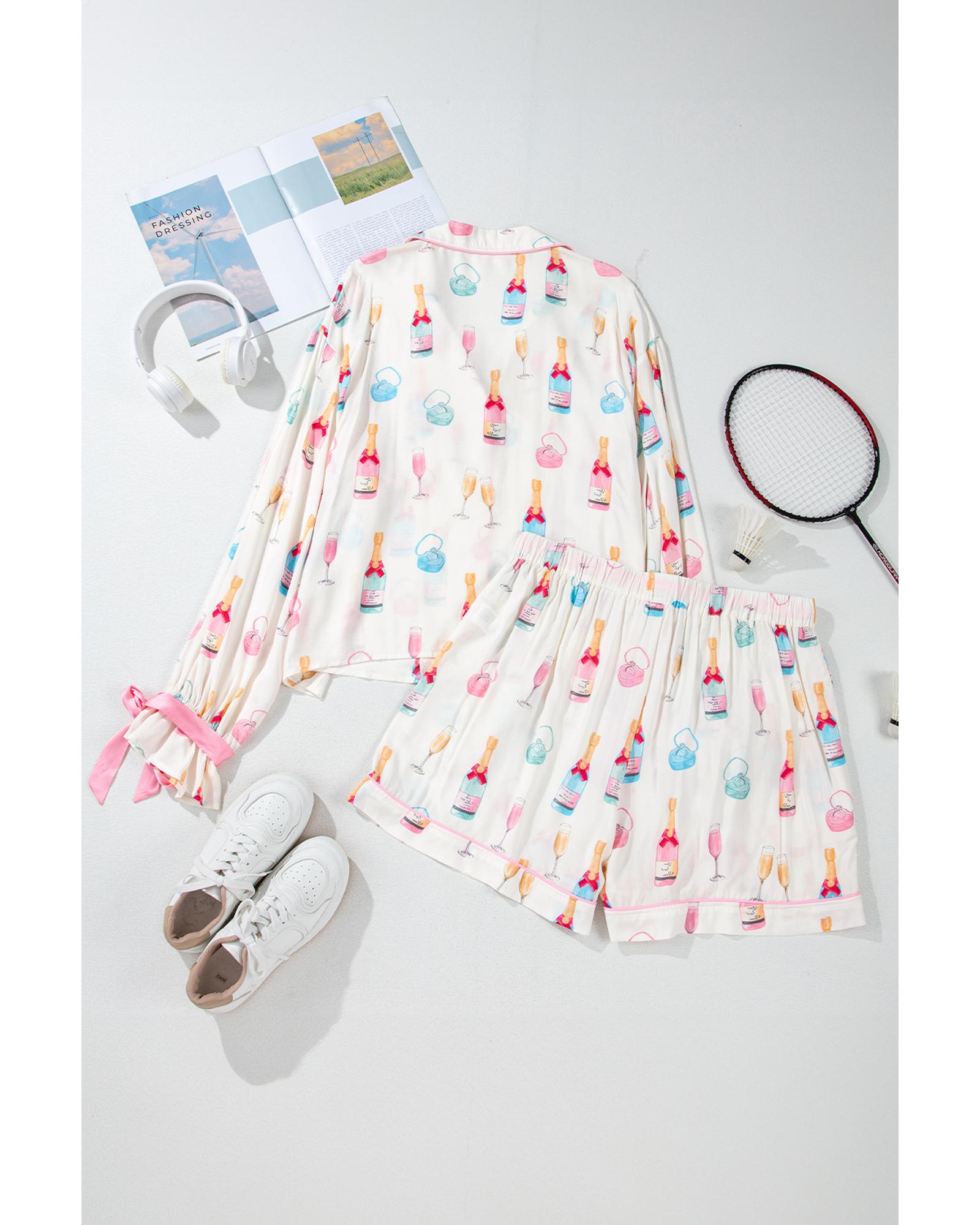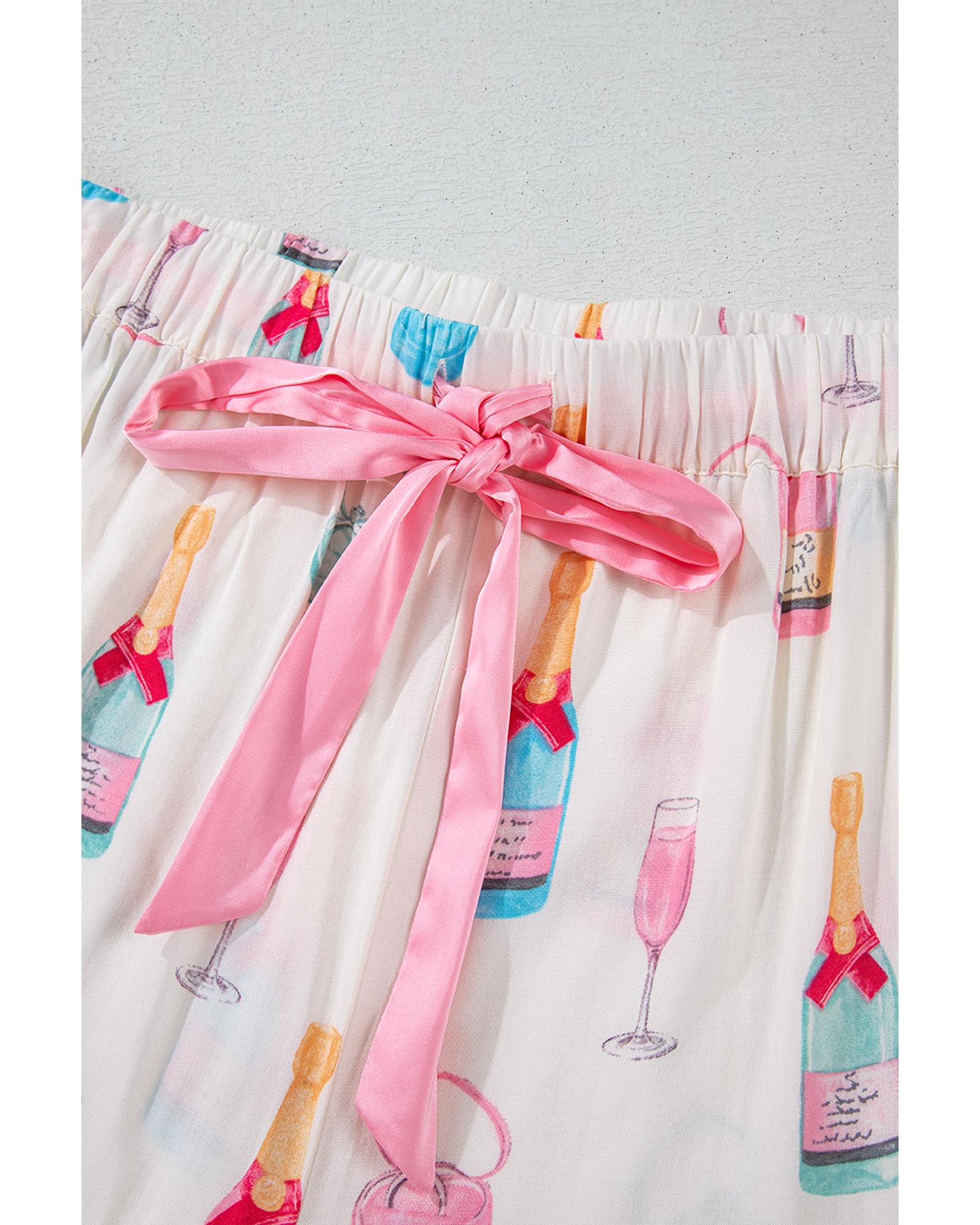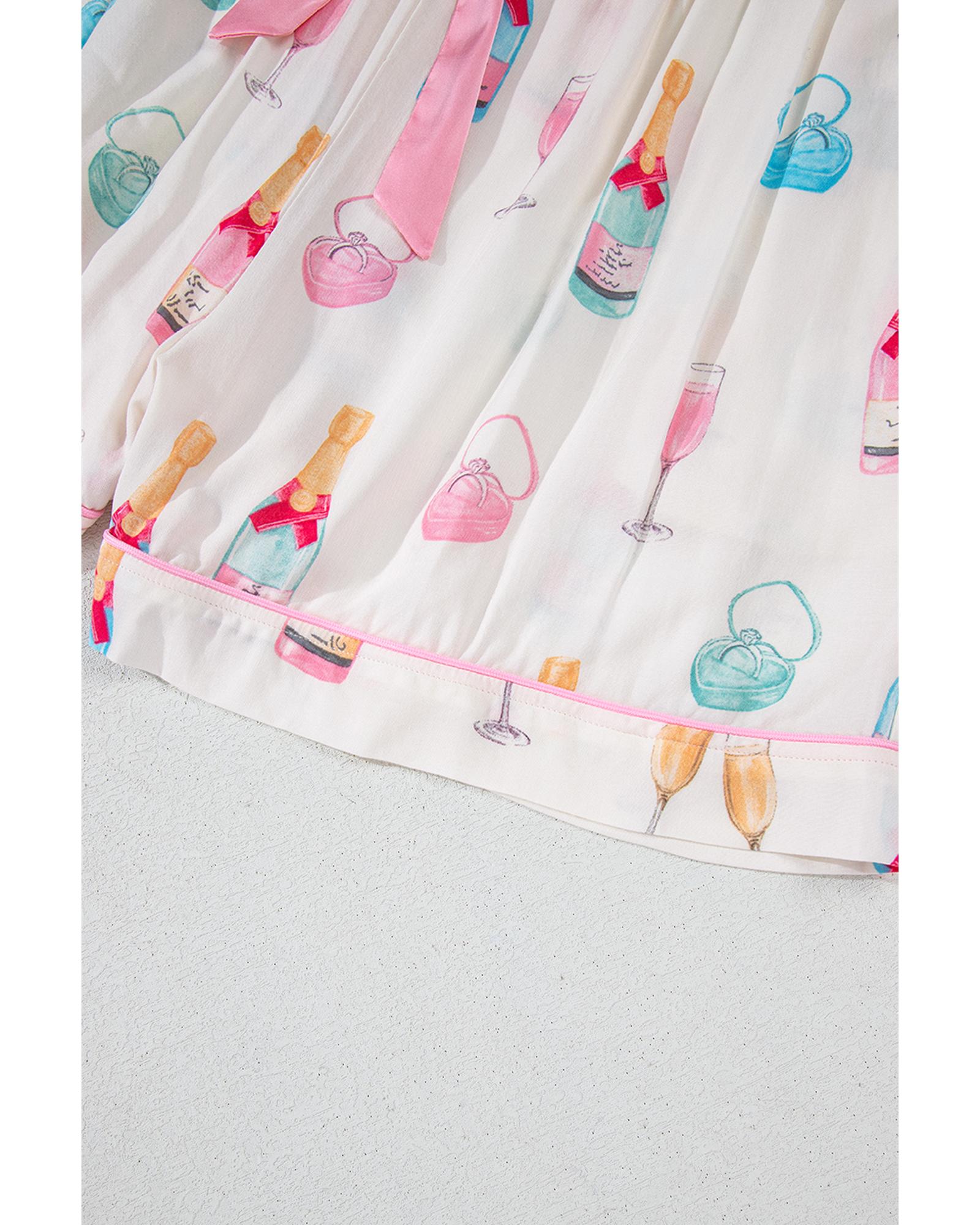 White Plus Size Wine Glass Print Bow Knot Pajama Set – 4X