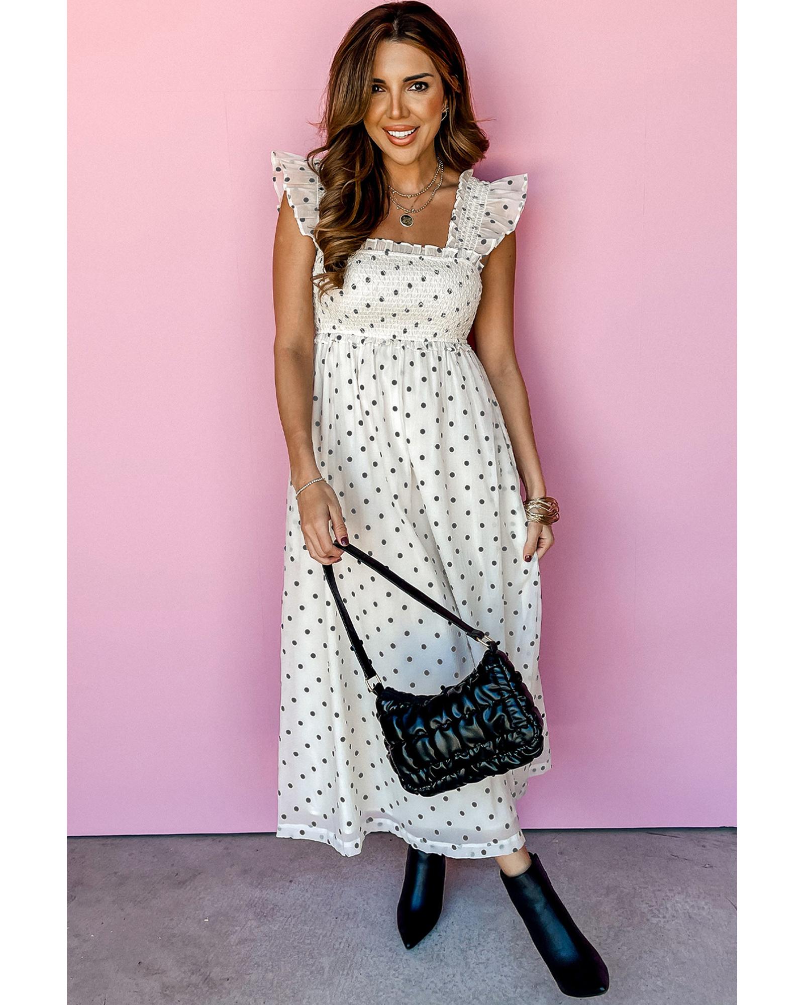 - White polka dot maxi dress