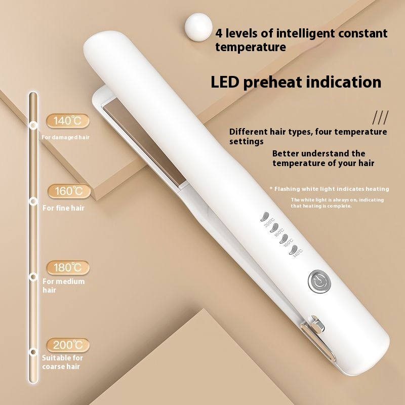 White Portable Wireless Hair Straightener with Adjustable Temperature – USB Type-C Charging, Lightweight Design