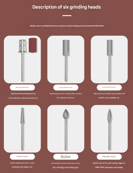 - Versatile & Easy to Use: Includes a set of 6 professional, interchangeable drill bits and sanding bands to handle all your nail care needs. The simple twist-lock mechanism allows for quick and secure bit changes. A forward and reverse switch accommodates both right-handed and left-handed users.