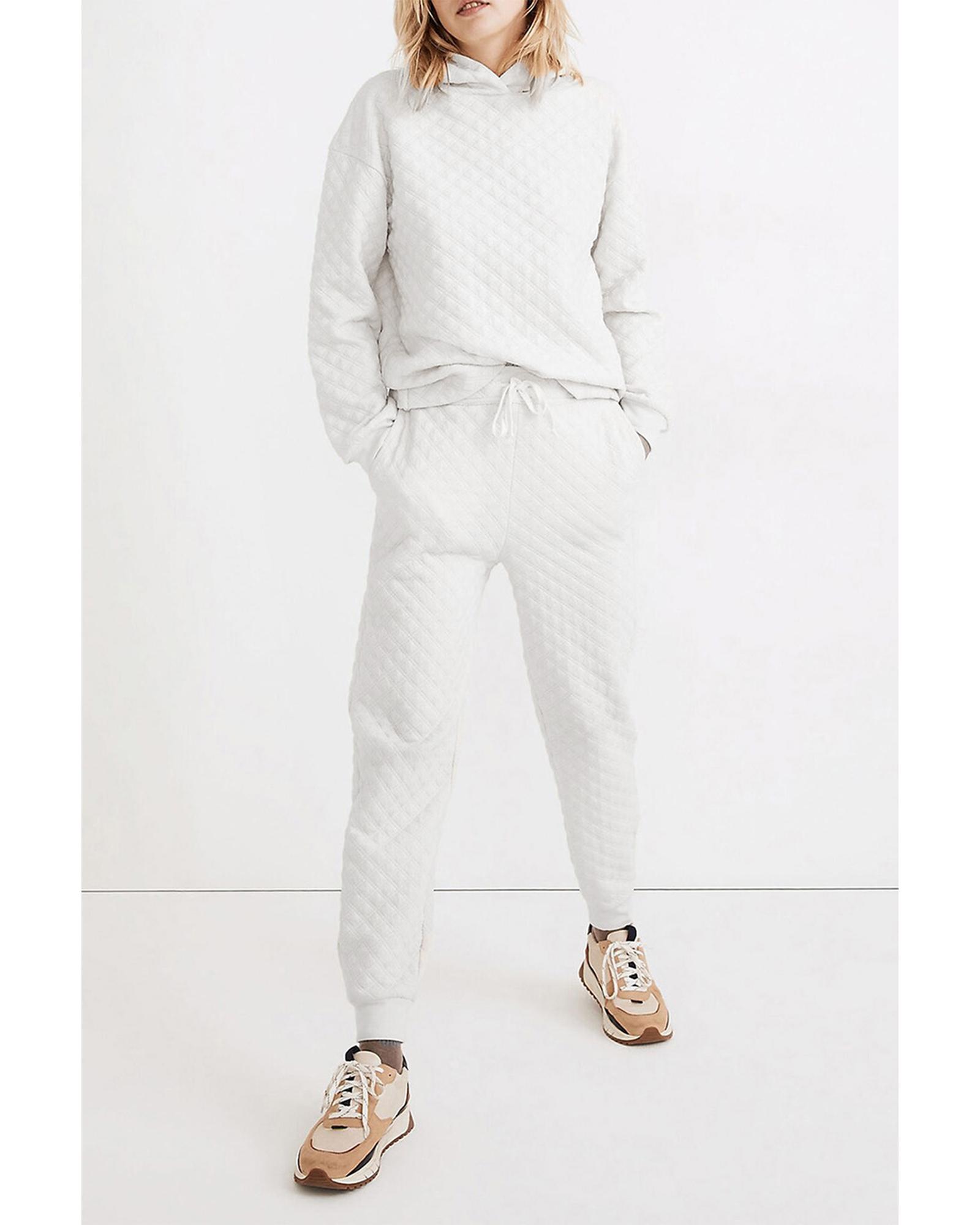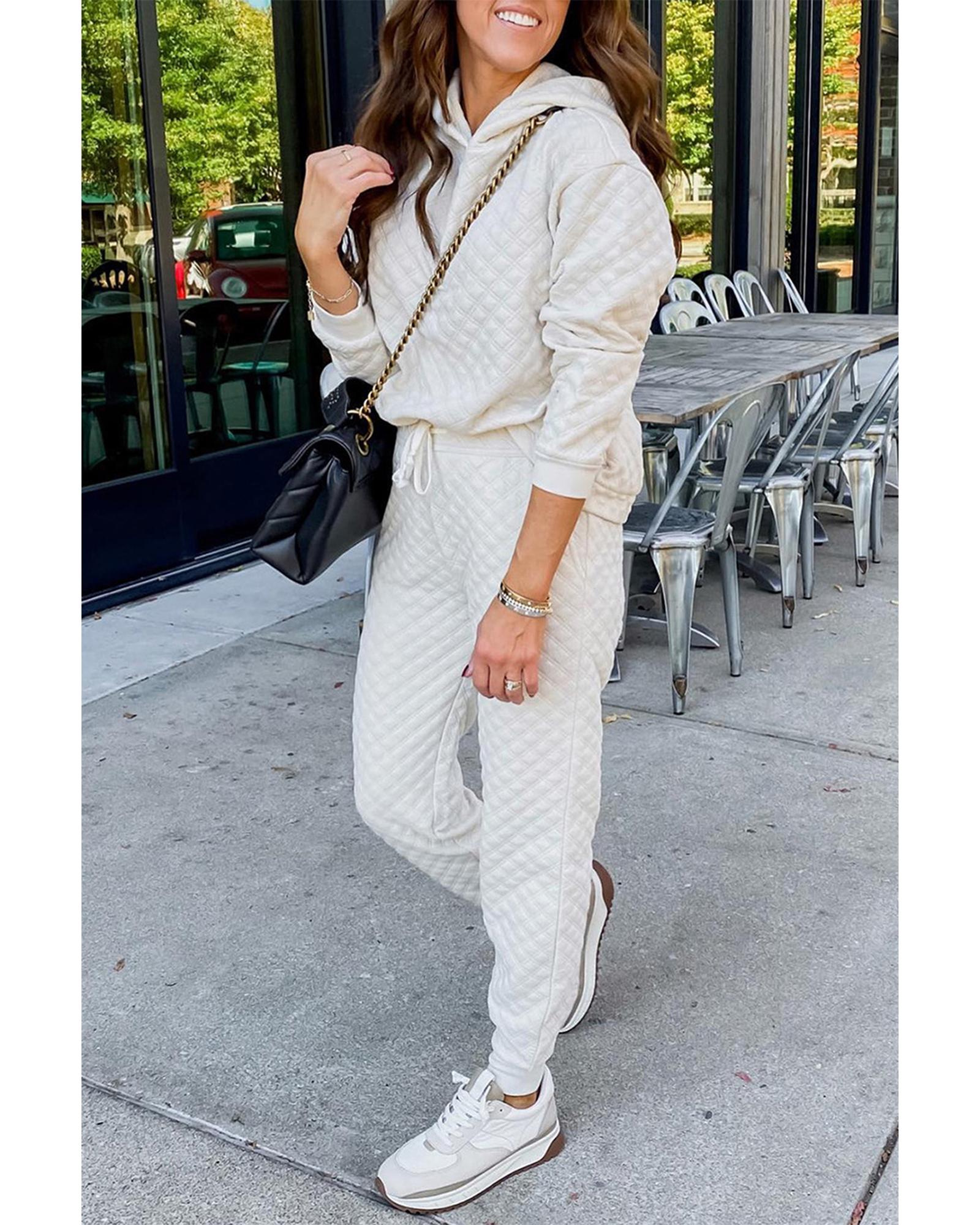 - White Quilted Hoodie and Sweatpants Two Piece Set