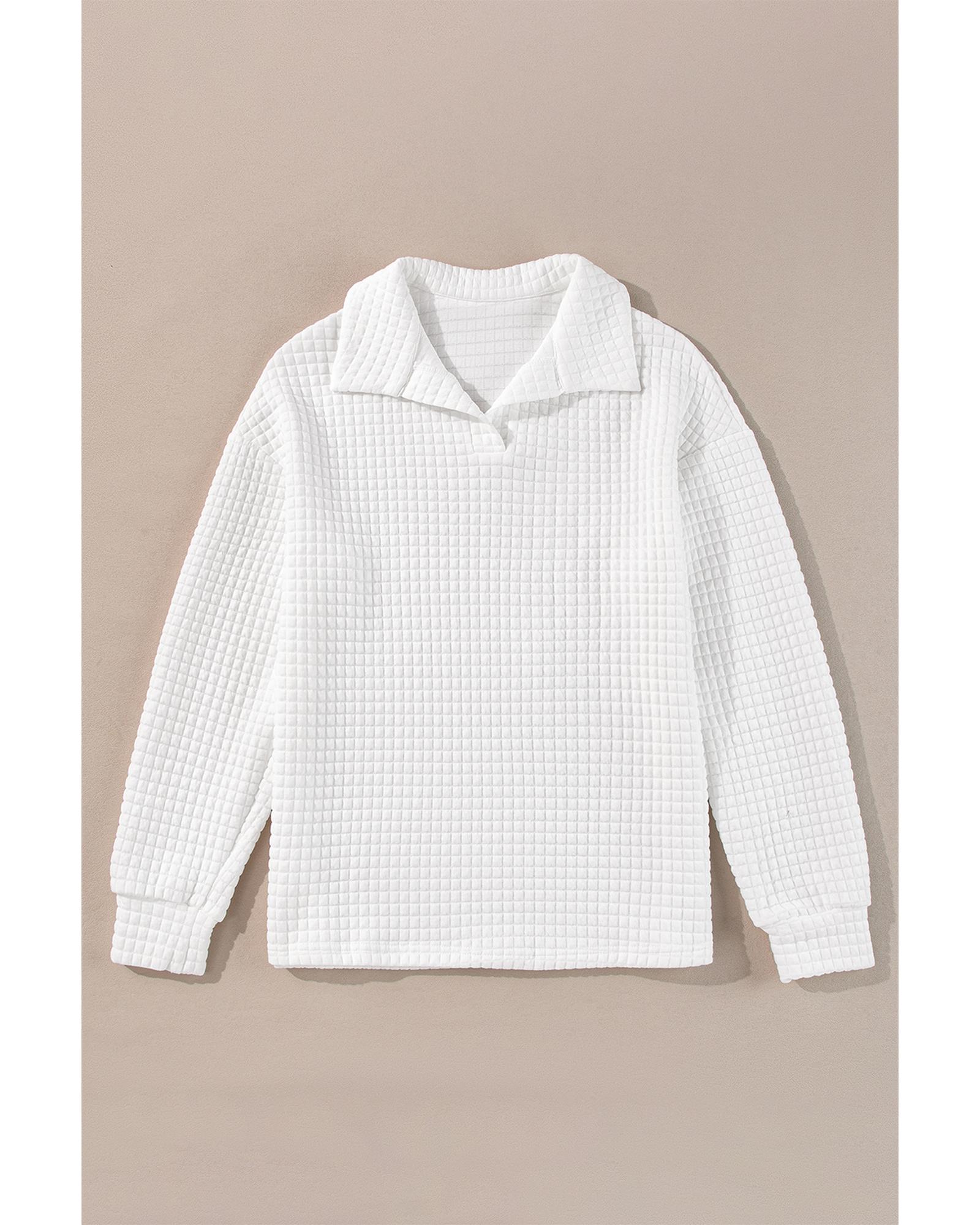 White Quilted Texture Sporty Collared Long Sleeve Top – L