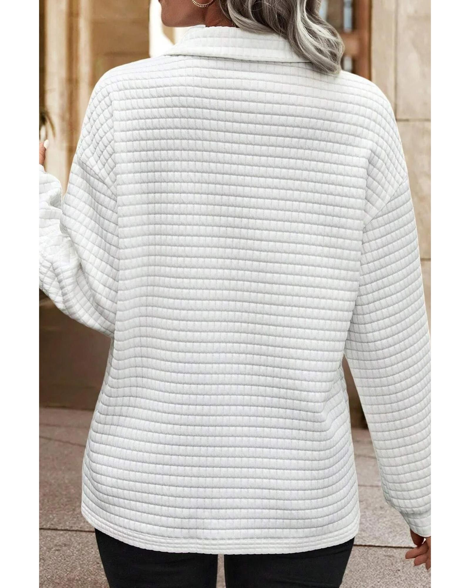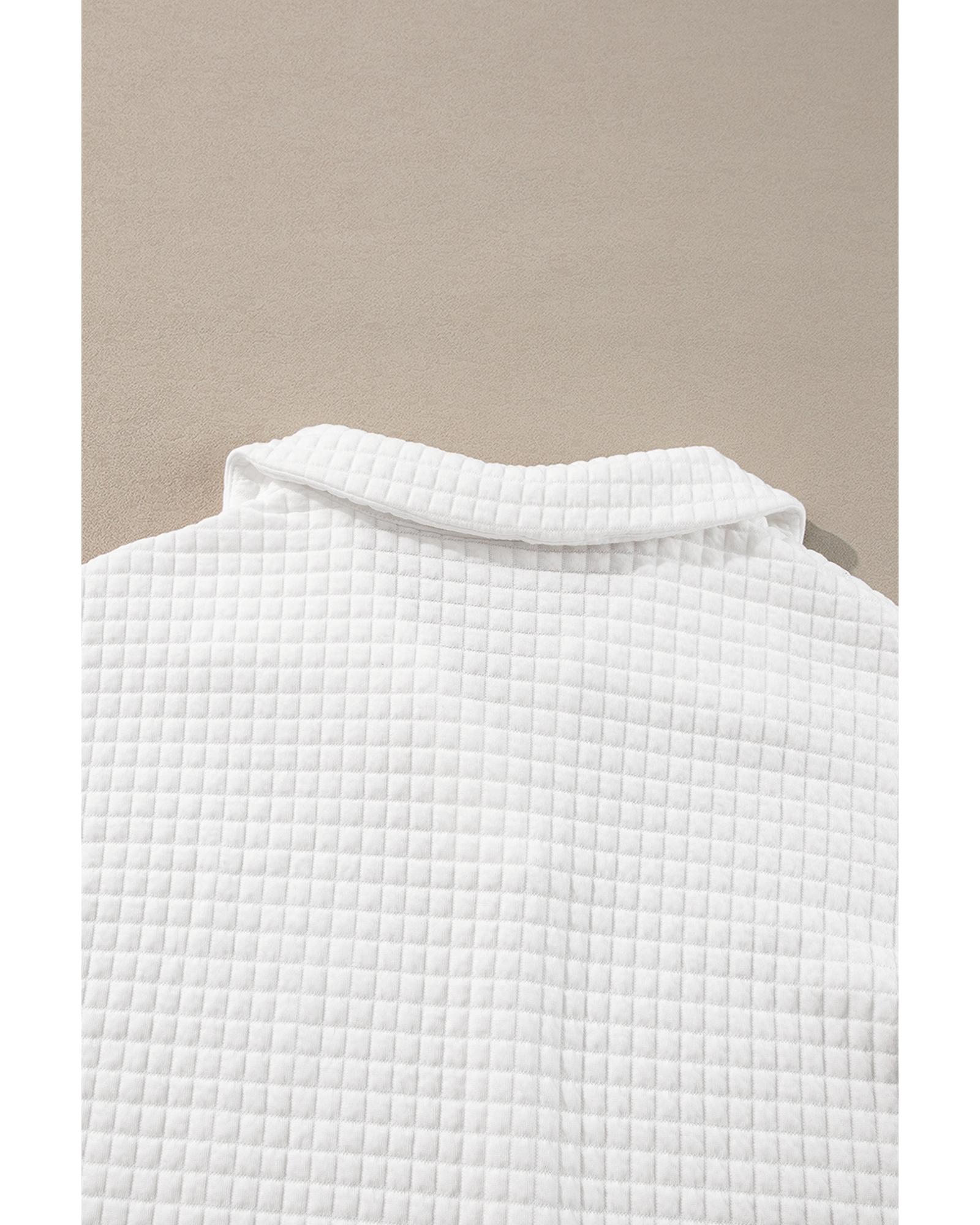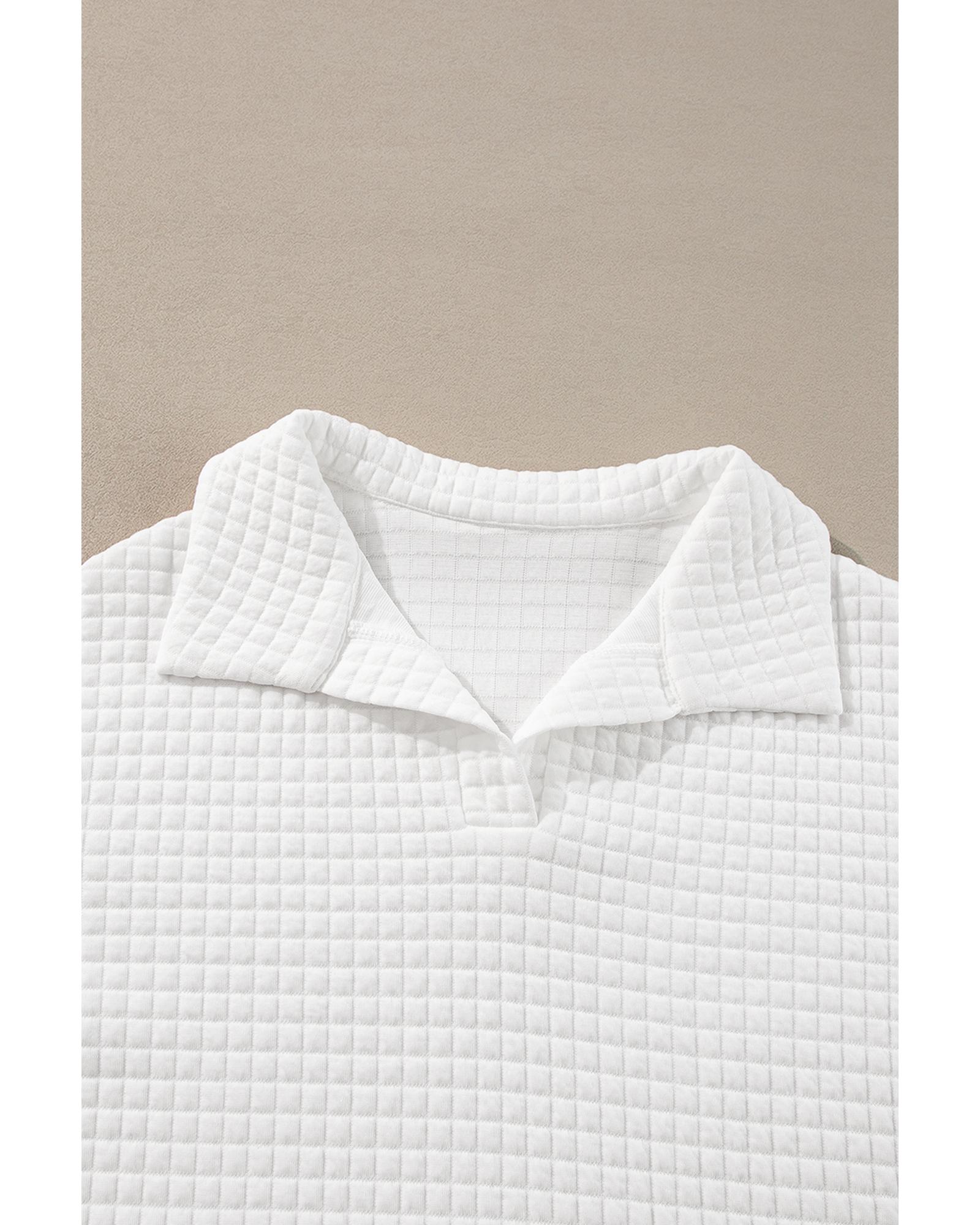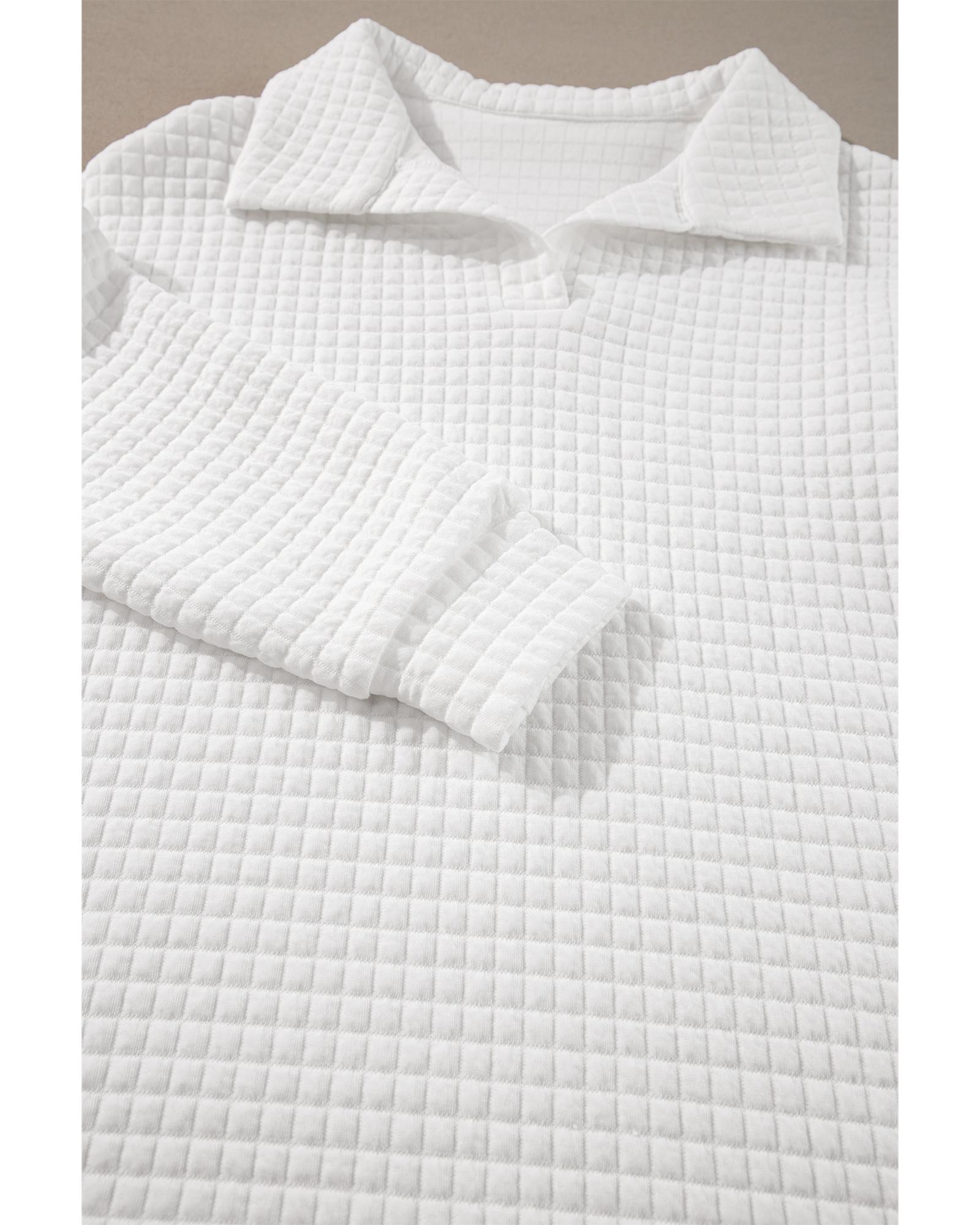 White Quilted Texture Sporty Collared Long Sleeve Top – M