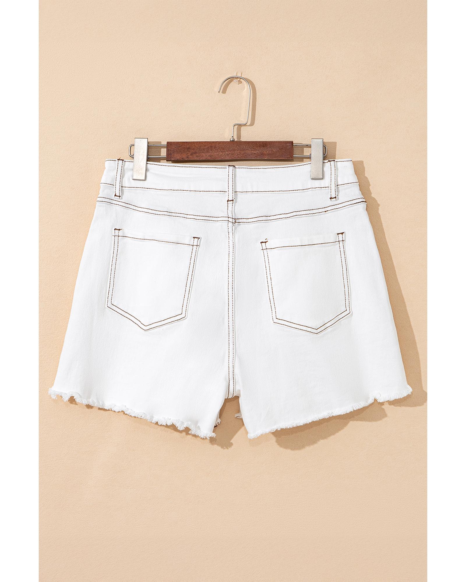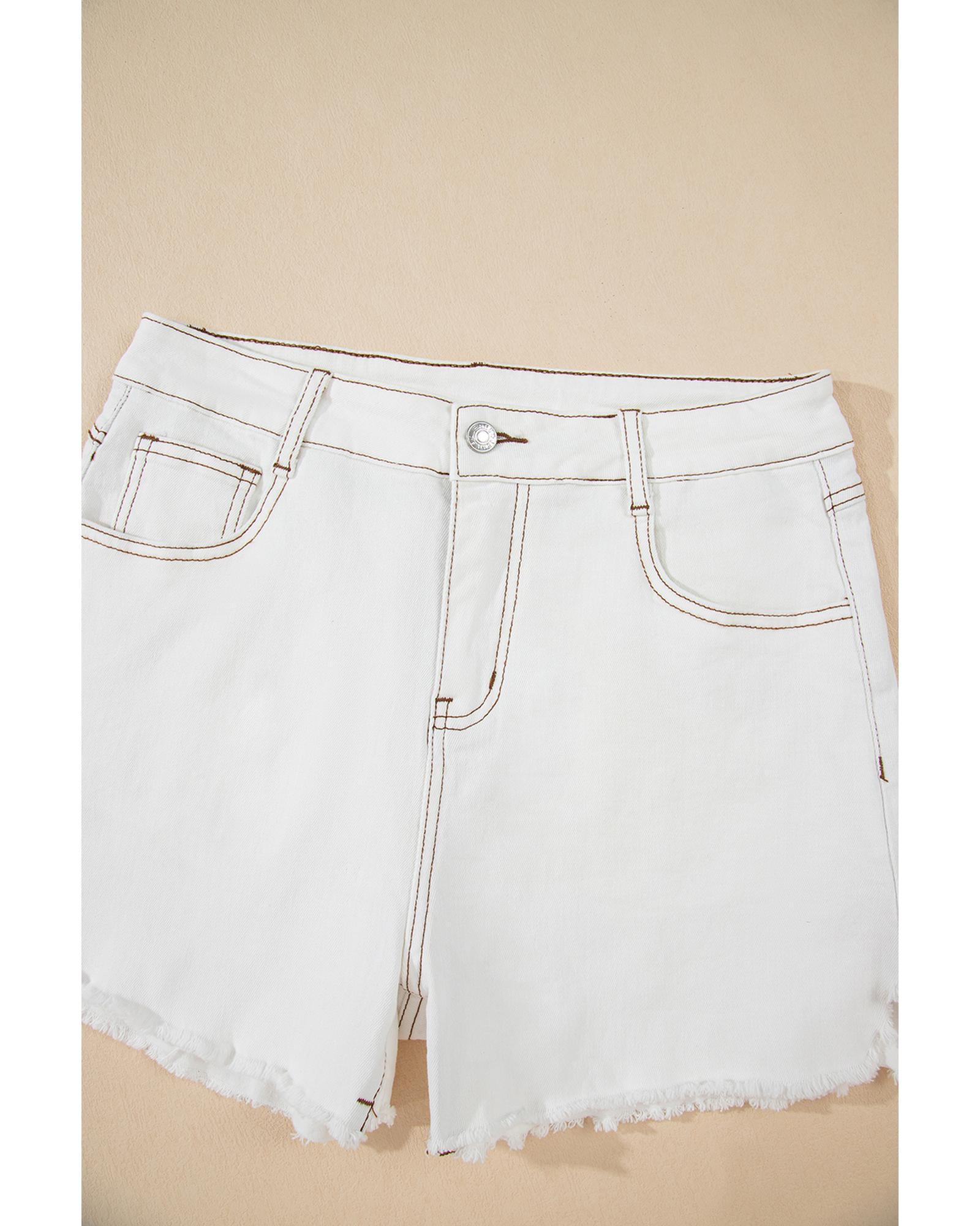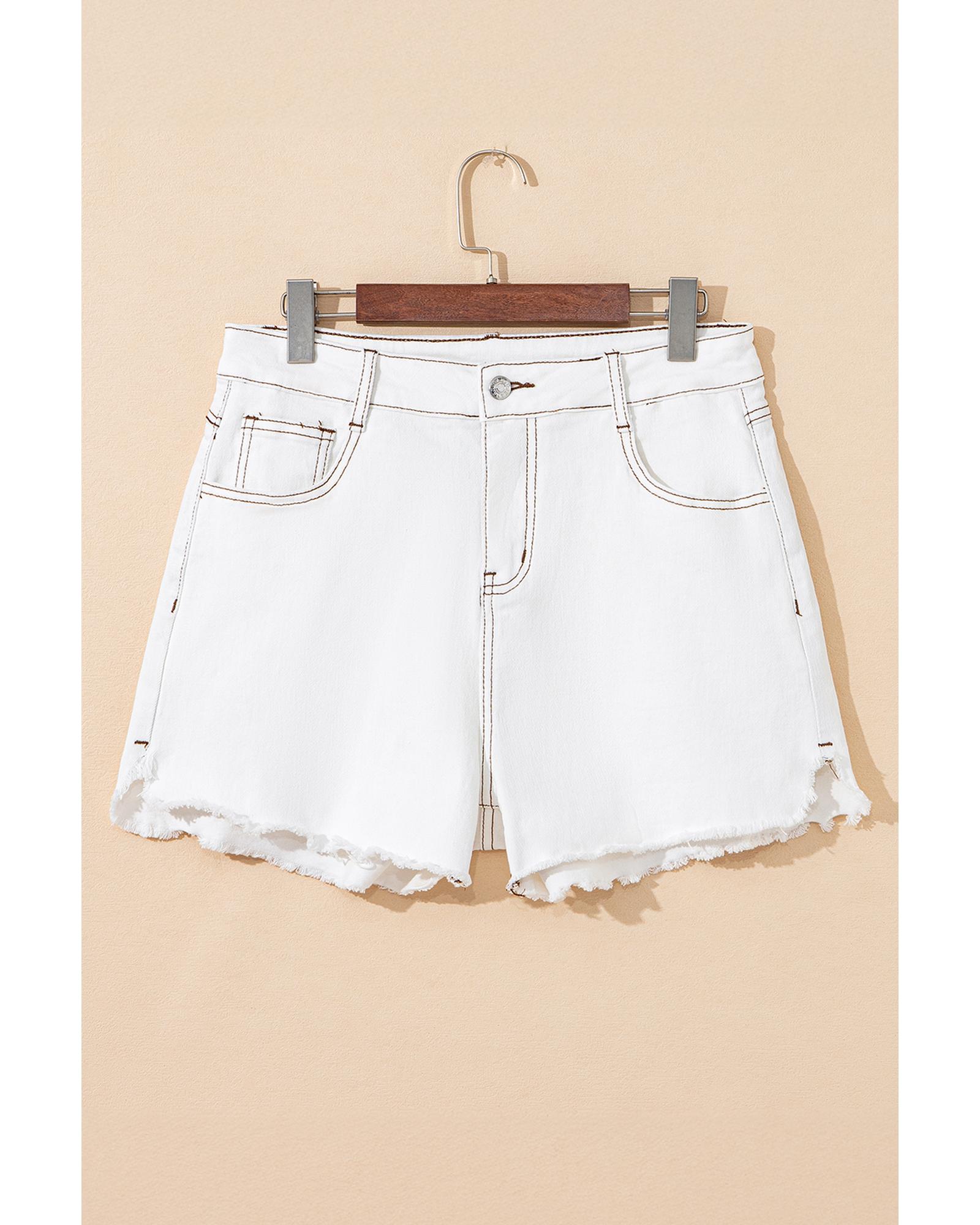 White Raw Hem High Waist Denim Shorts – 8 US