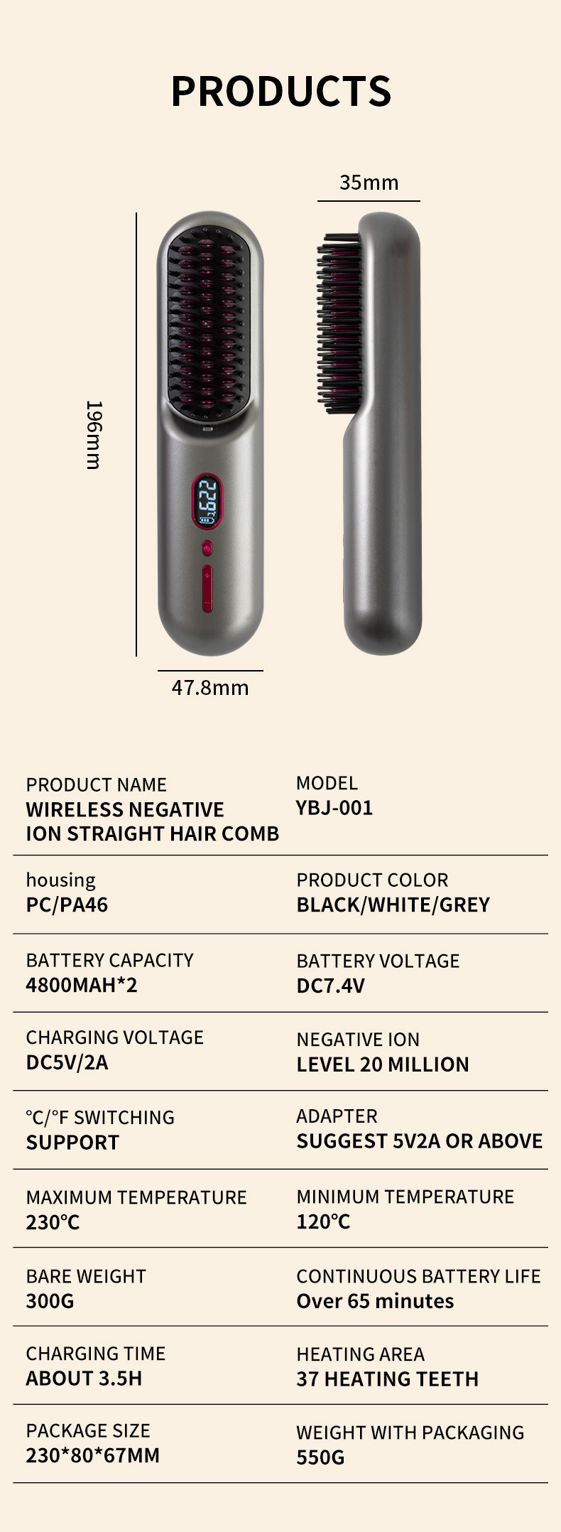 Rechargeable Portable Ionic Hair Straightening Comb – a lightweight, wireless hair styling solution for smooth, frizz-free hair anytime, anywhere.