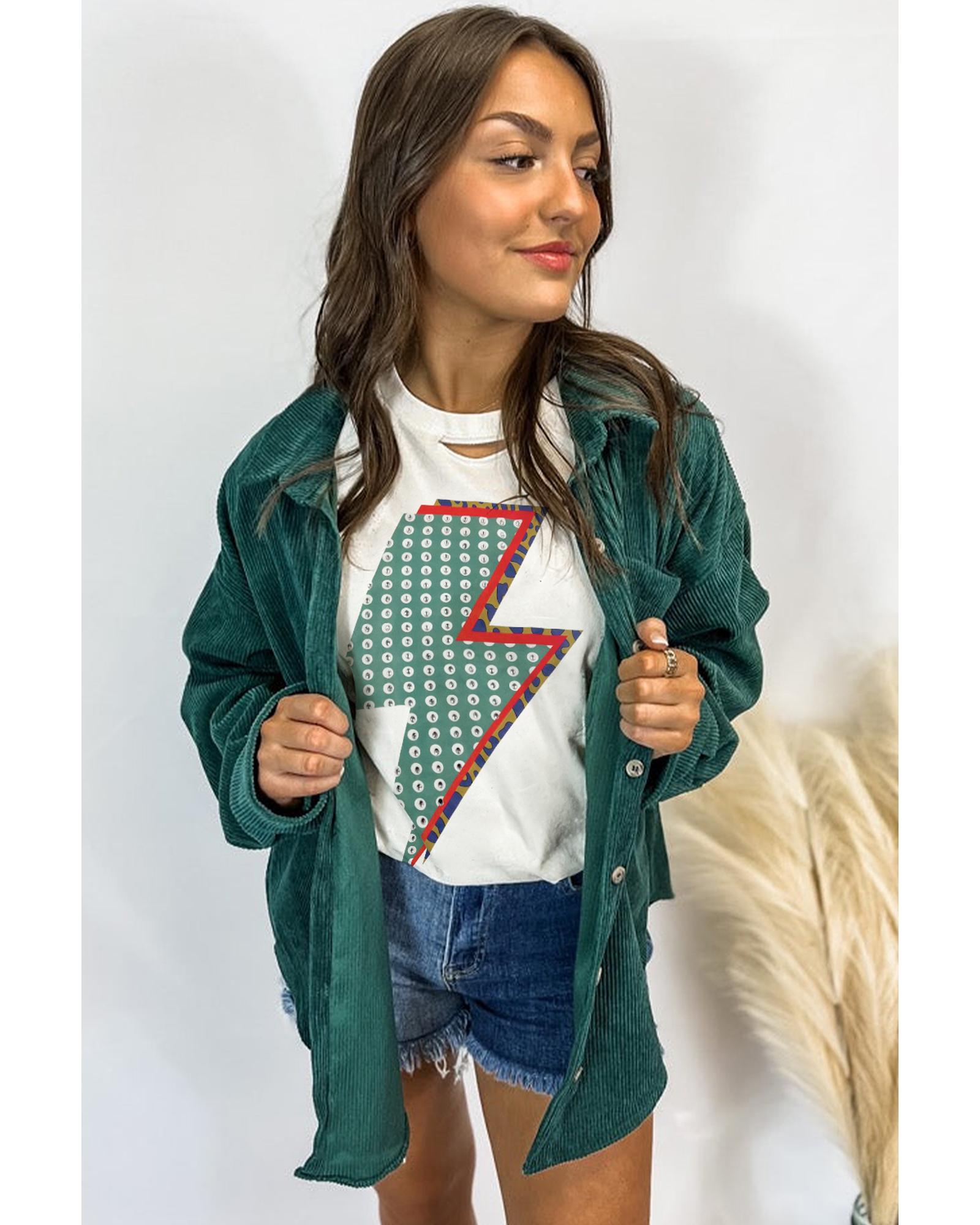 White Rhinestone Decor Bolt Graphic Ripped Western Tee – XL
