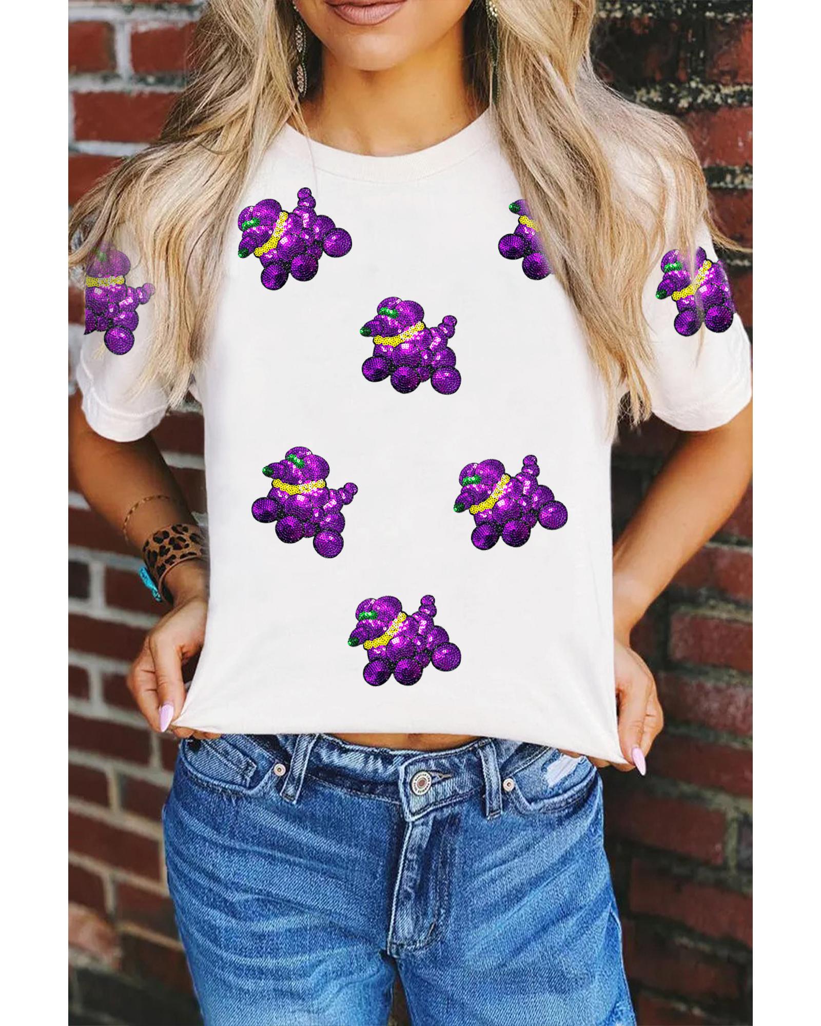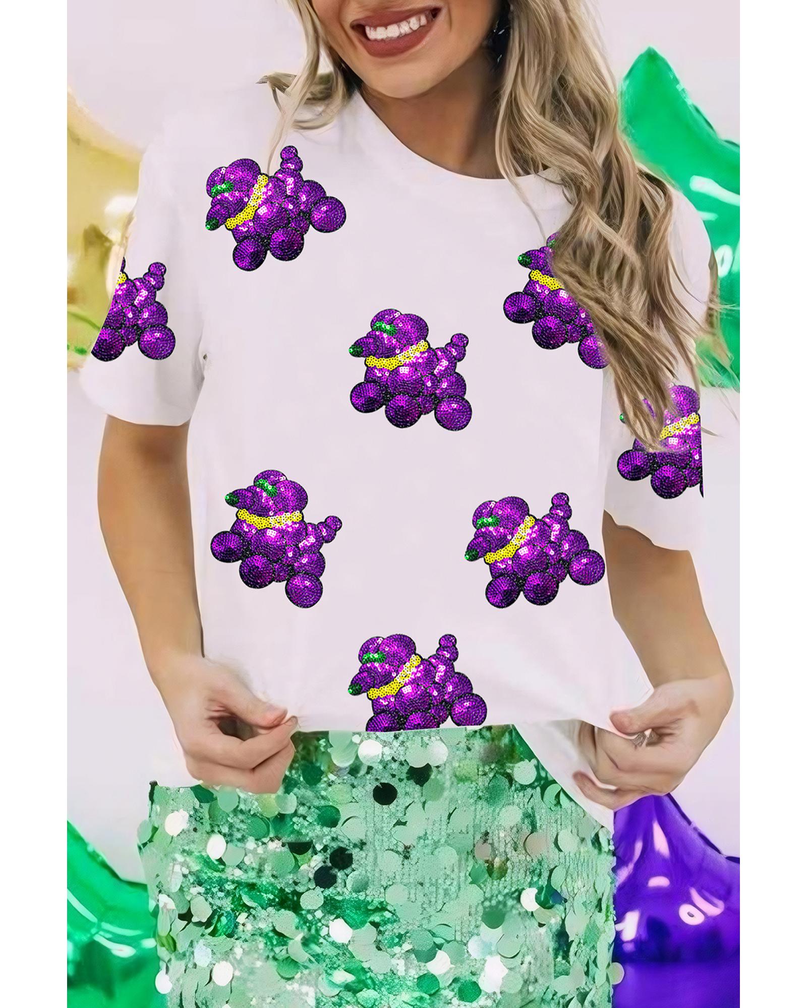 White Sequin Balloon Puppy Graphic Mardi Gras Tee – 2XL
