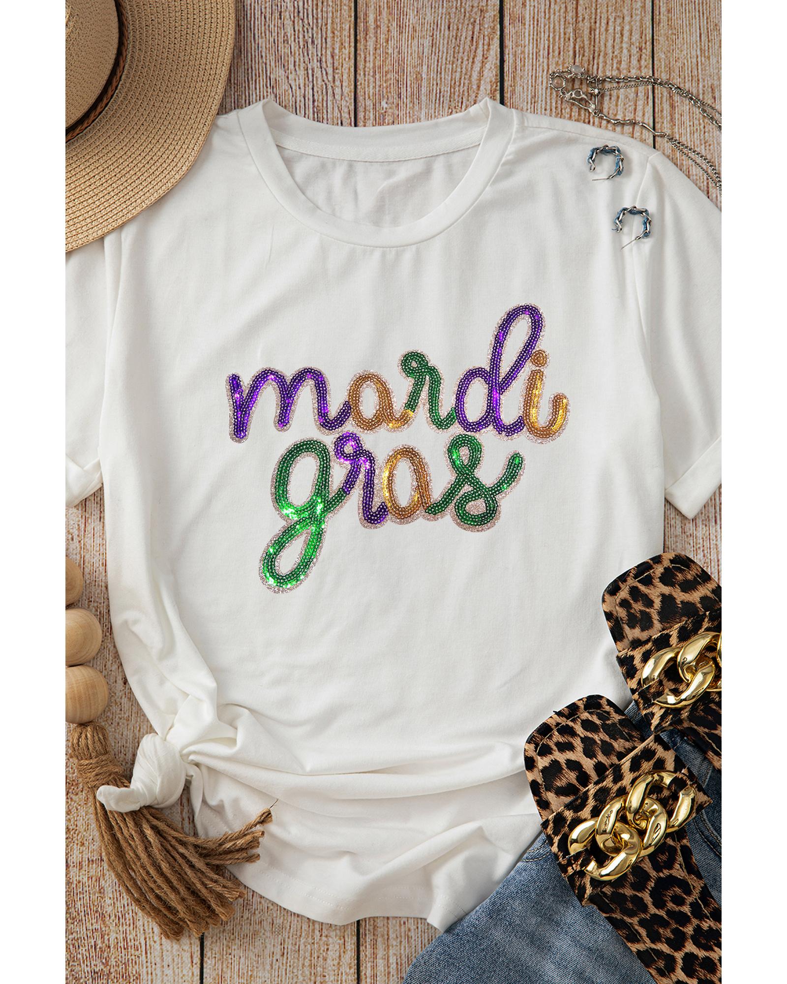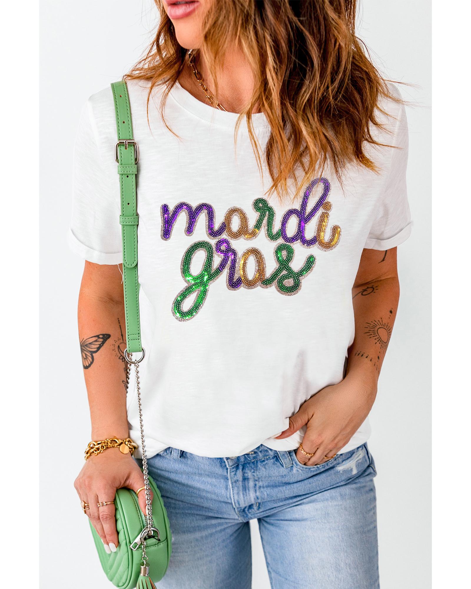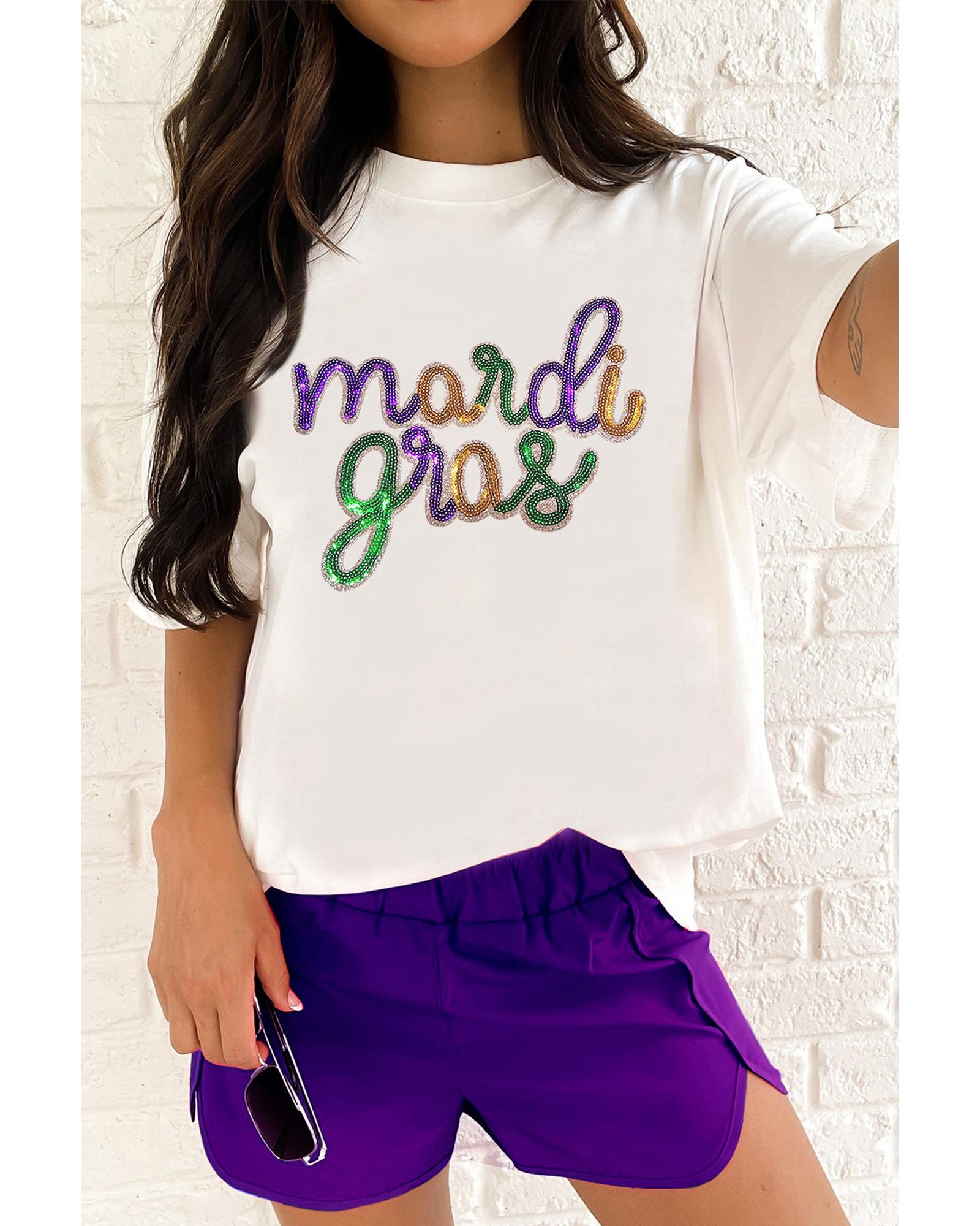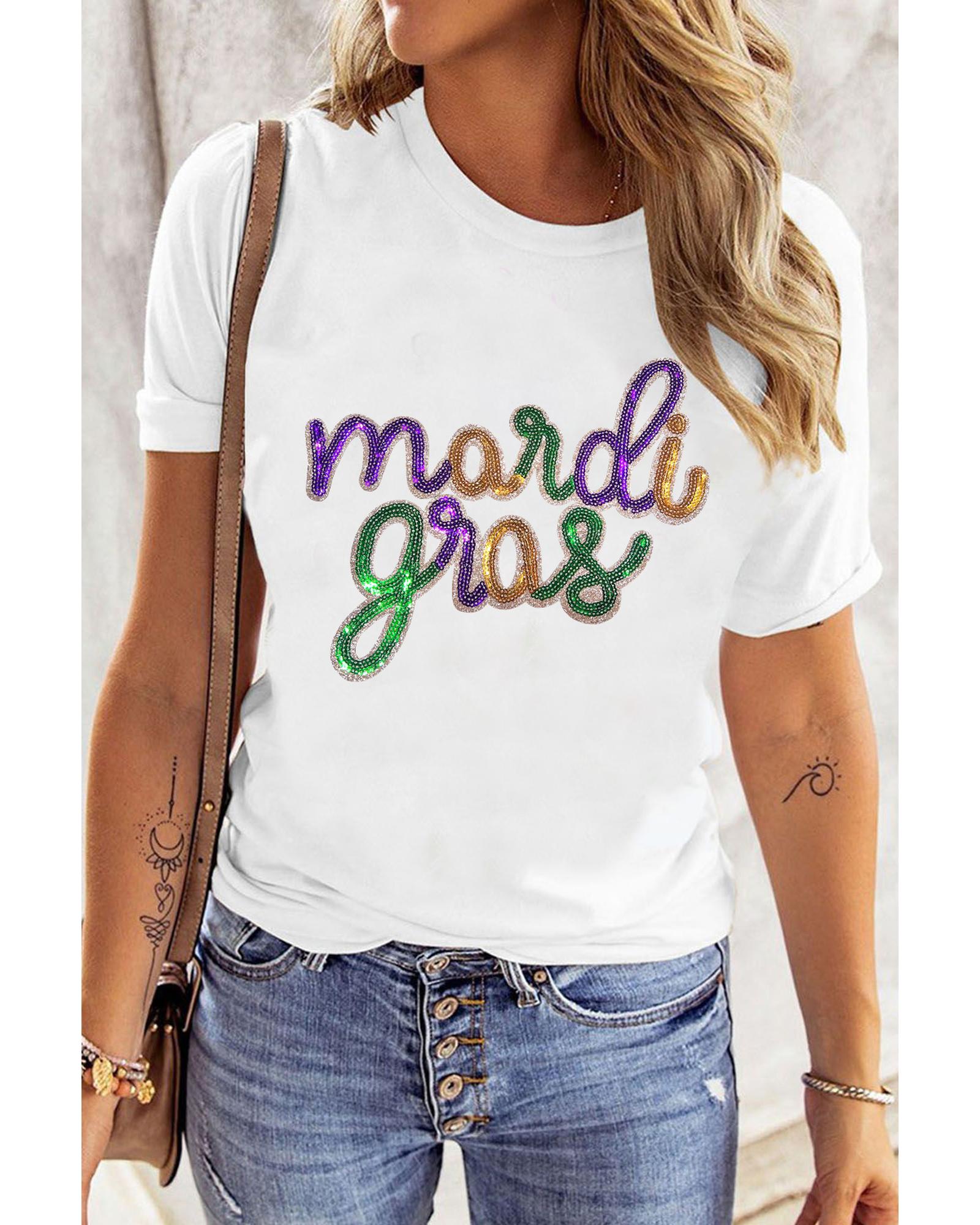 White Sequin mardi gras Graphic T Shirt – 3XL