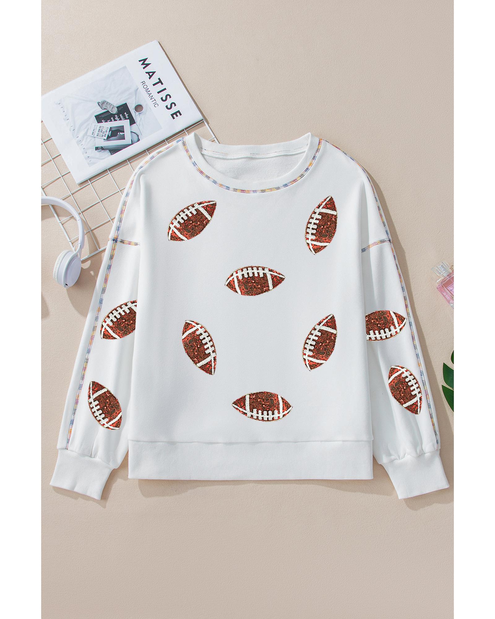White Sequin Rugby Football Pattern Exposed Seam Game Day Sweatshirt – 2XL