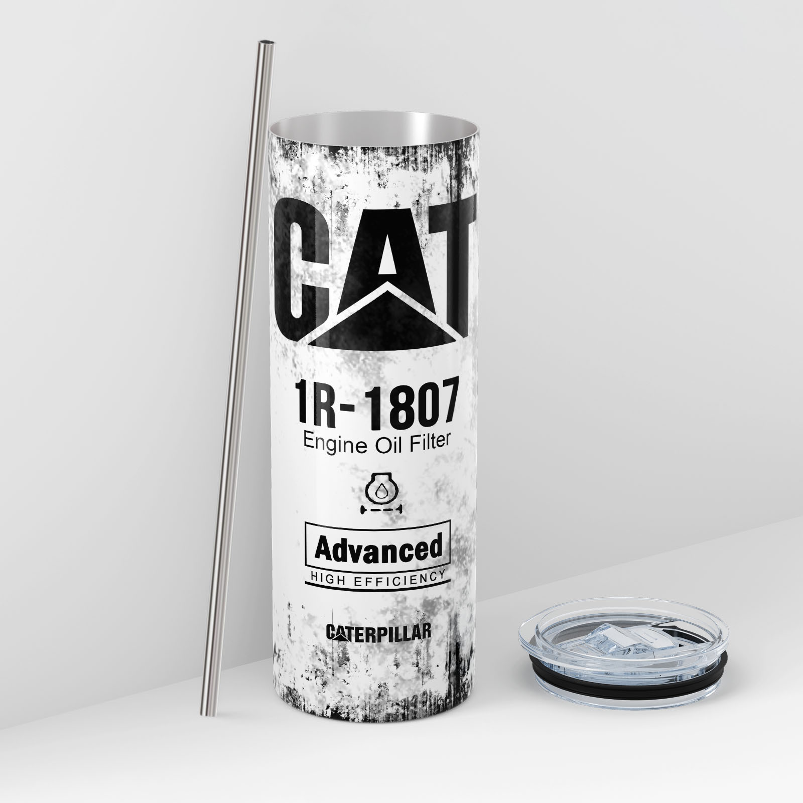 White Skinny Tumbler (591ml) – Fun CAT Oil Filter Replica for Construction Fans