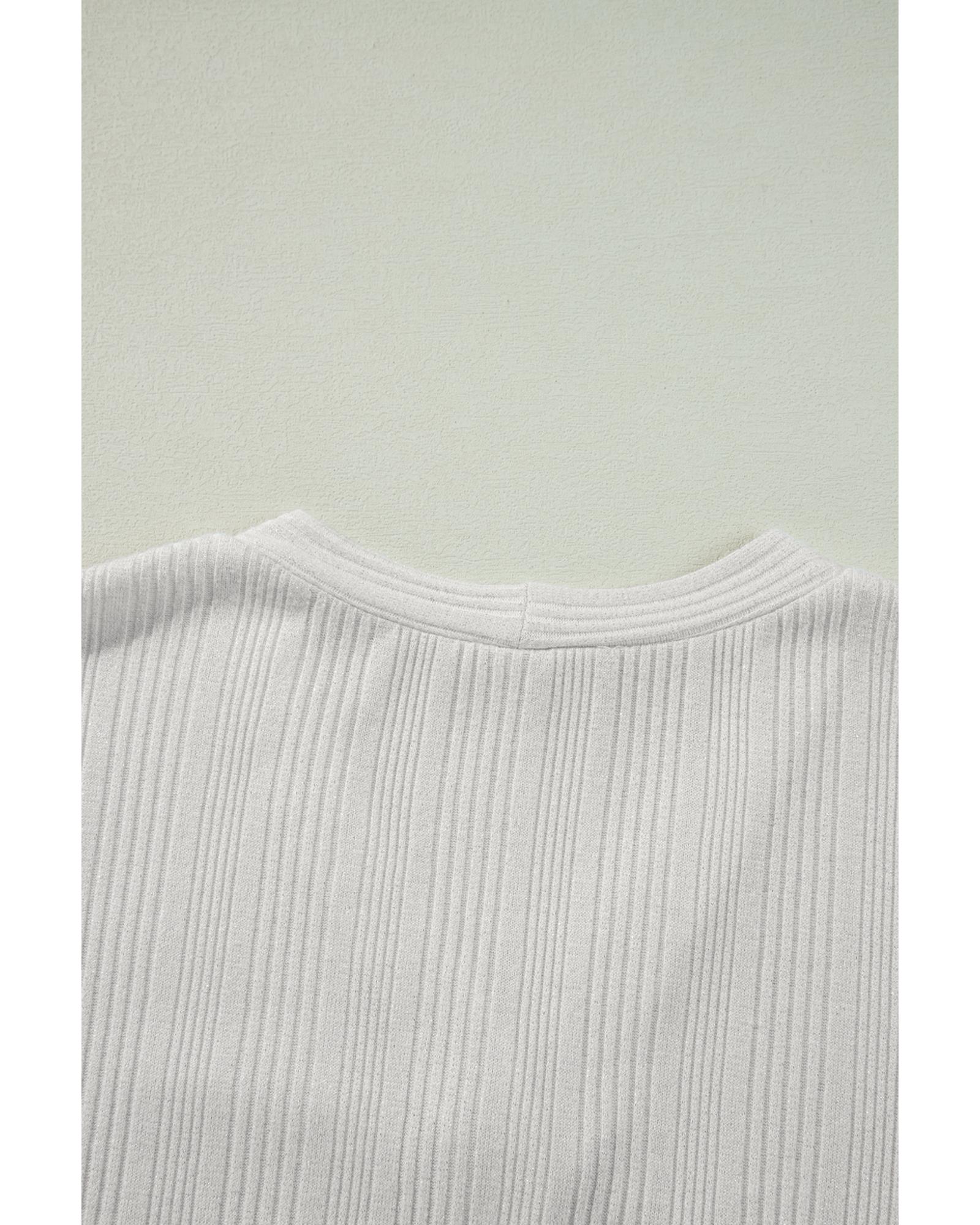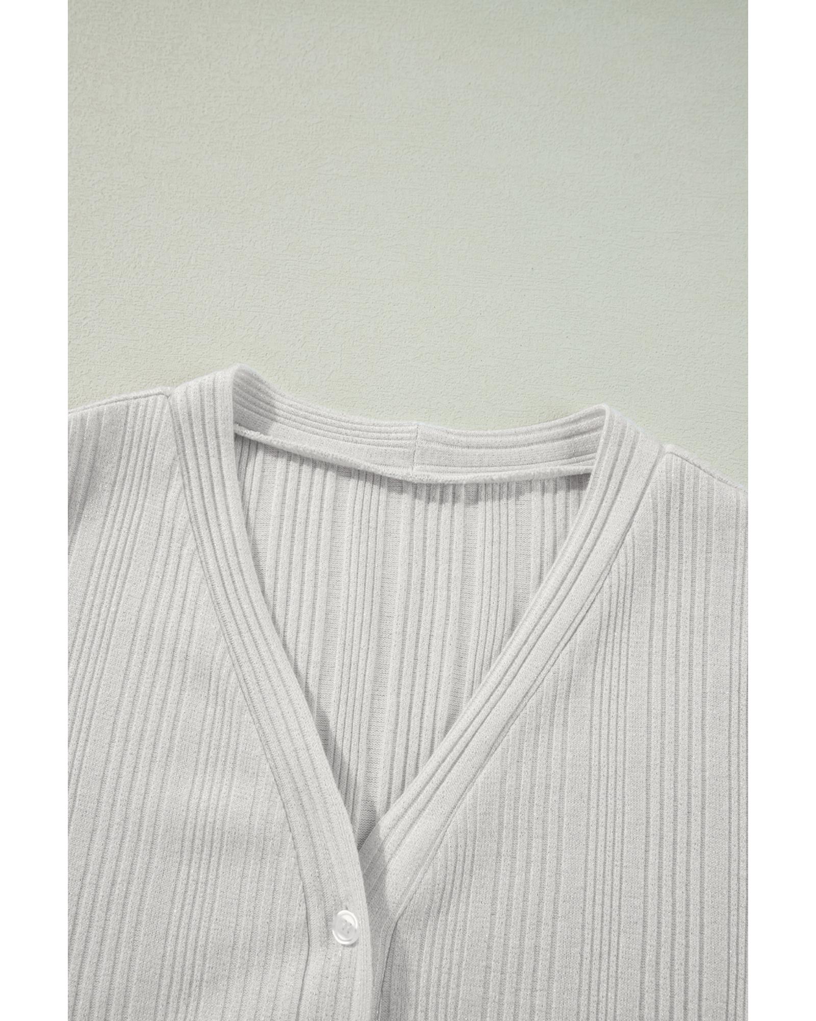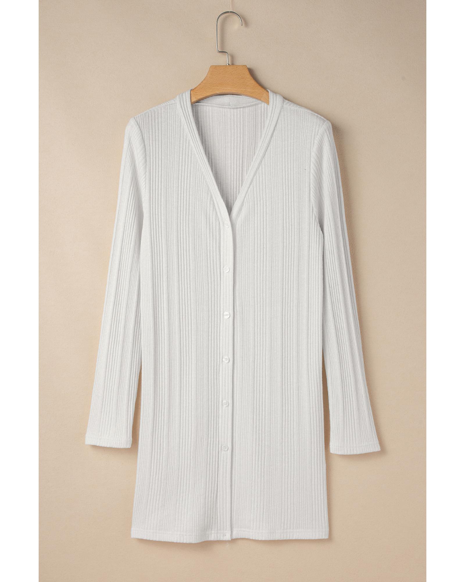 White Solid Color Ribbed Button up Tunic Cardigan – S