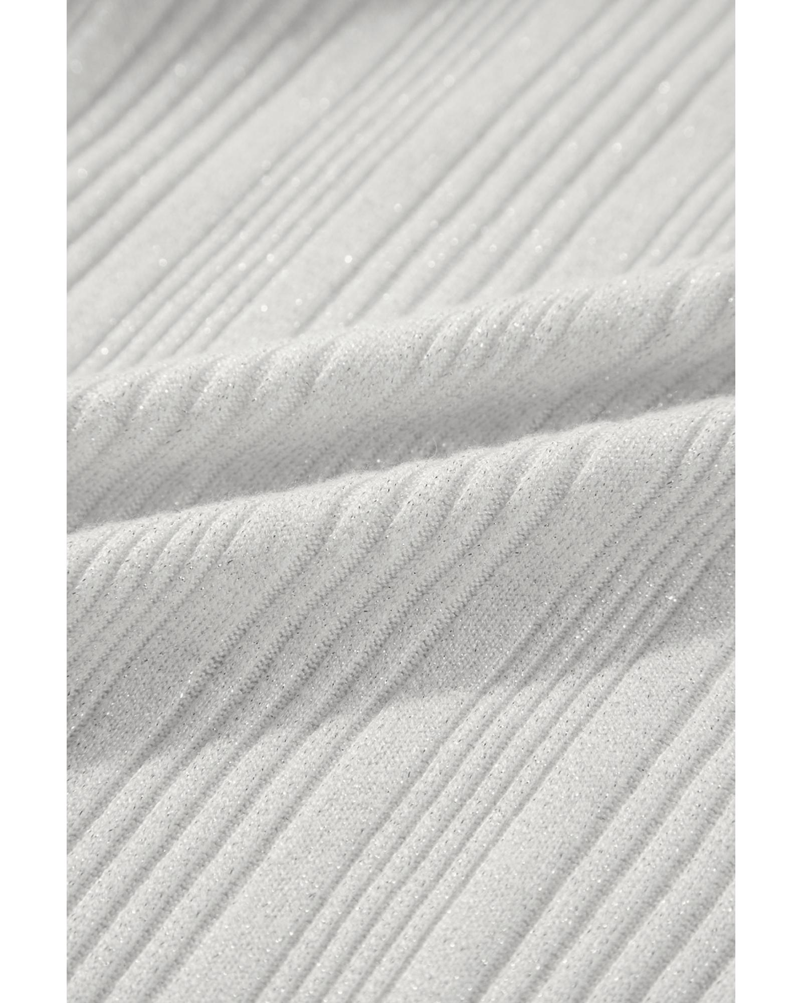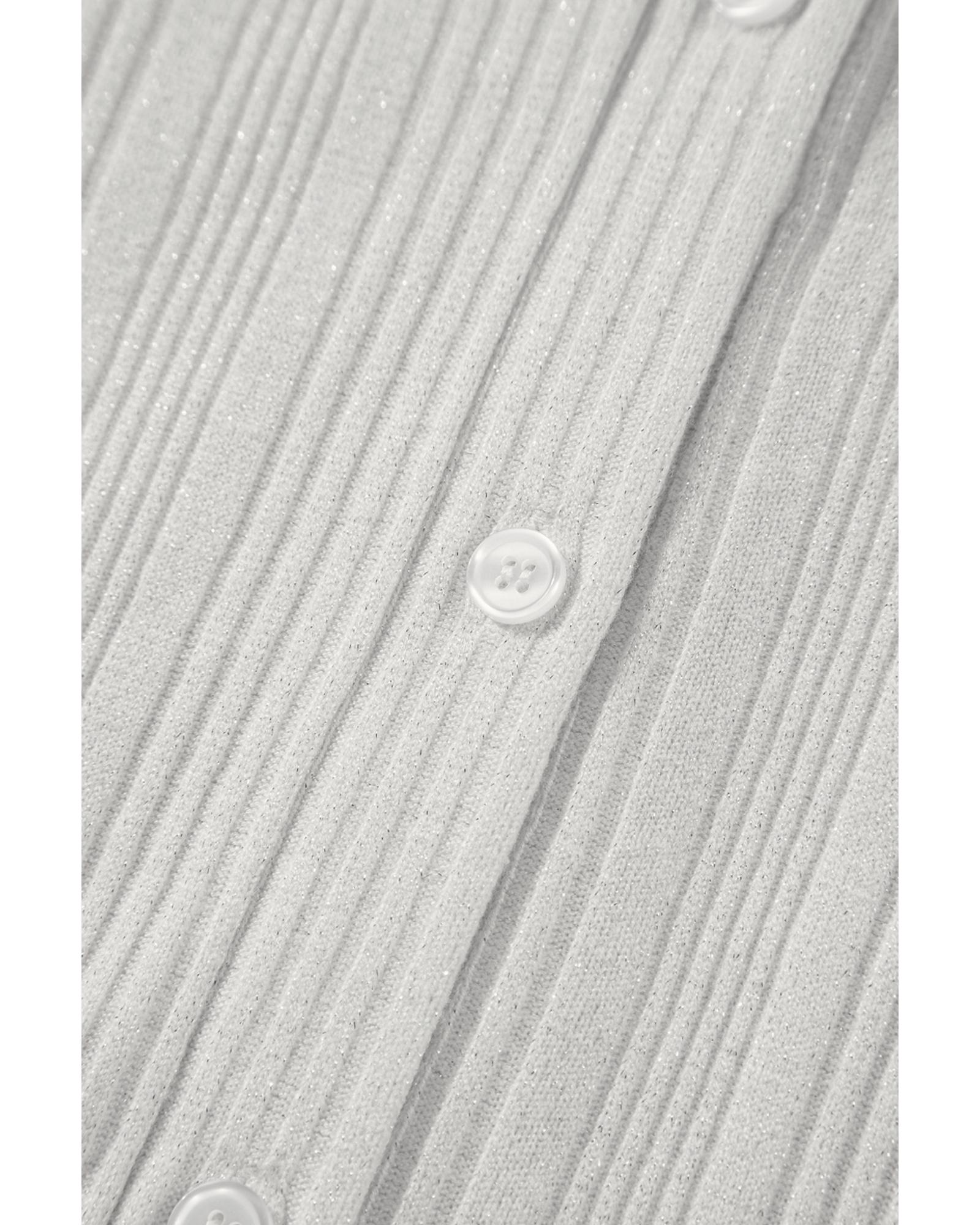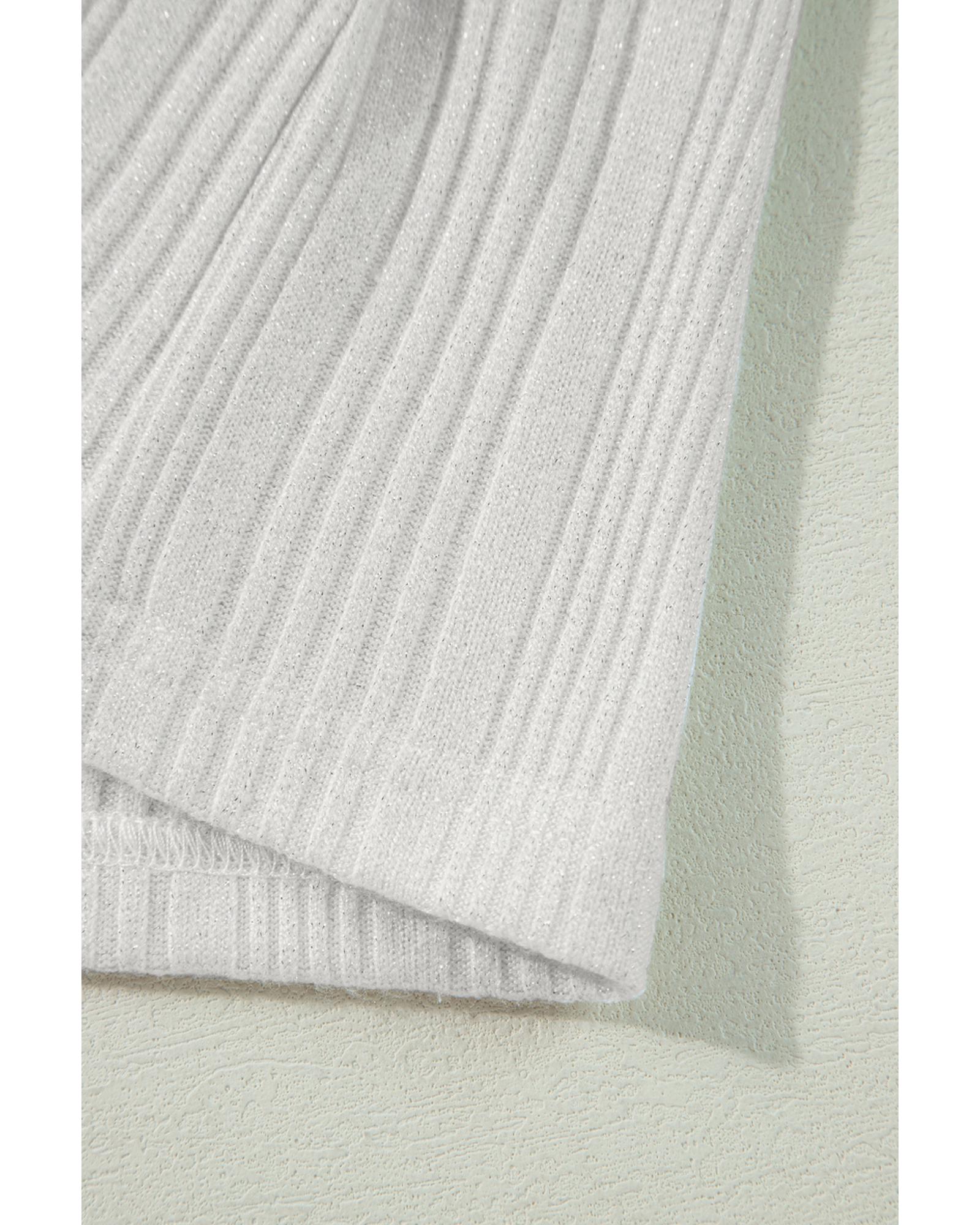 White Solid Color Ribbed Button up Tunic Cardigan – S