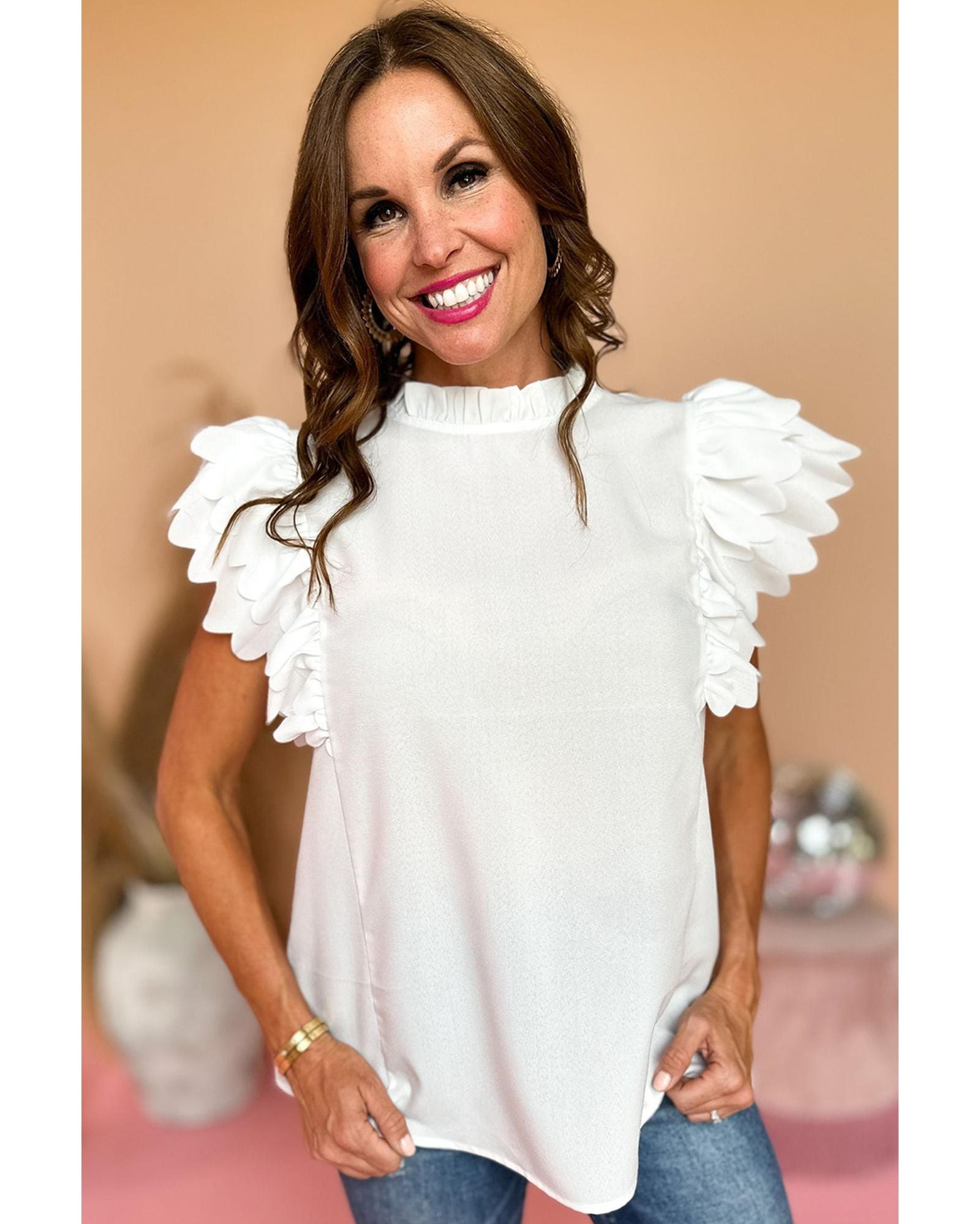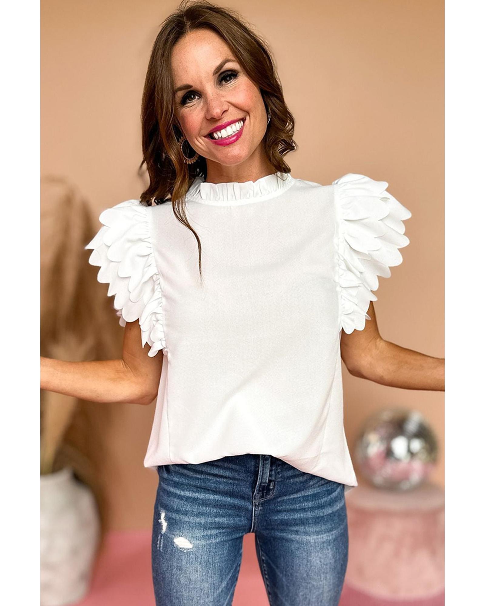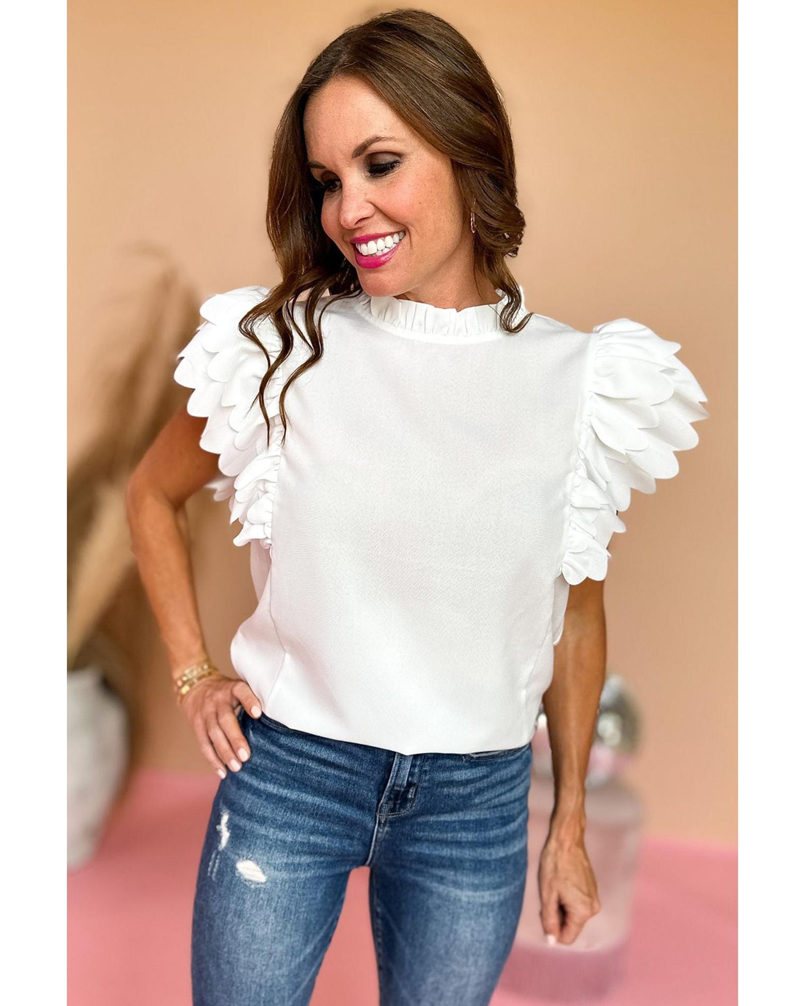White Solid Color Scalloped Ruffle Sleeve Top – M