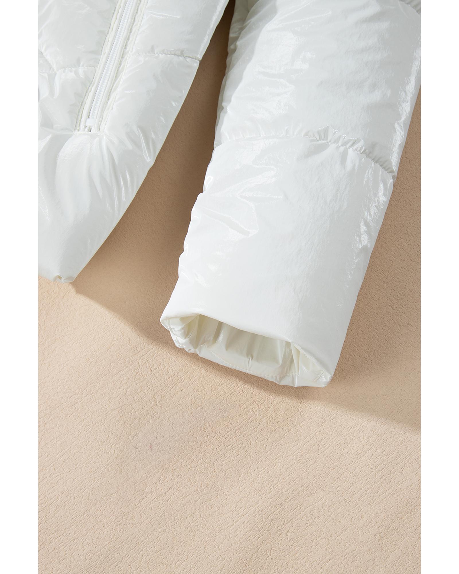 White Solid Quilted Hooded Zip Up Puffer Coat – 2XL