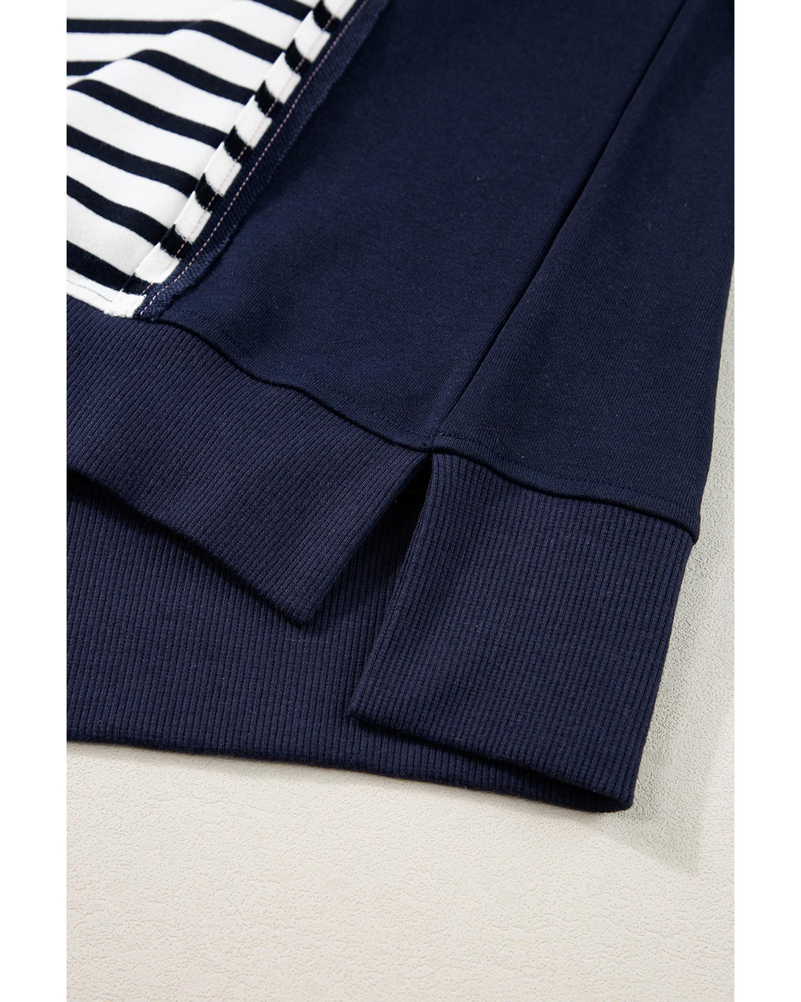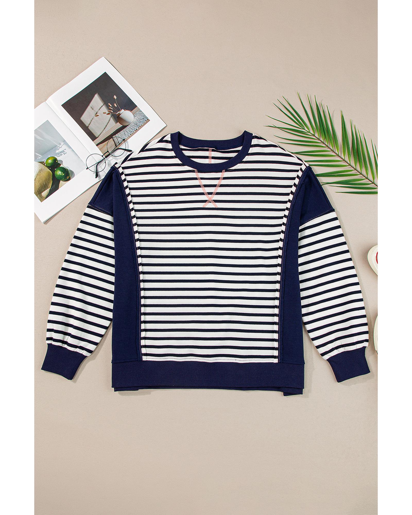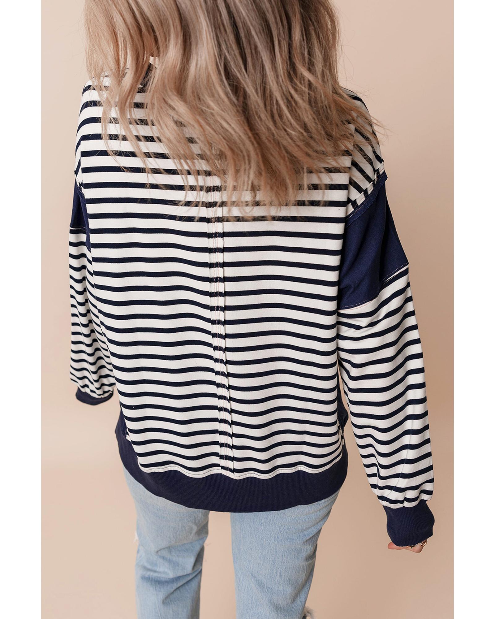 White Stripe Color Block Exposed Seam Loose Fit Sweatshirt – S