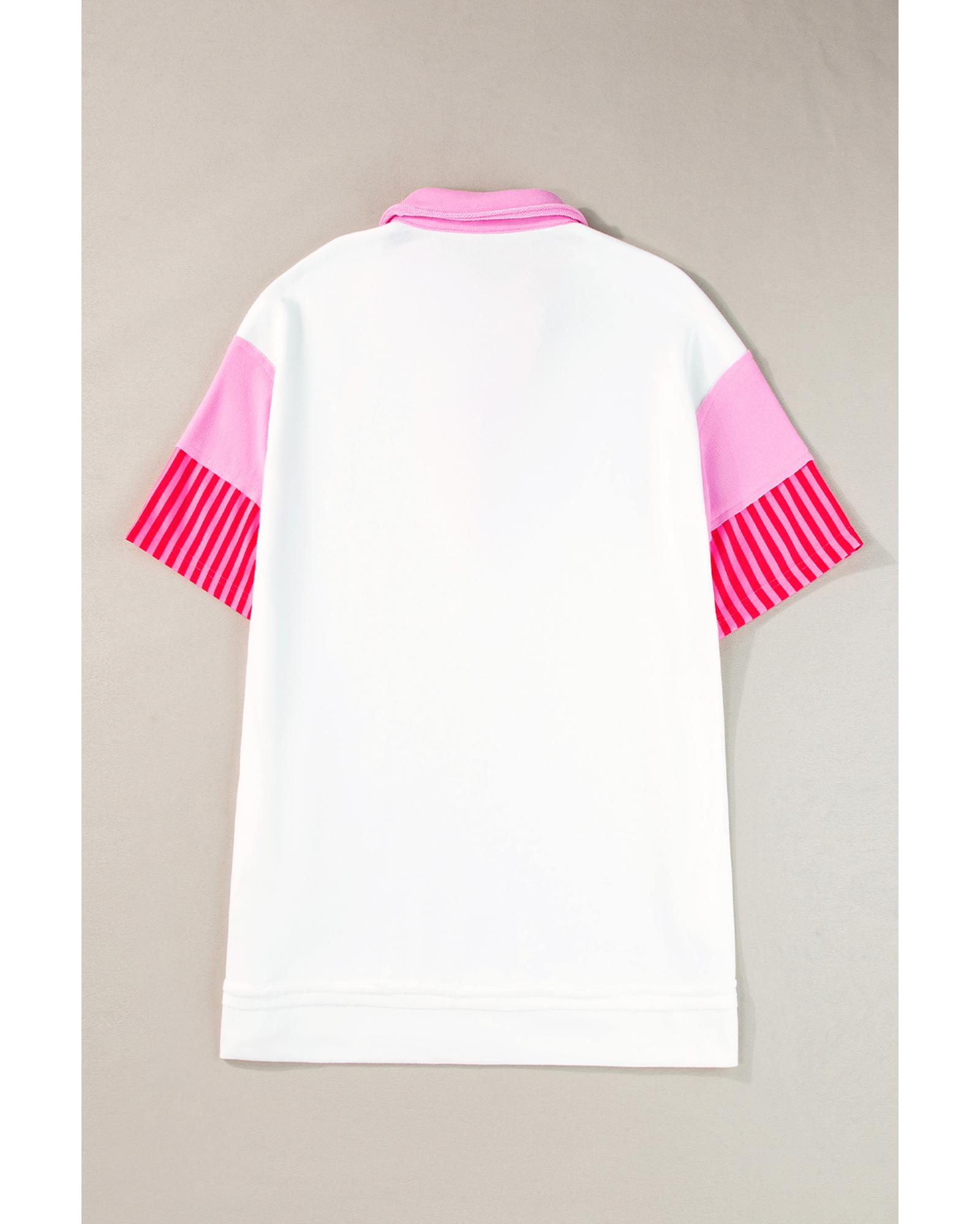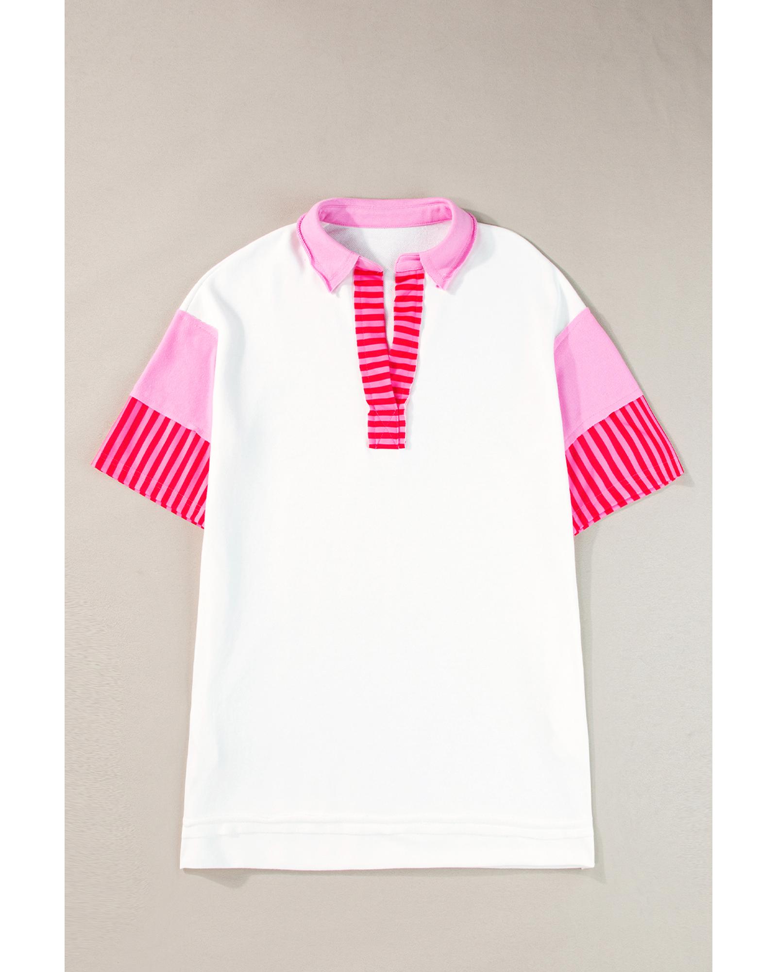 White Stripe Colorblock Patchwork Short Sleeve T Shirt Dress – XL