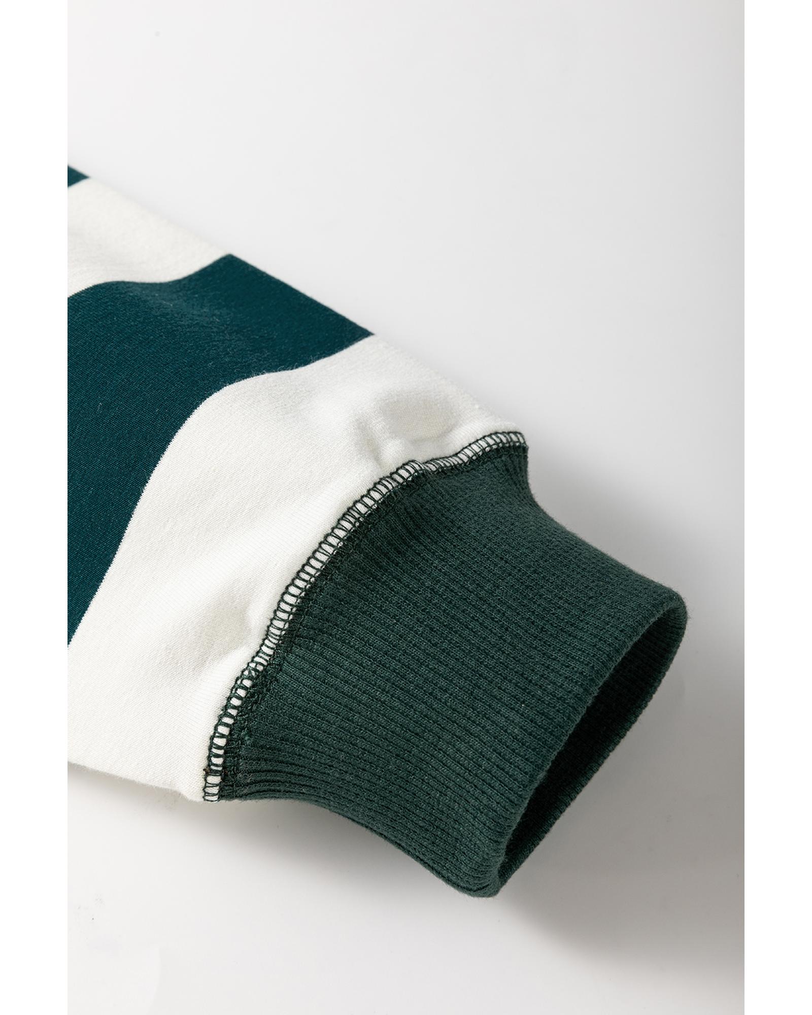 White Stripe Colorblock Sleeve Exposed Seam Fake-2-Piece Sweatshirt – L